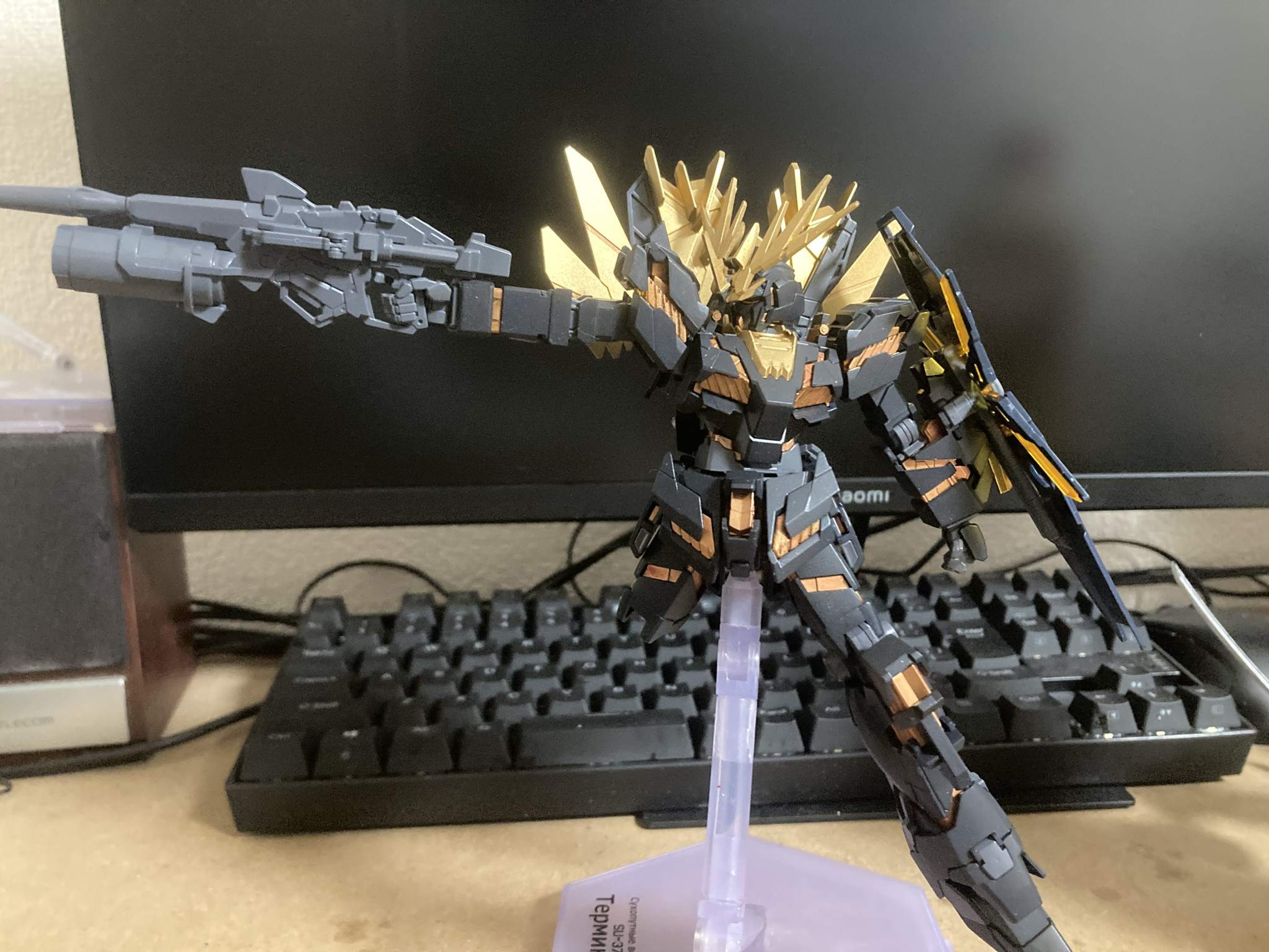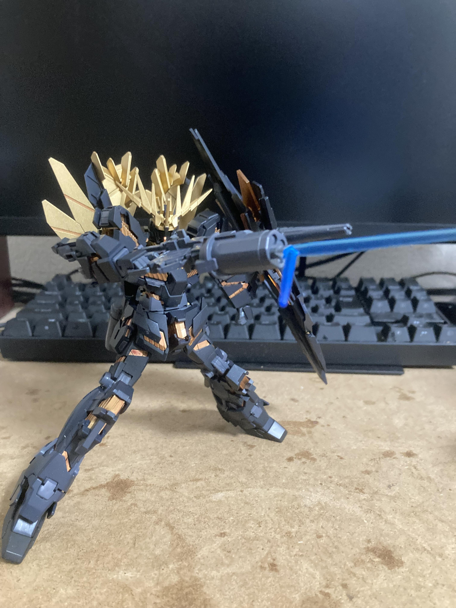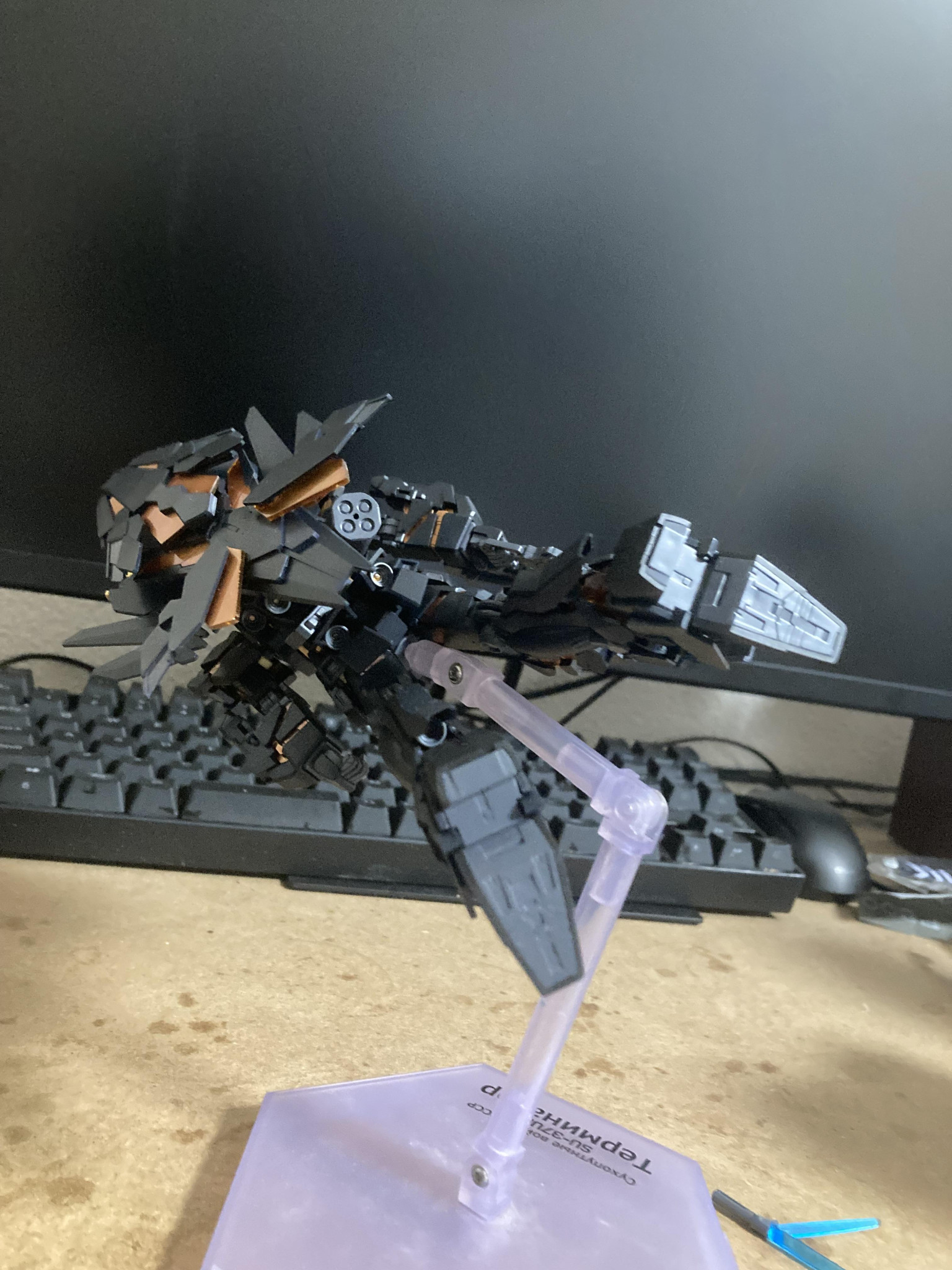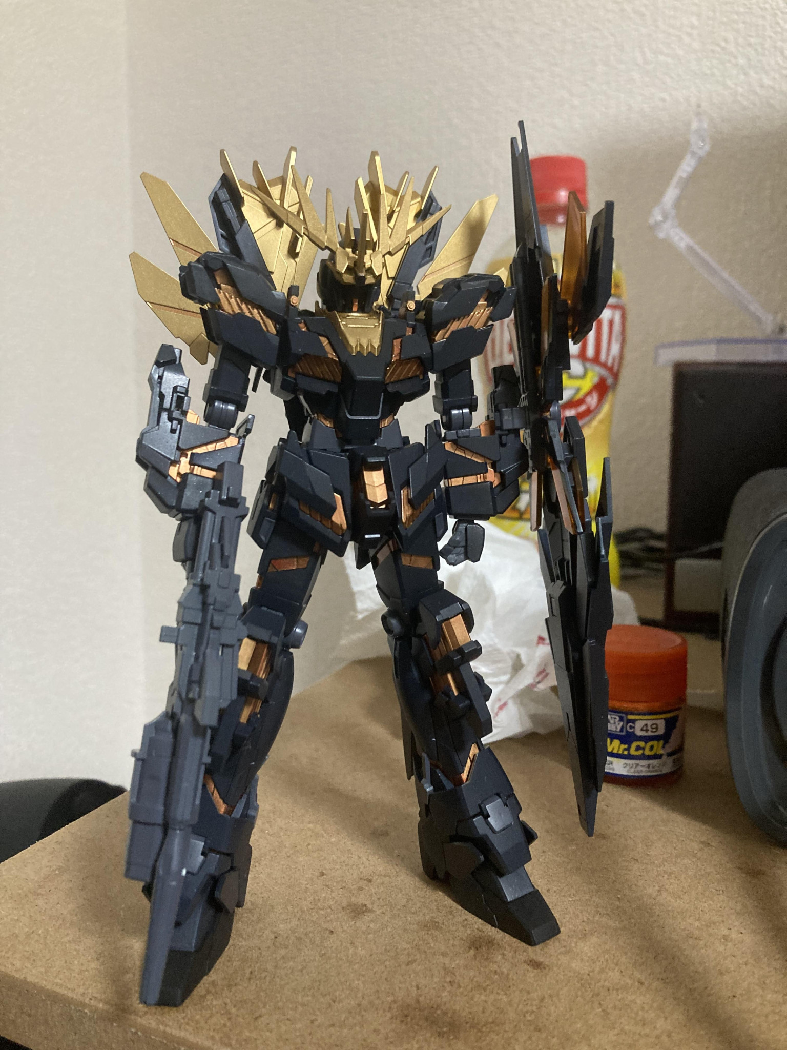 HGのノルンです。最近マキオンでノルン使い始めたので願掛け的に作りました。やった工作はアンテナのシャープ化、ハンドパーツの交換、ゲート処理のみです。又、リボルビングランチャーとマグナムのカートリッジの塗り分けがダル過ぎるので省略してます。ワンデイで作ったので多少荒いですが結構カッコよくなったと思います。特に語ることないので以下ポージングで〆ます。