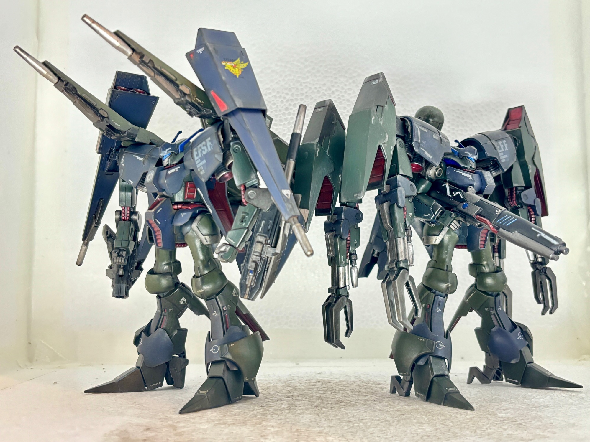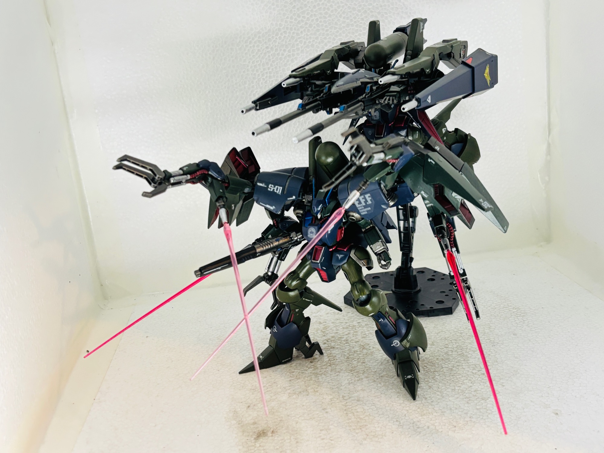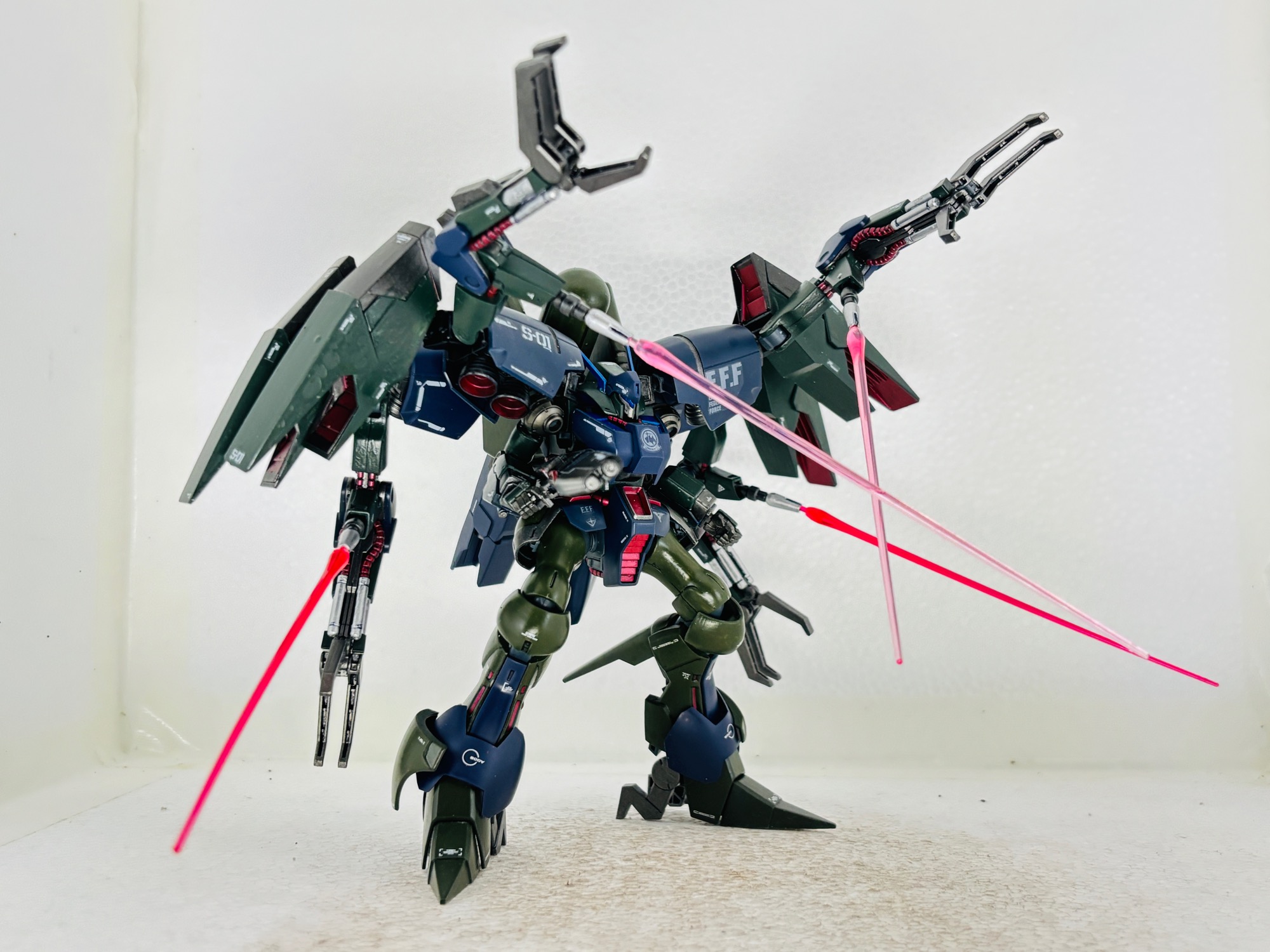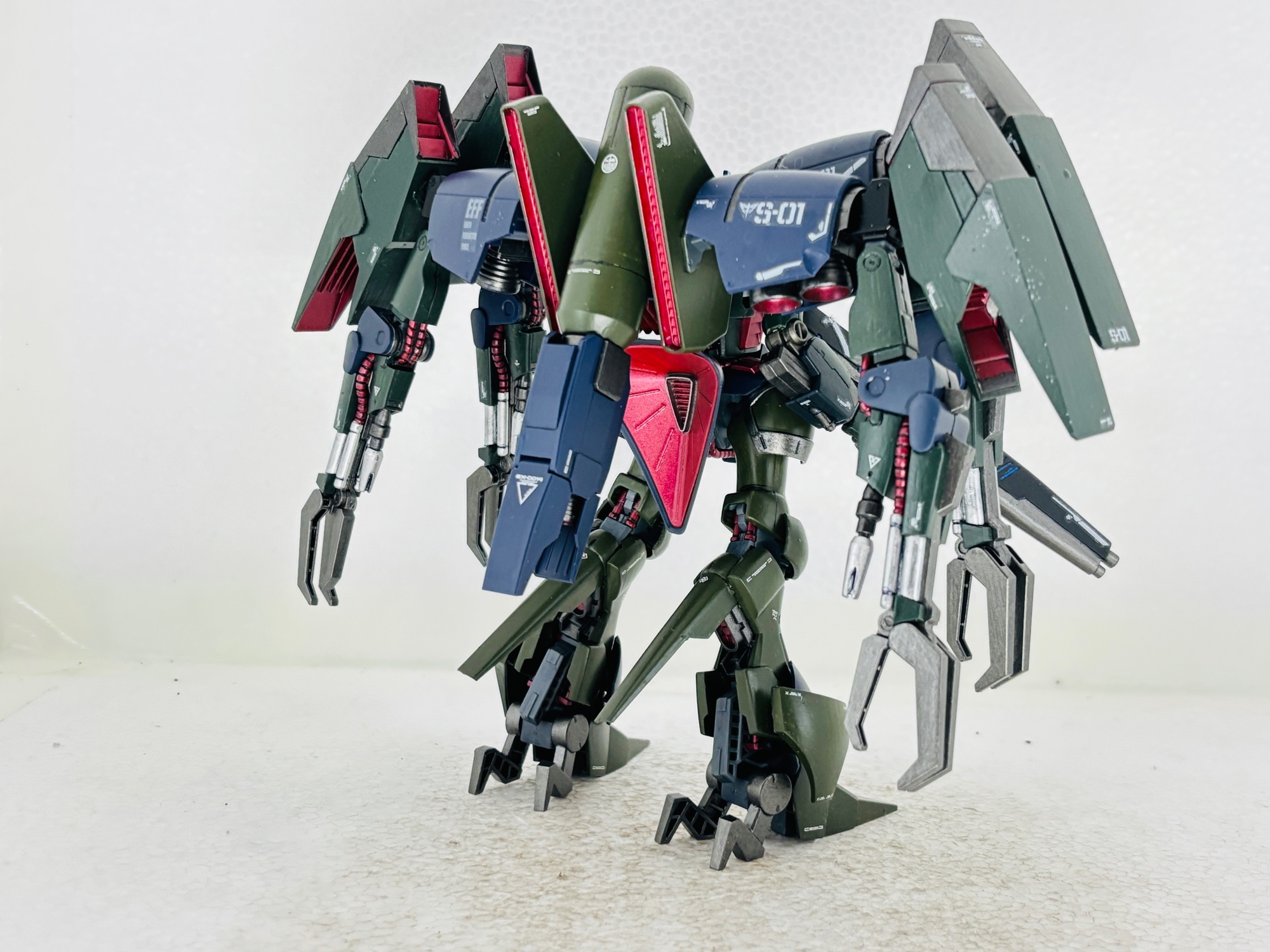 『シーマガラハウは生きていた。』と言う妄想設定、第三弾。バイアランカスタム1号機、2号機同時製作で余剰パーツとジャンクパーツを盛ってみました。先ずは1号機、Hi-νガンダムの腕をメインアームとしてサブアームを4本にした近接白兵戦特化のアルティメット仕様です。筆塗り部分塗装、墨入れ、デカール、つや消しトップコート、汚しの仕上げです。