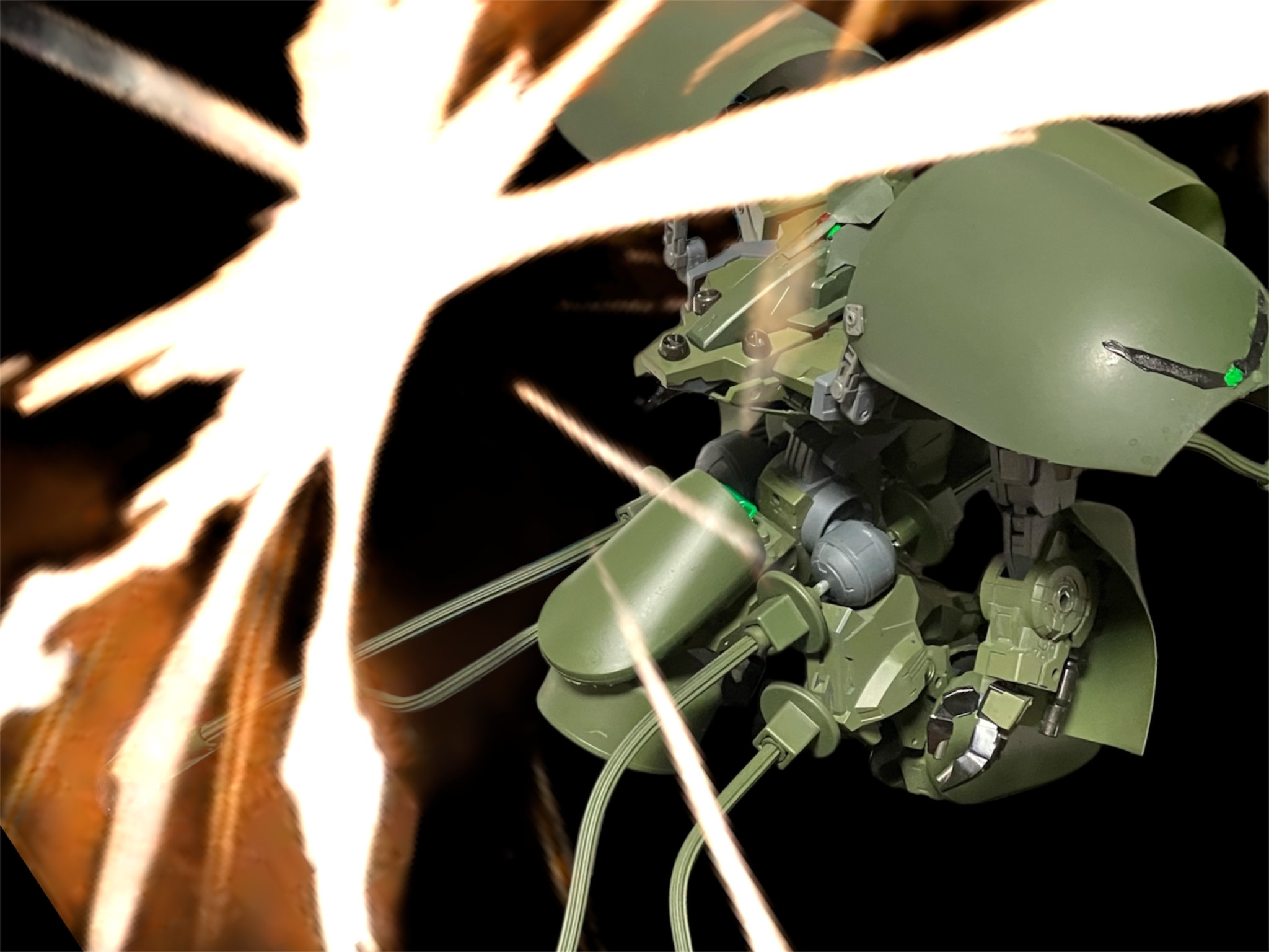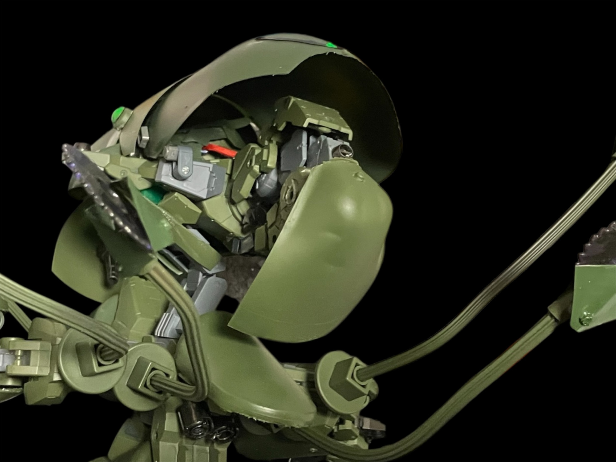 MAモード 頭部に隠されたiフィールドジェネレータ。元ネタのシュヴァインは肩にiフィールドジェネレータを仕込んでいたそうなので、バケモノか口を開いたら露出するよう設置^_^