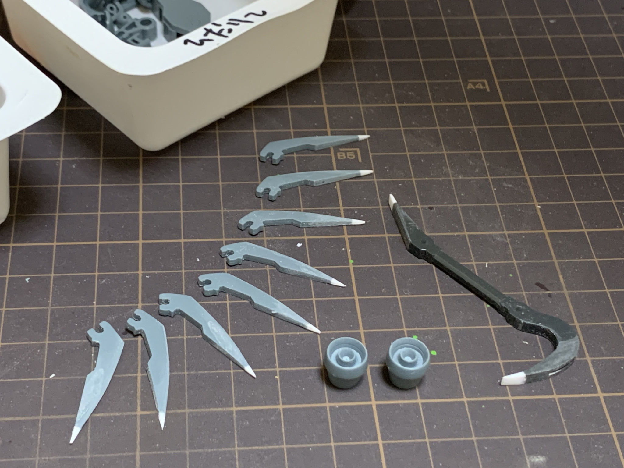 そのまま削ると短くなってしまうので真鍮線で強度を確保してプラバンを継ぎ足して鋭利に仕上げています。