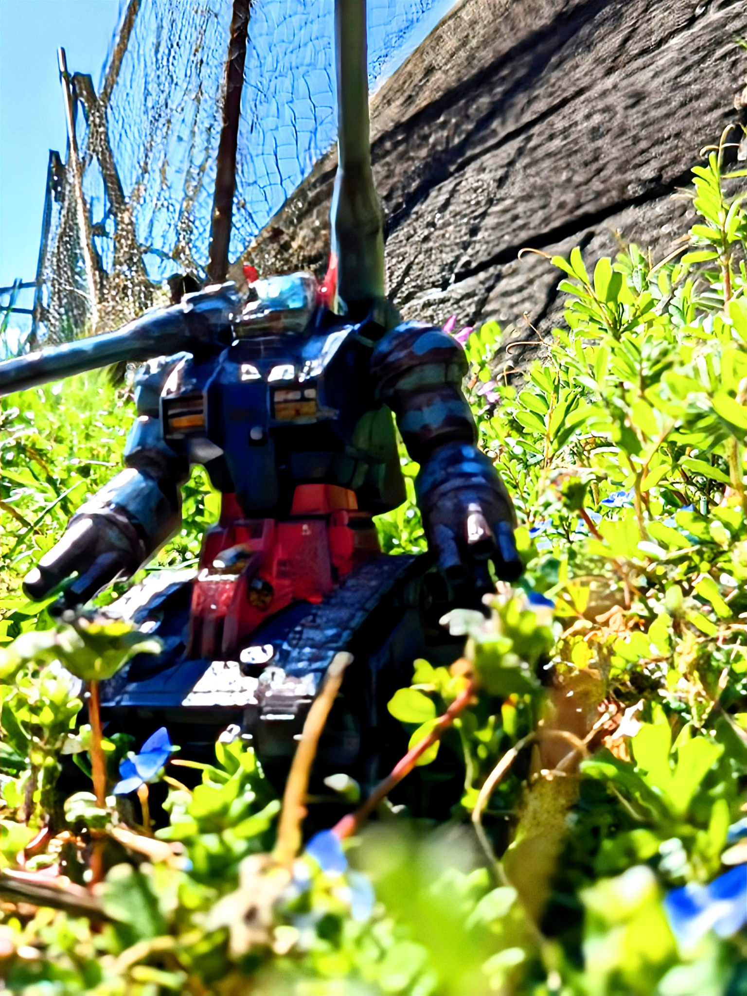 朽ちたガンタンクの表現、自然との撮影が良いですね👍