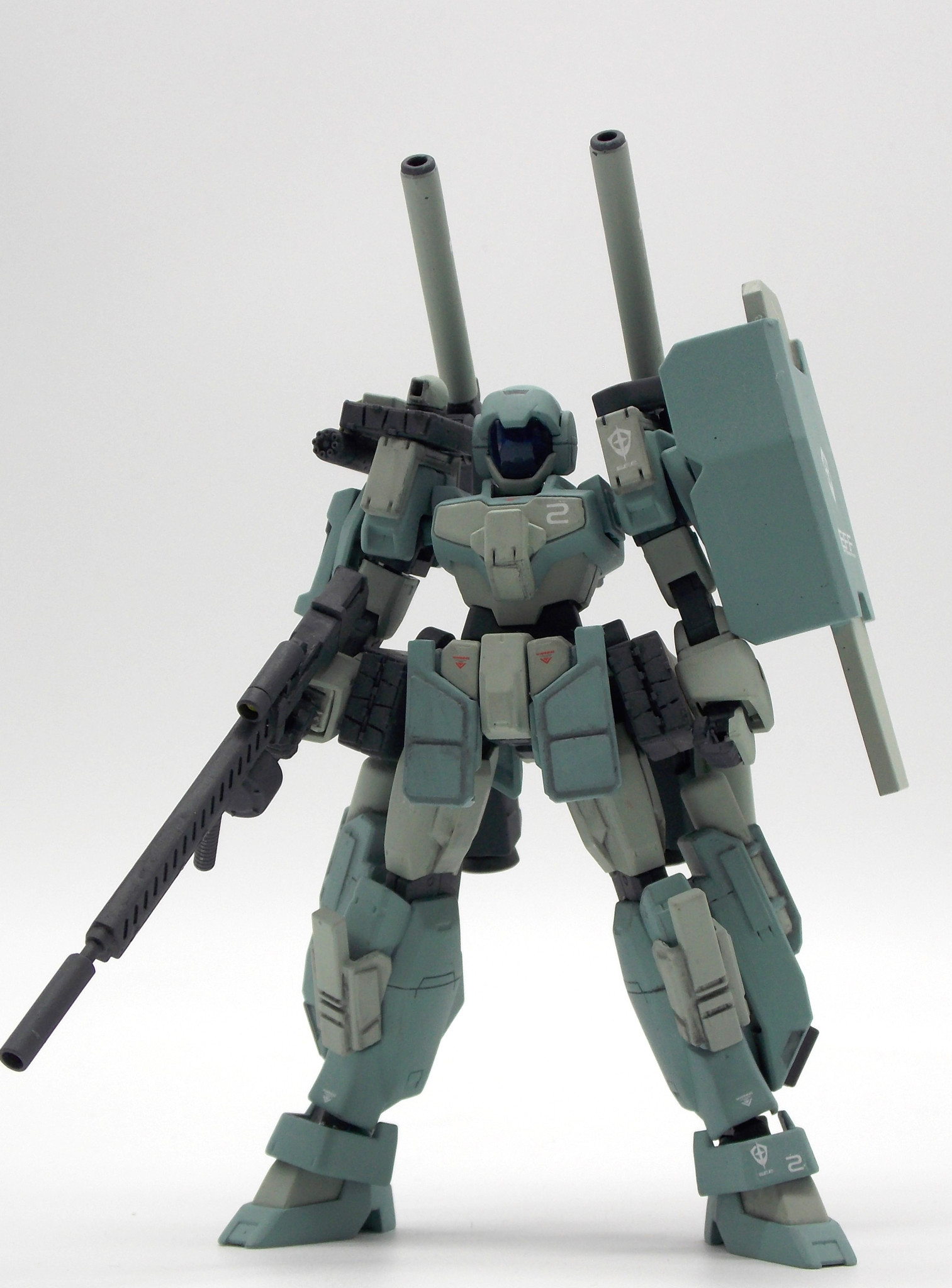 ドッズキャノンとミサイルポッドの組み合わせはアデルキャノンと同様だが、腰部の8連装ミサイルポッド2基、右肩部の4連装ミサイル1基とミサイルの搭載数が大幅に増加したほか、右肩部には牽制・迎撃用のビームバルカンが搭載された。