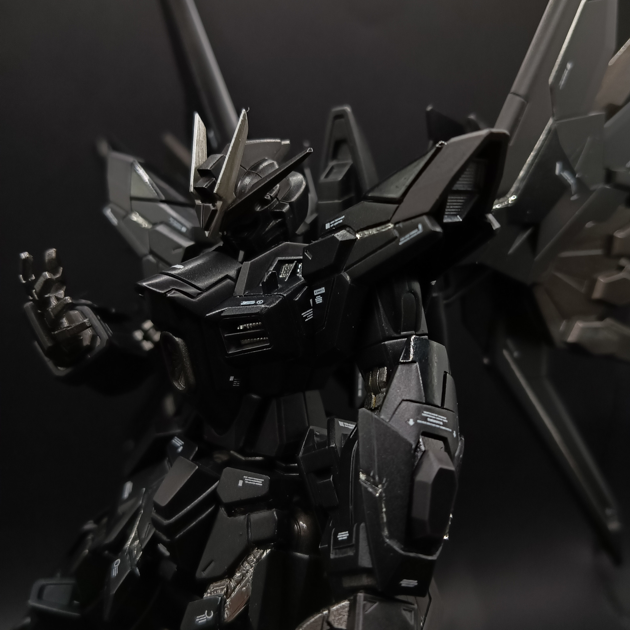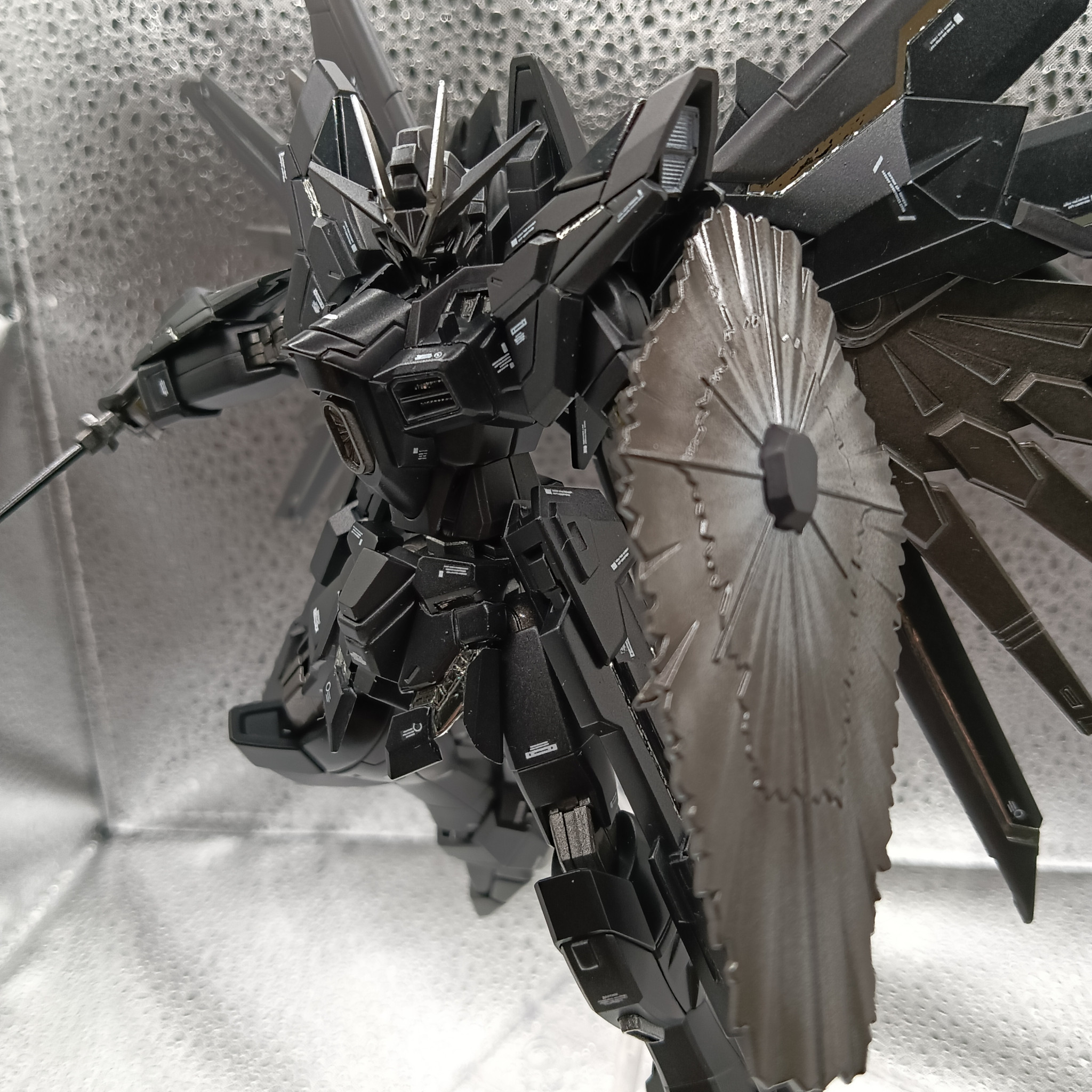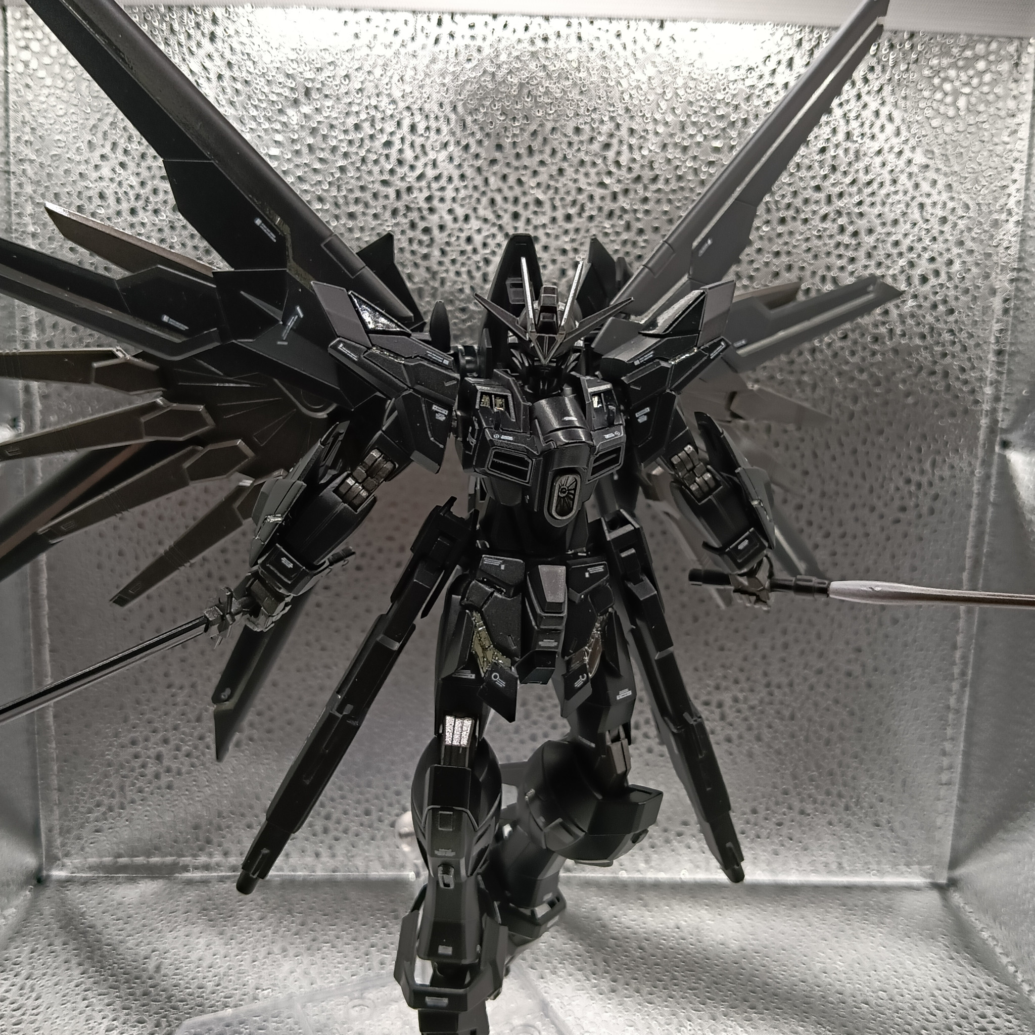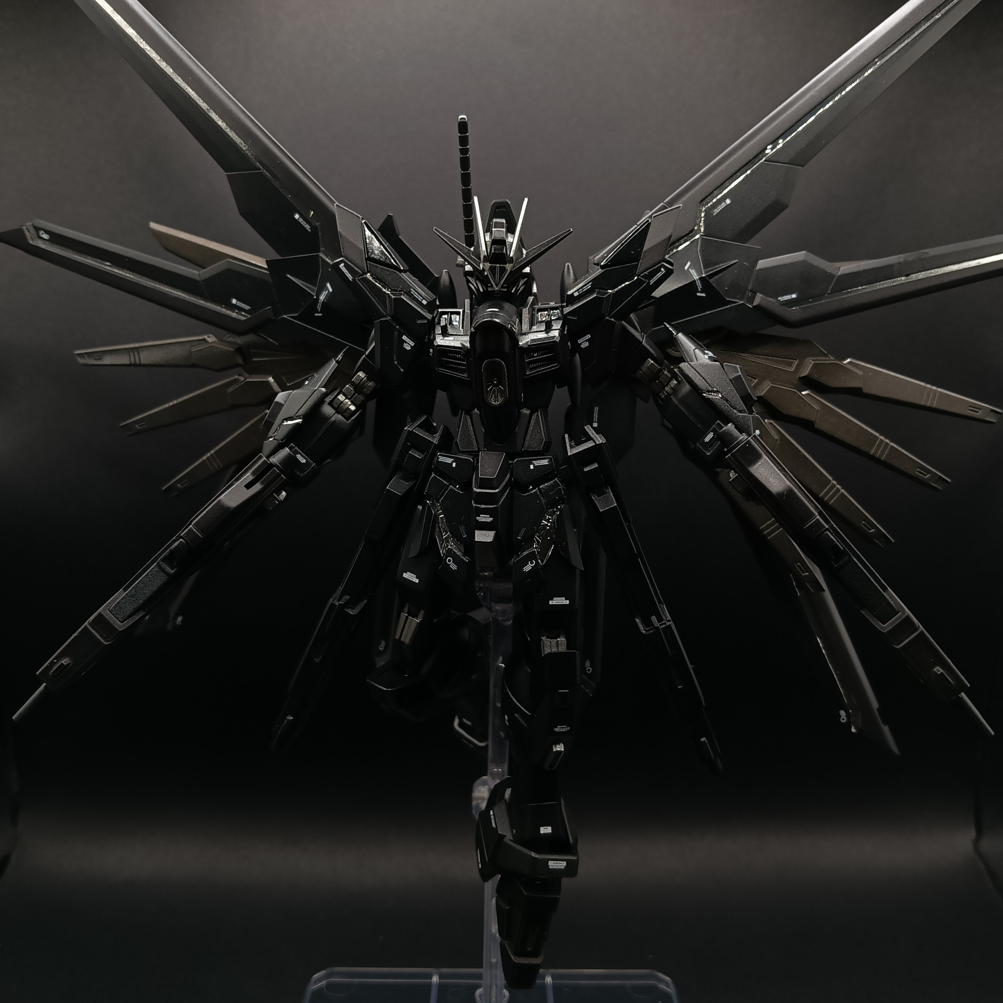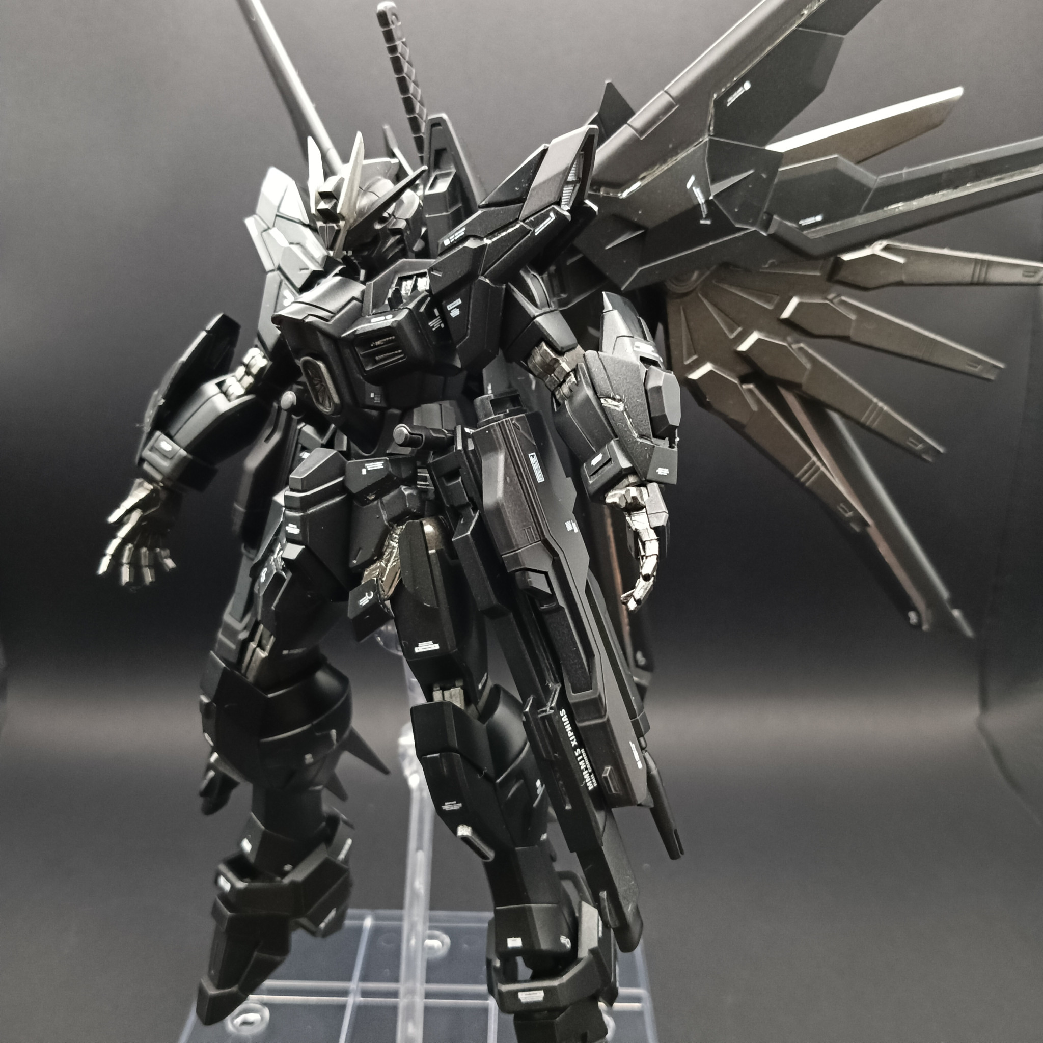 久しぶりの投稿になります。HGマイティーストライクフリーダムをMGEXフリーダムミッドナイトコーティング風に塗装しました!