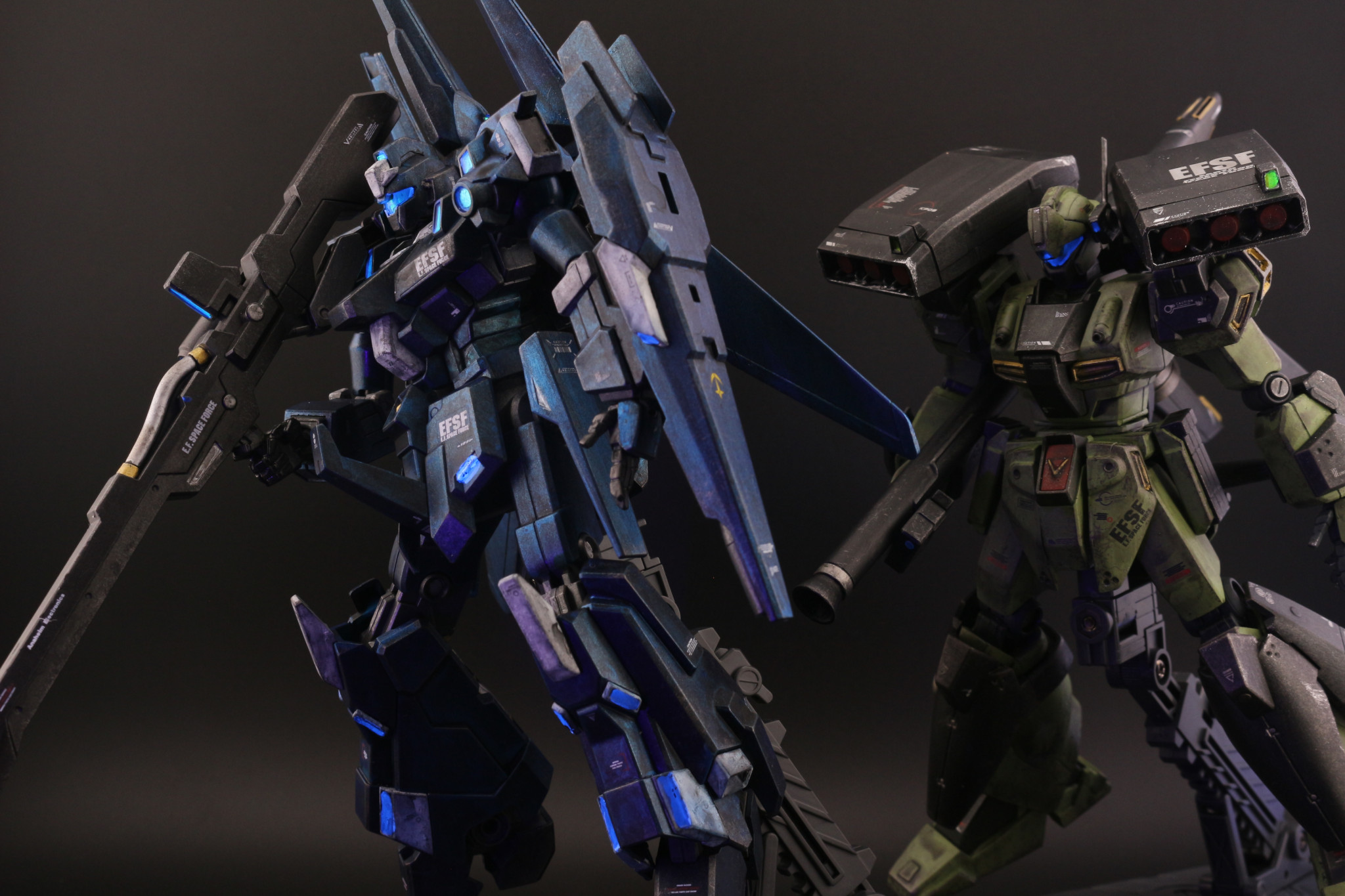 スタークジュガンは水生黒サフからの重ね塗り。首や腕・膝関節にプラ棒を挟んで簡単延長