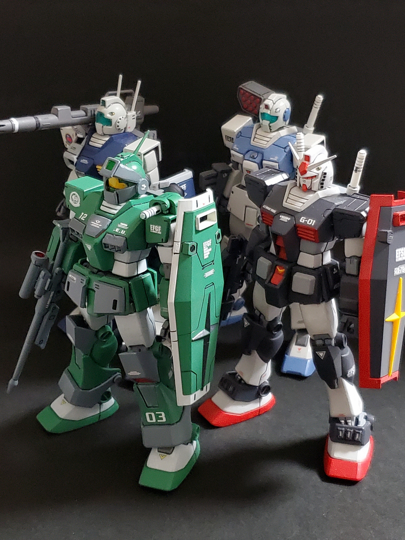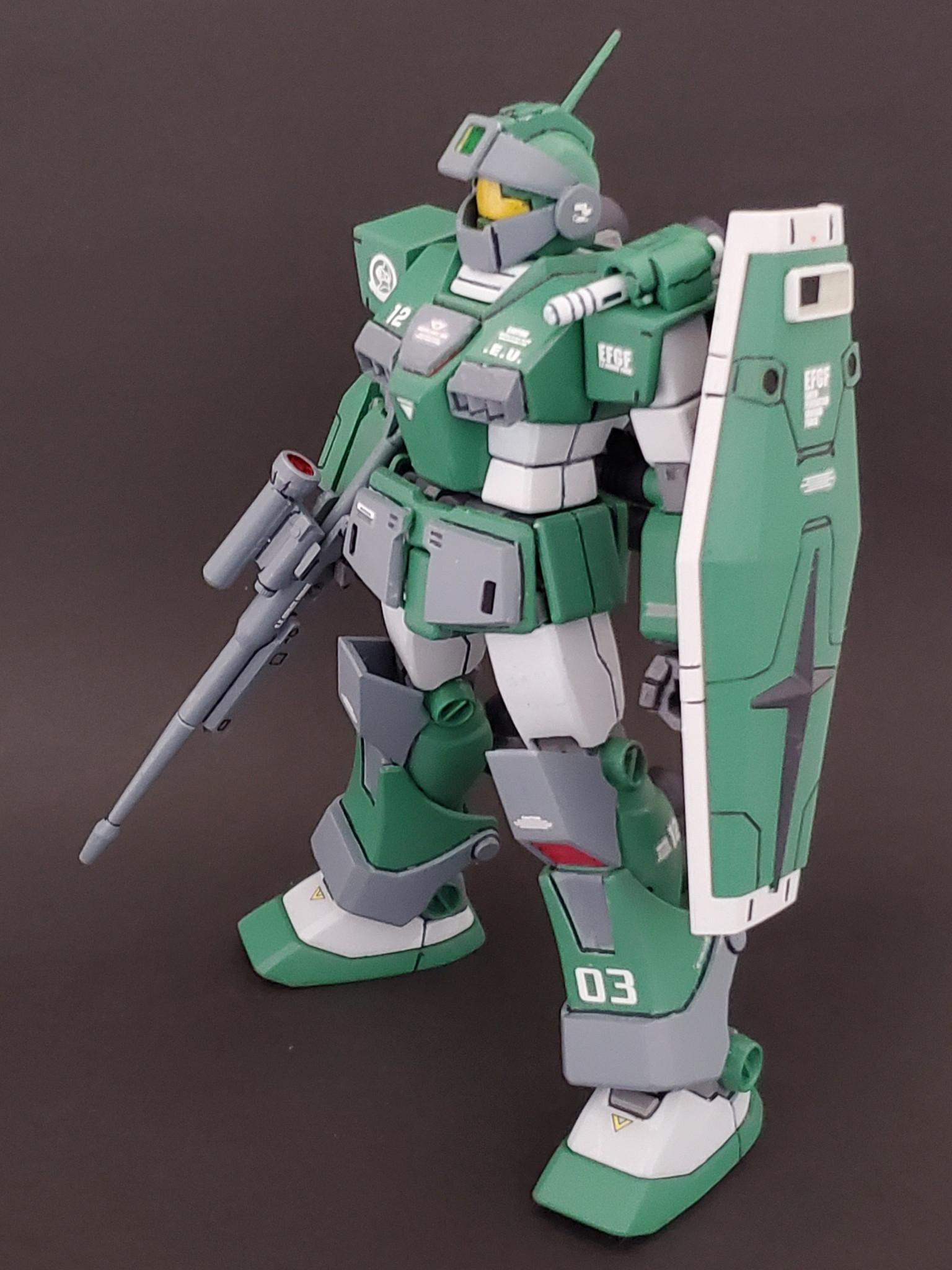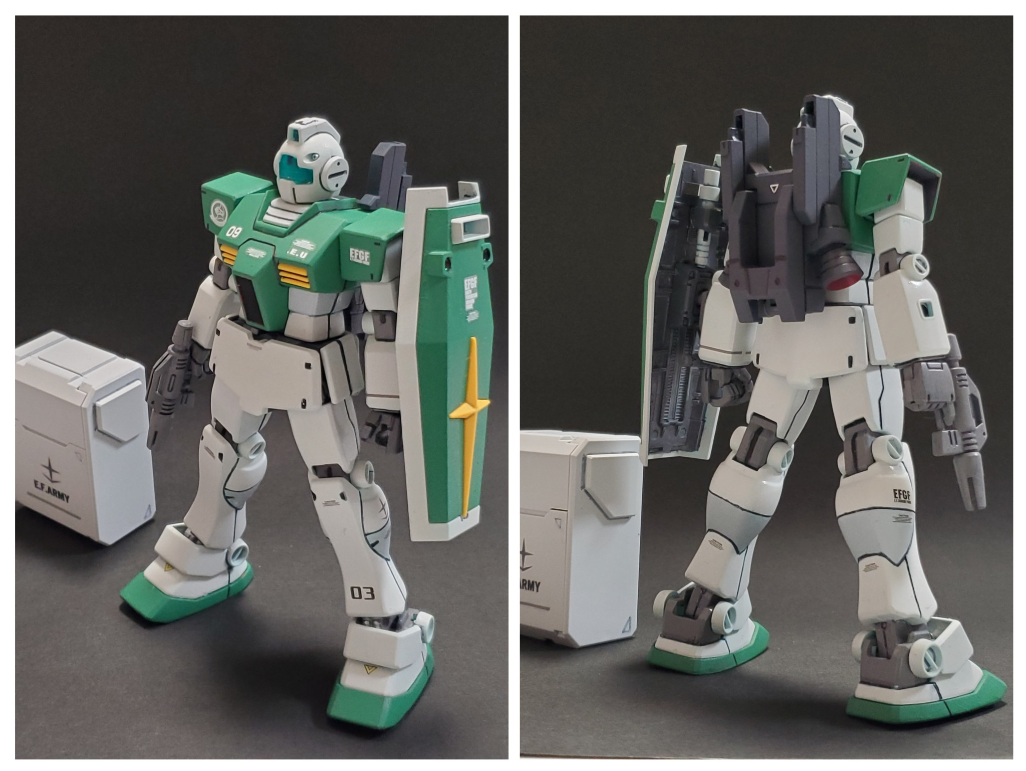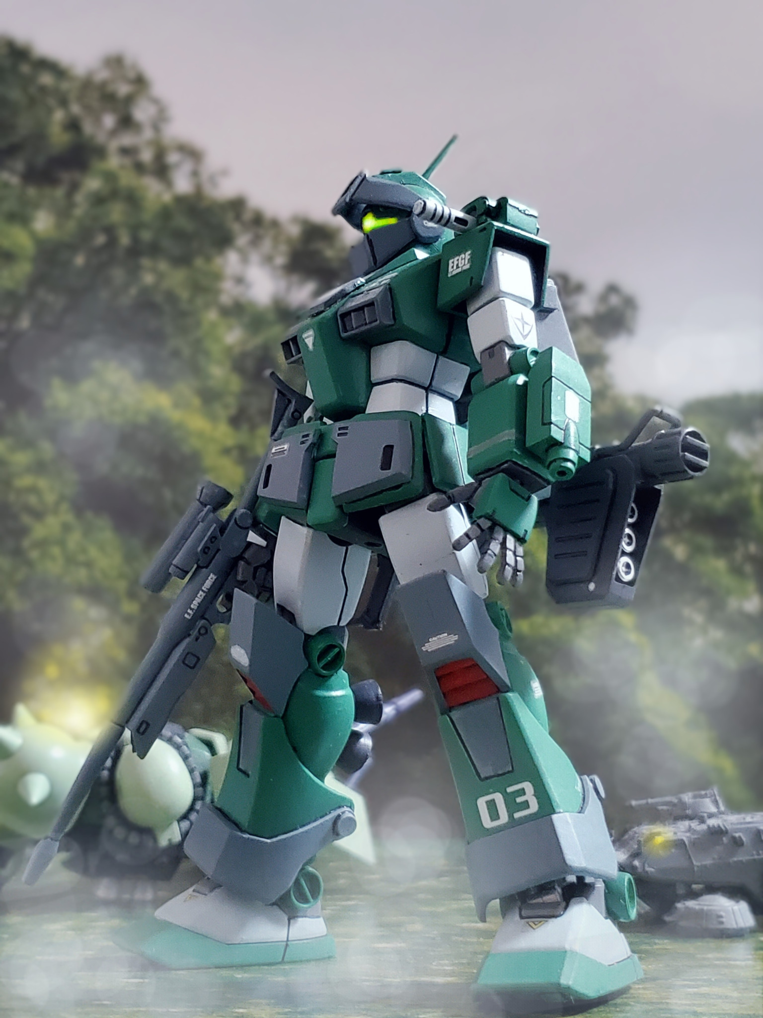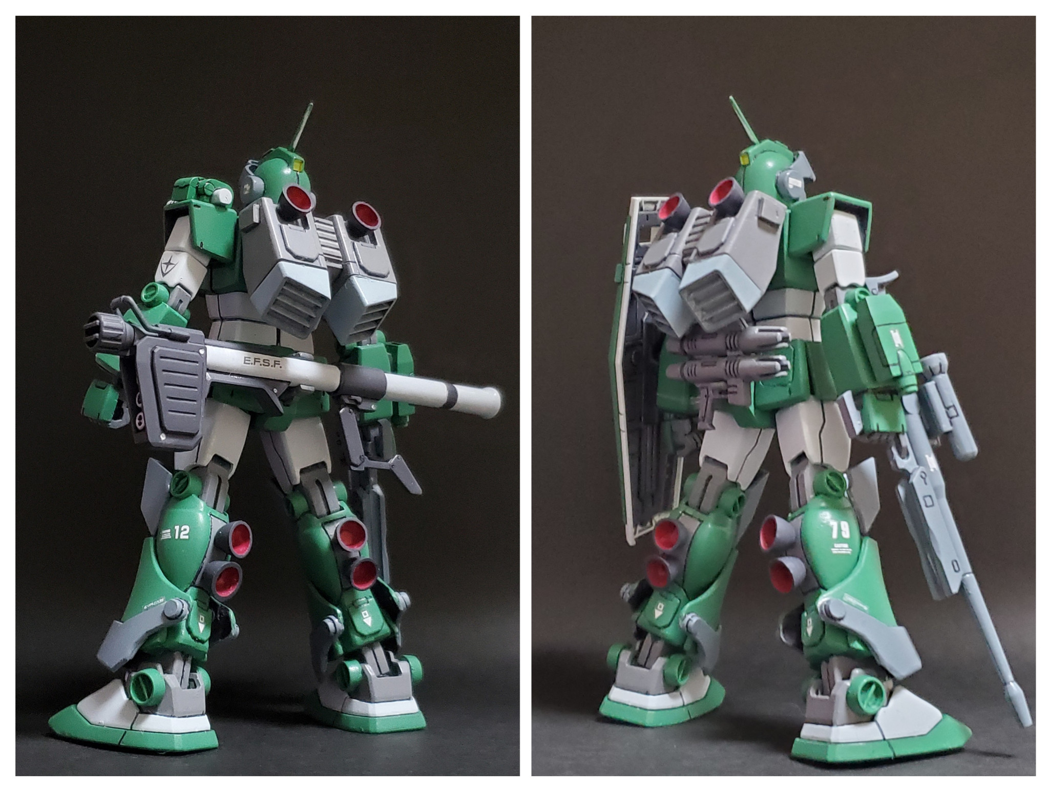 妄想設定として、アジア、北米方面での運用データを基にヨーロッパ戦線では敵領内での小隊単位での活動時間が長くなる事を想定してバックパックは陸戦型ガンダムと同様のものを装備。武装、弾薬などを持ちながら長時間の作戦行動を行えるようになっております😎✨