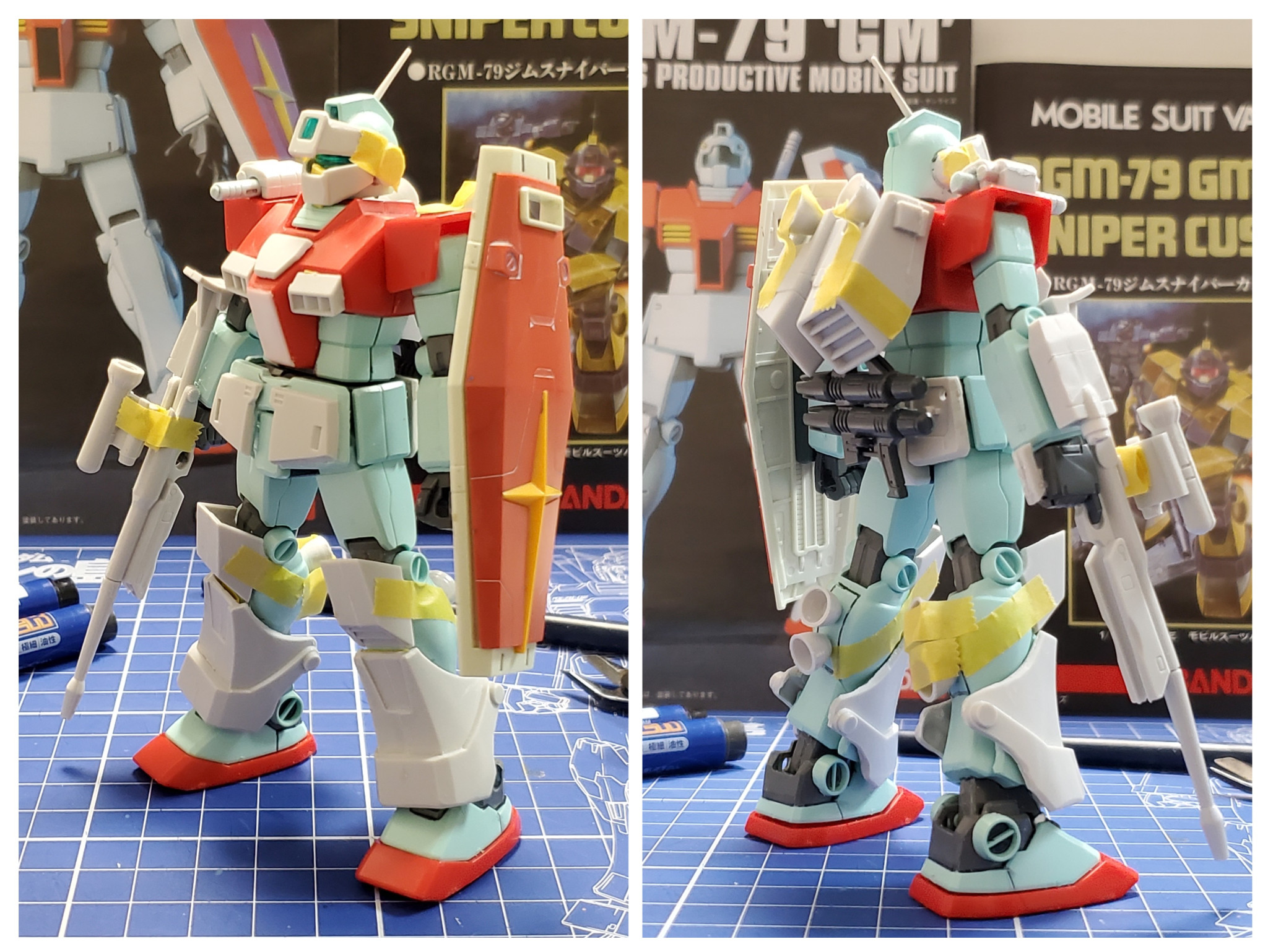 習得した技能?フル回転でスナイパーカスタムの特徴的なパーツを生かしつつHGUCジムに落とし込みました🤭🎵