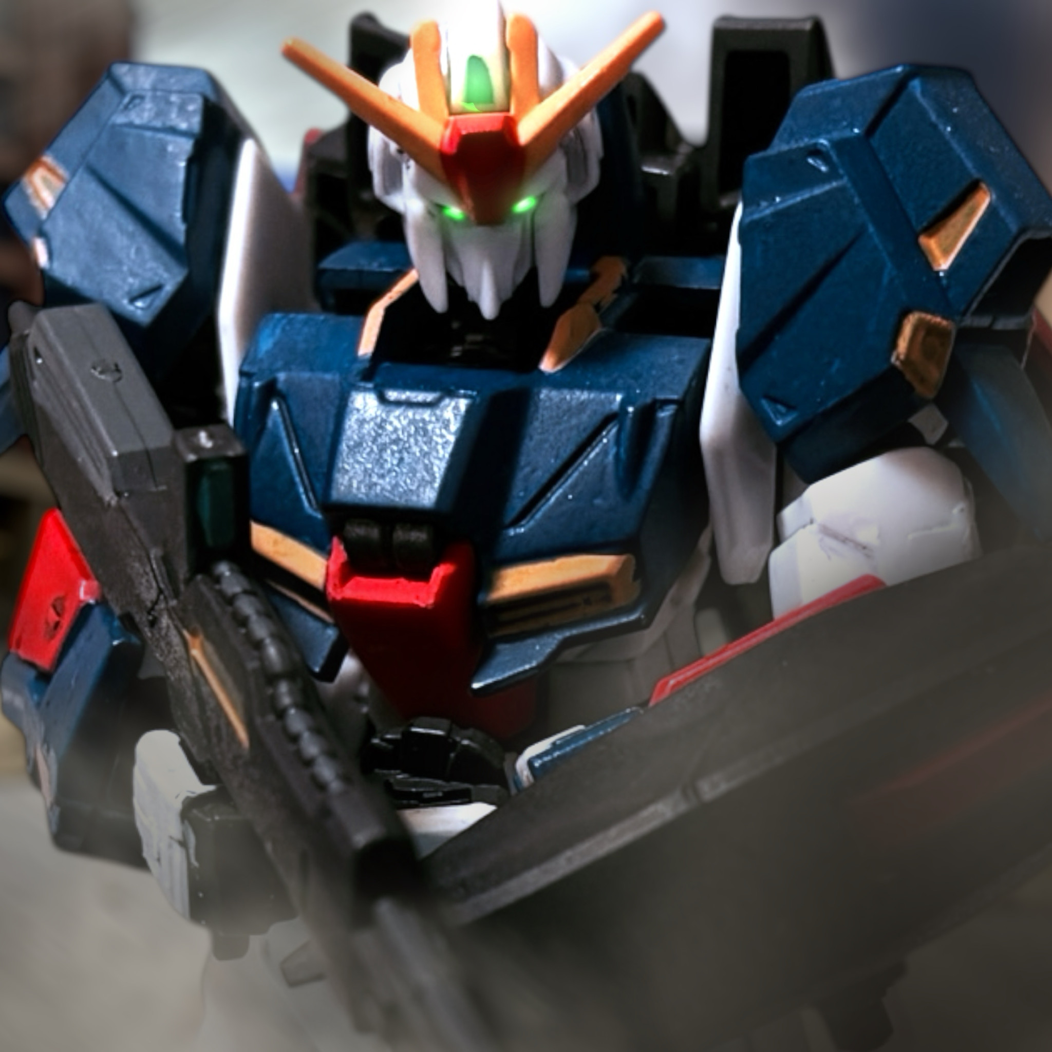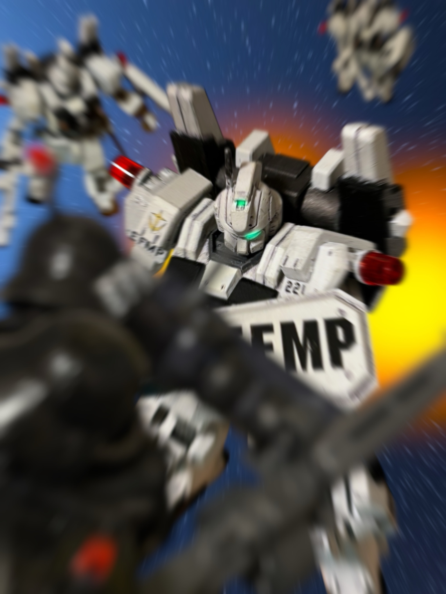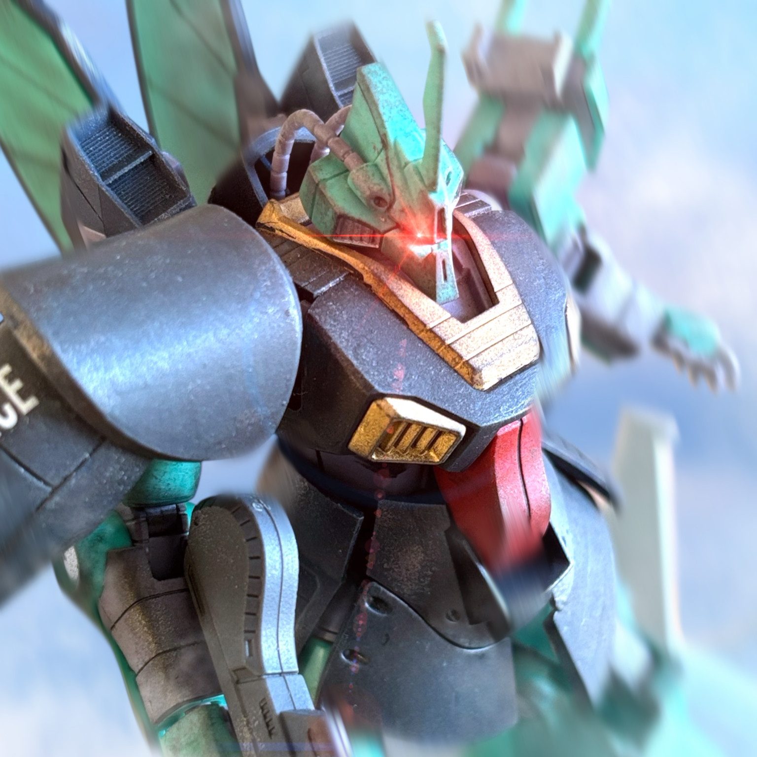 頭をデュアル・アイに替えた。それによって、この場にいる味方の期待や希望が、ここに集まってくる。ミヤギはその拡張された認知力で、確かに感じ取る。その感情の波が、機体に力を与える——これは、この機体は、紛れもなく”ガンダム”だ。
