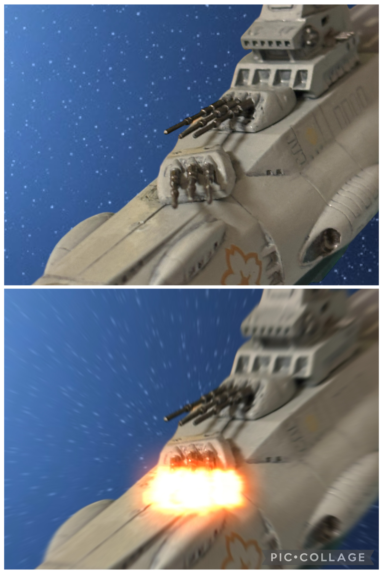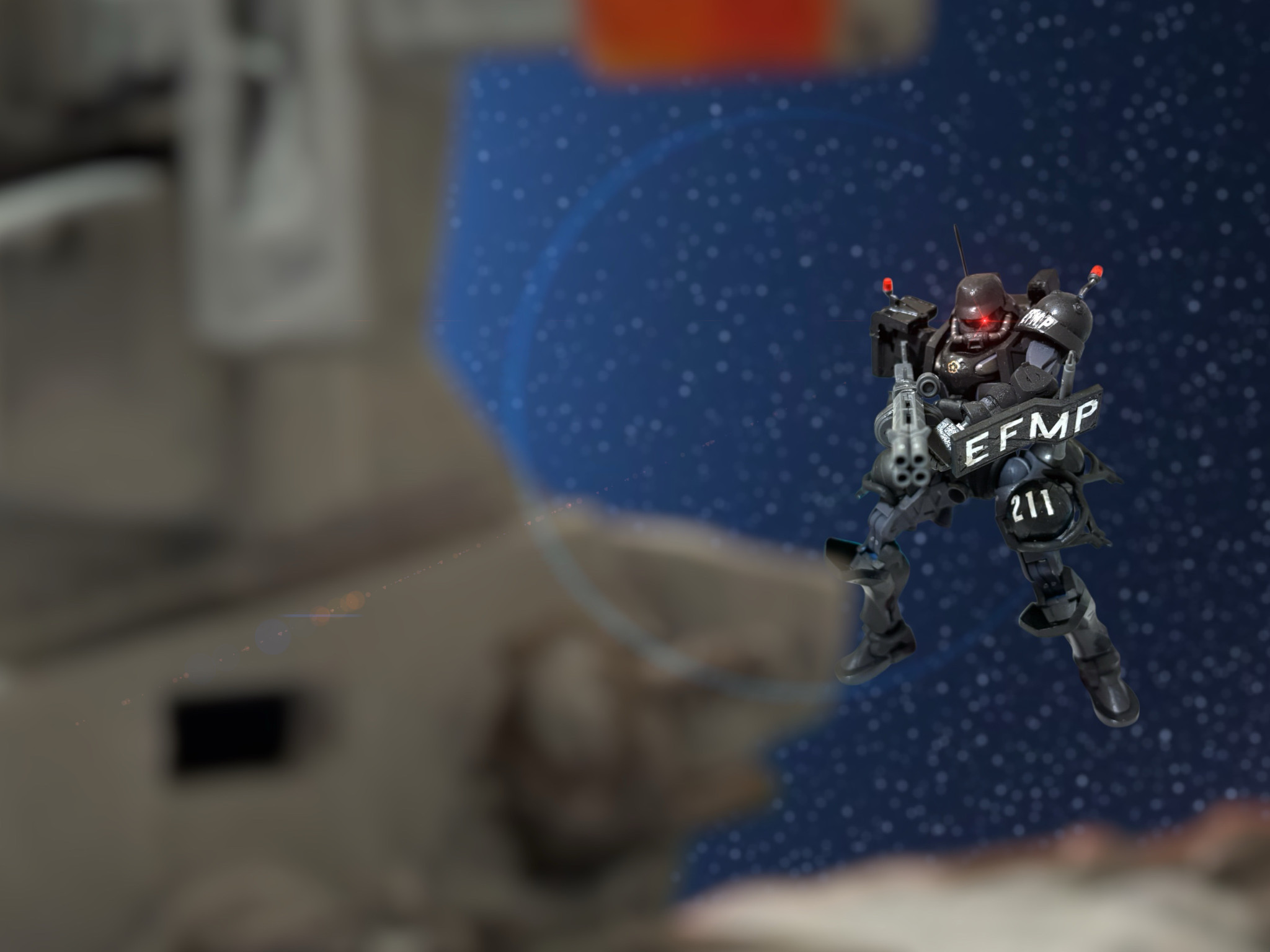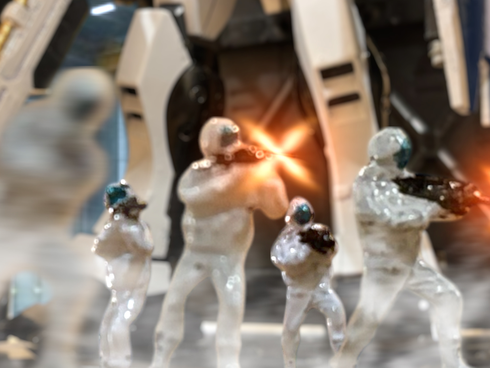 いつのまにか、砲身の封印が剝がされている。砲塔付近をふわふわと漂う、白いノーマルスーツが見えた。