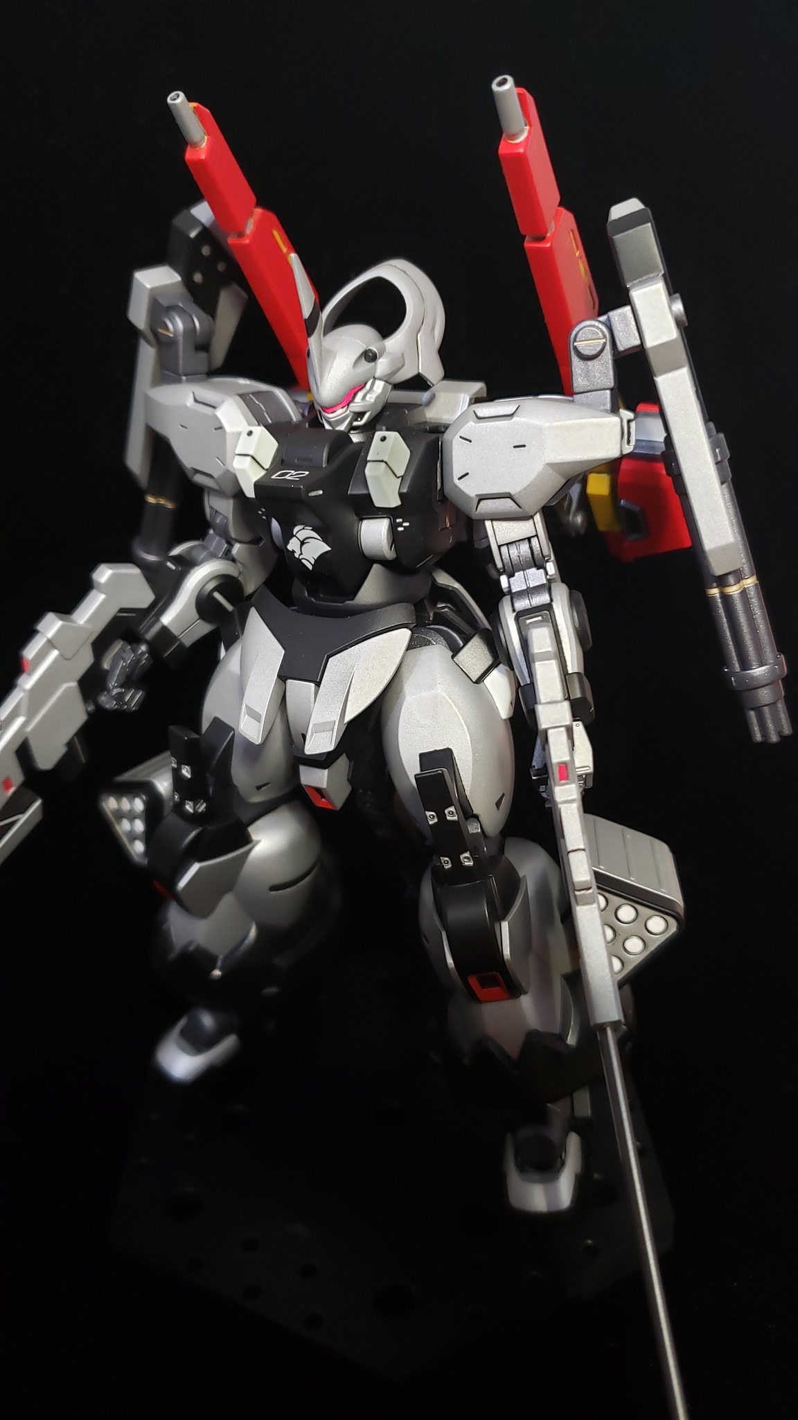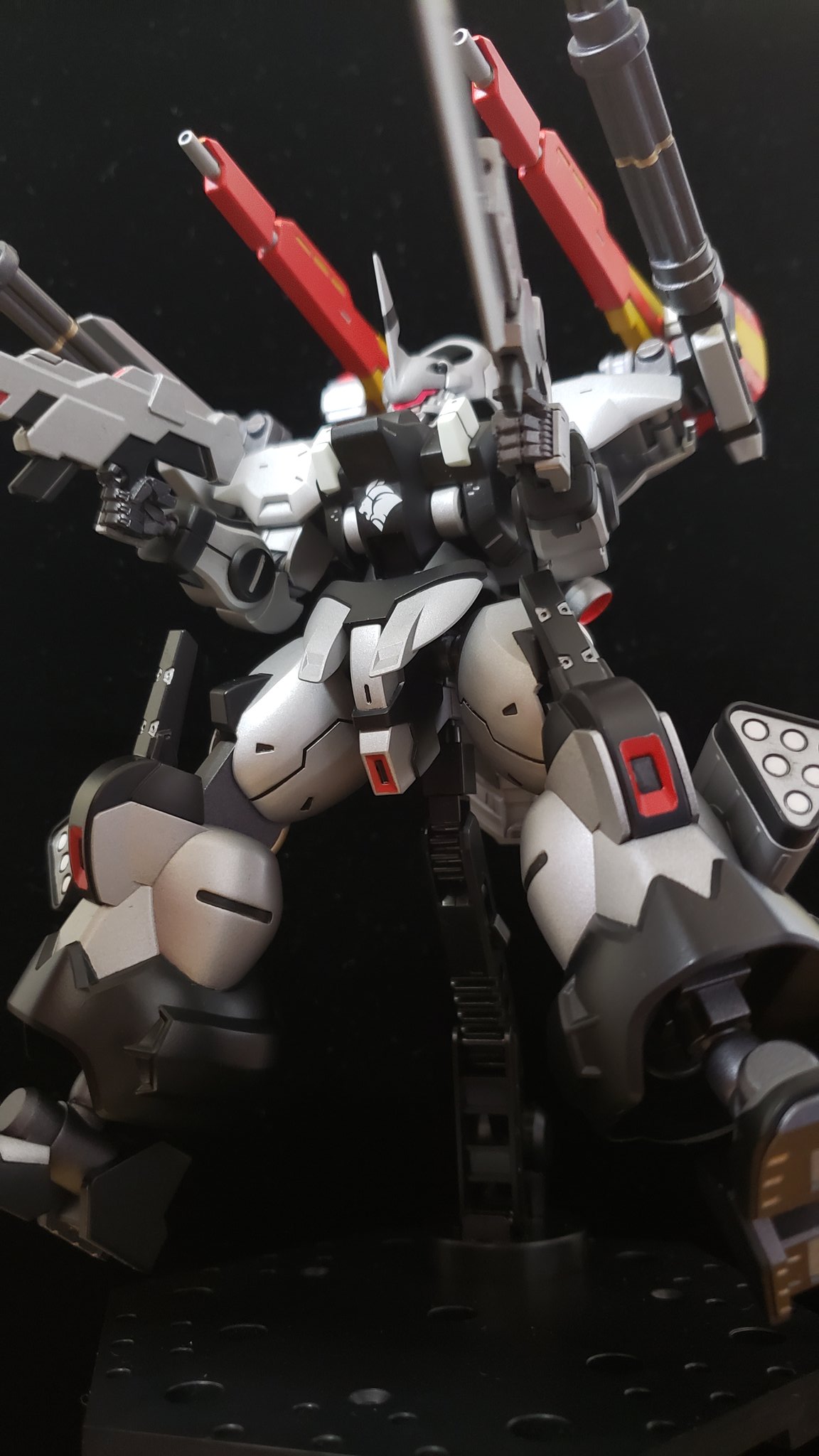 他武装にダリルバルデに元から付いていた頭部ビームバルカン、膝のペレットマイン。更に追加で紅ウェポンのビームライフル二種を繋げて作った背部ビームキャノン、パワーアームズパワーダーのガトリングを肩に、HGイフリートの余剰パーツを加工した脚部ミサイルと武装てんこ盛りな僕好みの仕様。
