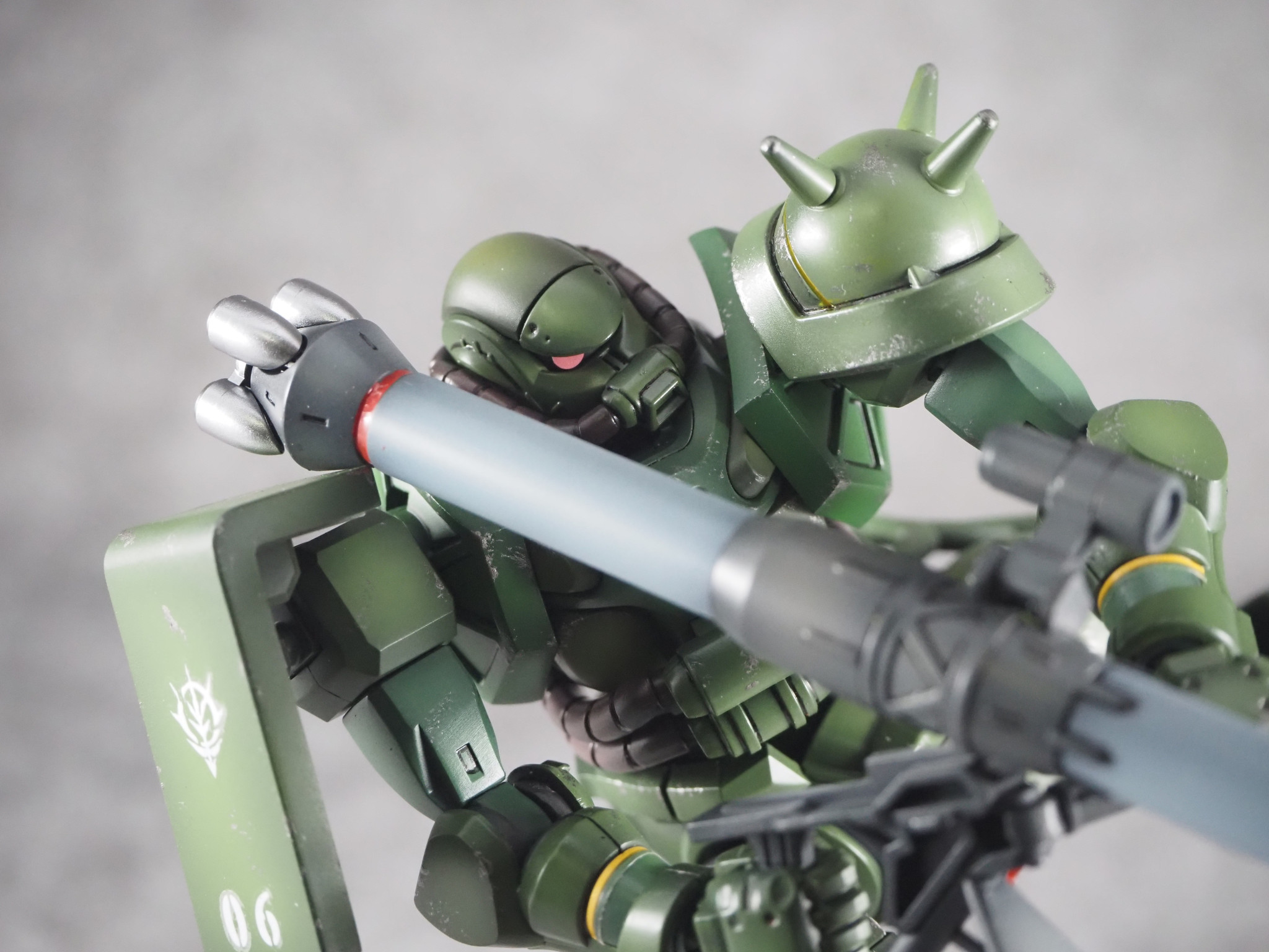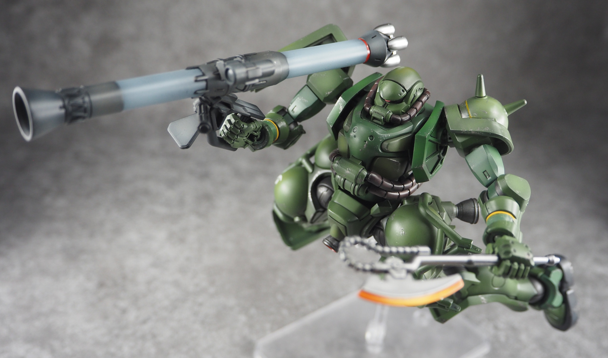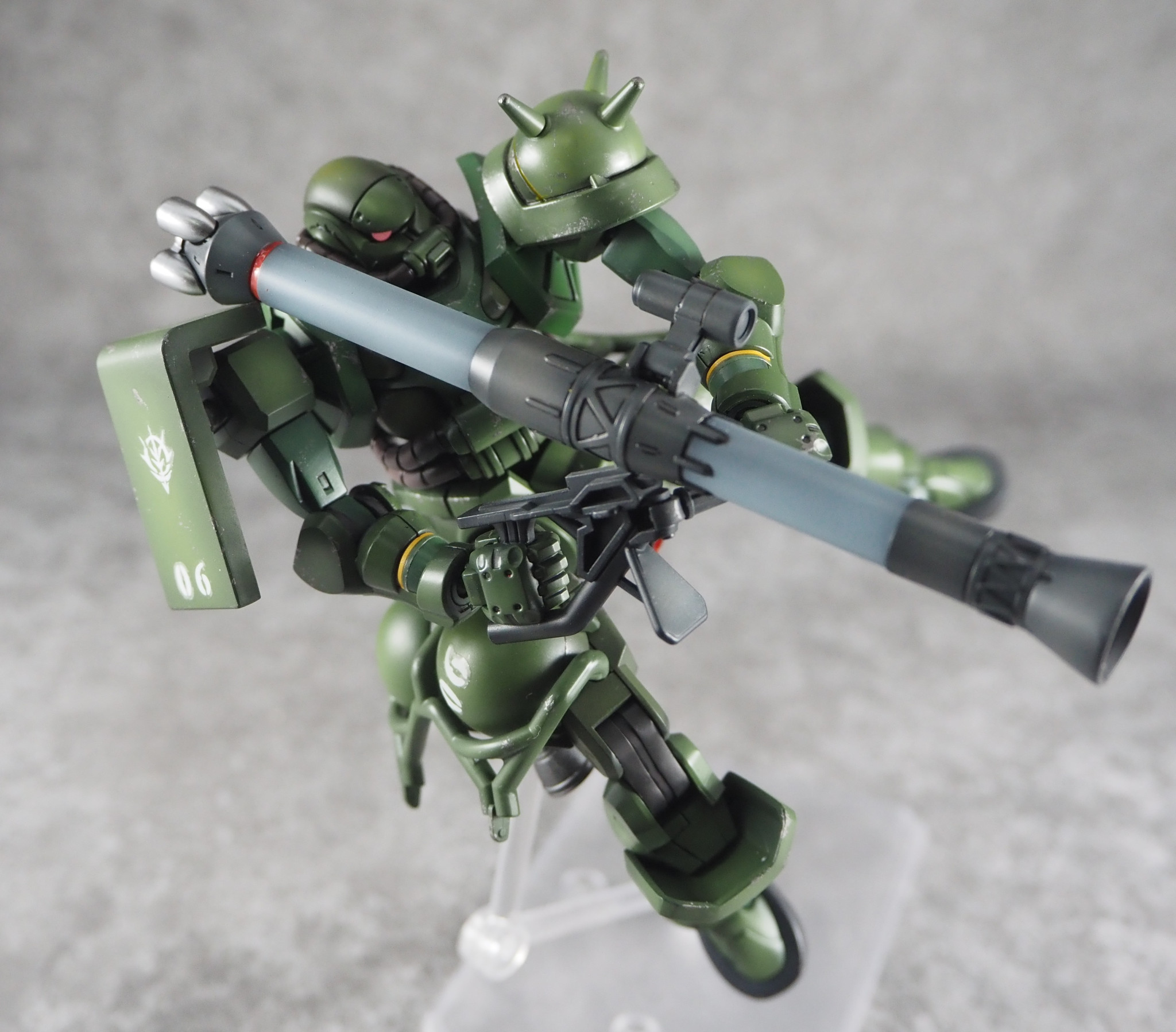 武装はザクマシンガン、ヒートホーク、ザクバズーカが付属。アレンジが加えられているマシンガン、バズーカに比べるとヒートホークはそのままな印象。