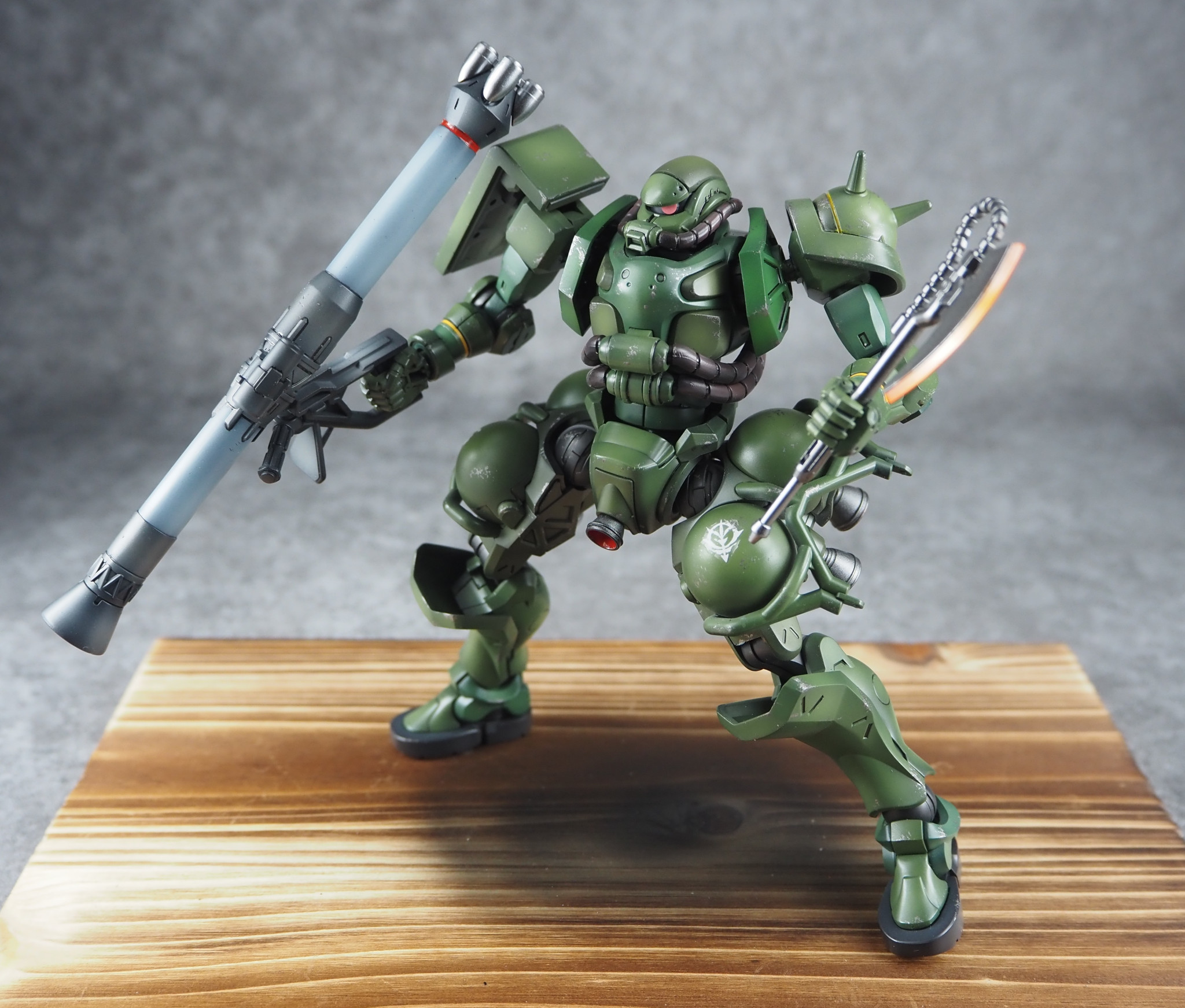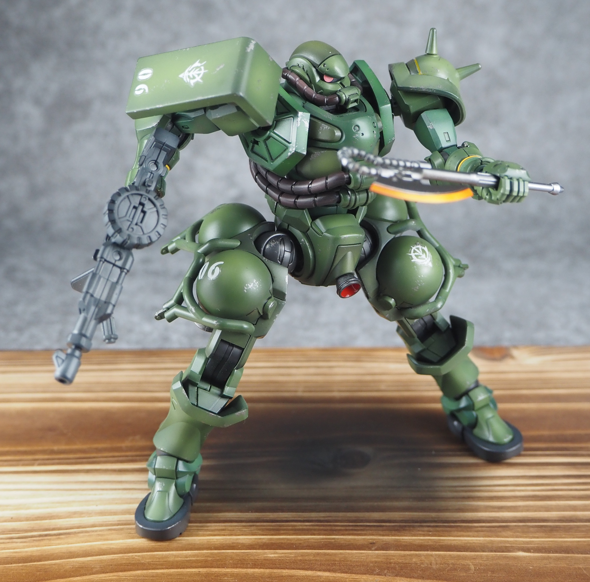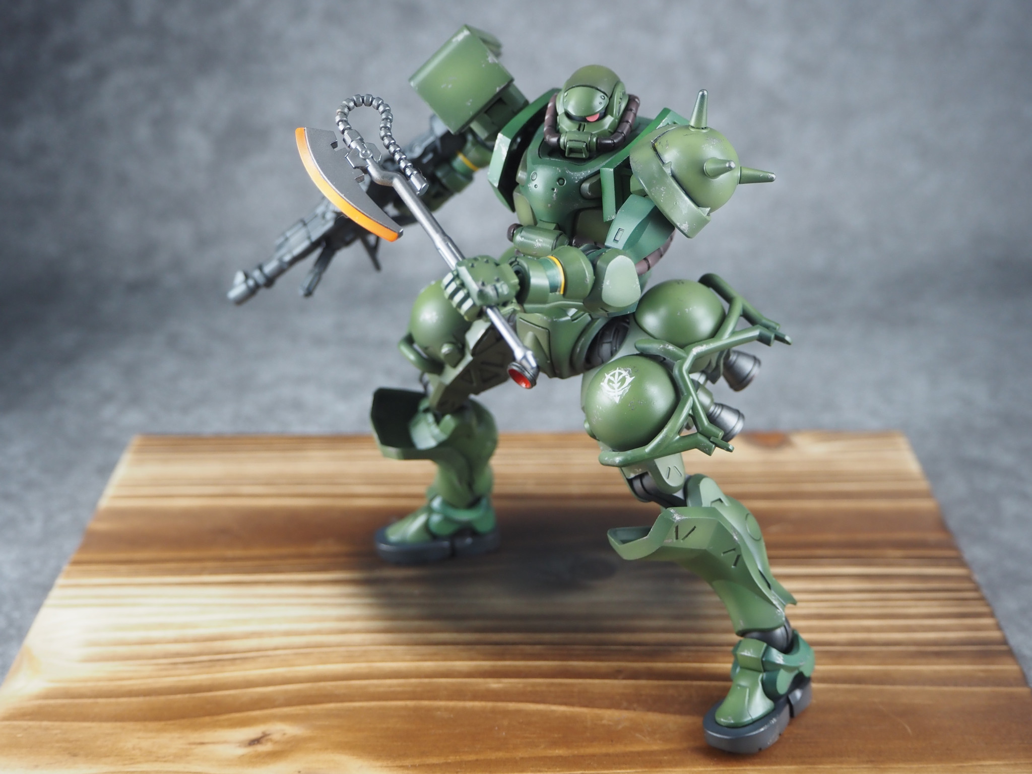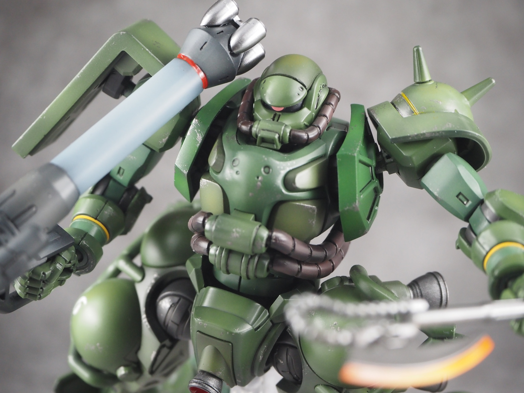 武装はザクマシンガン、ヒートホーク、ザクバズーカが付属。アレンジが加えられているマシンガン、バズーカに比べるとヒートホークはそのままな印象。