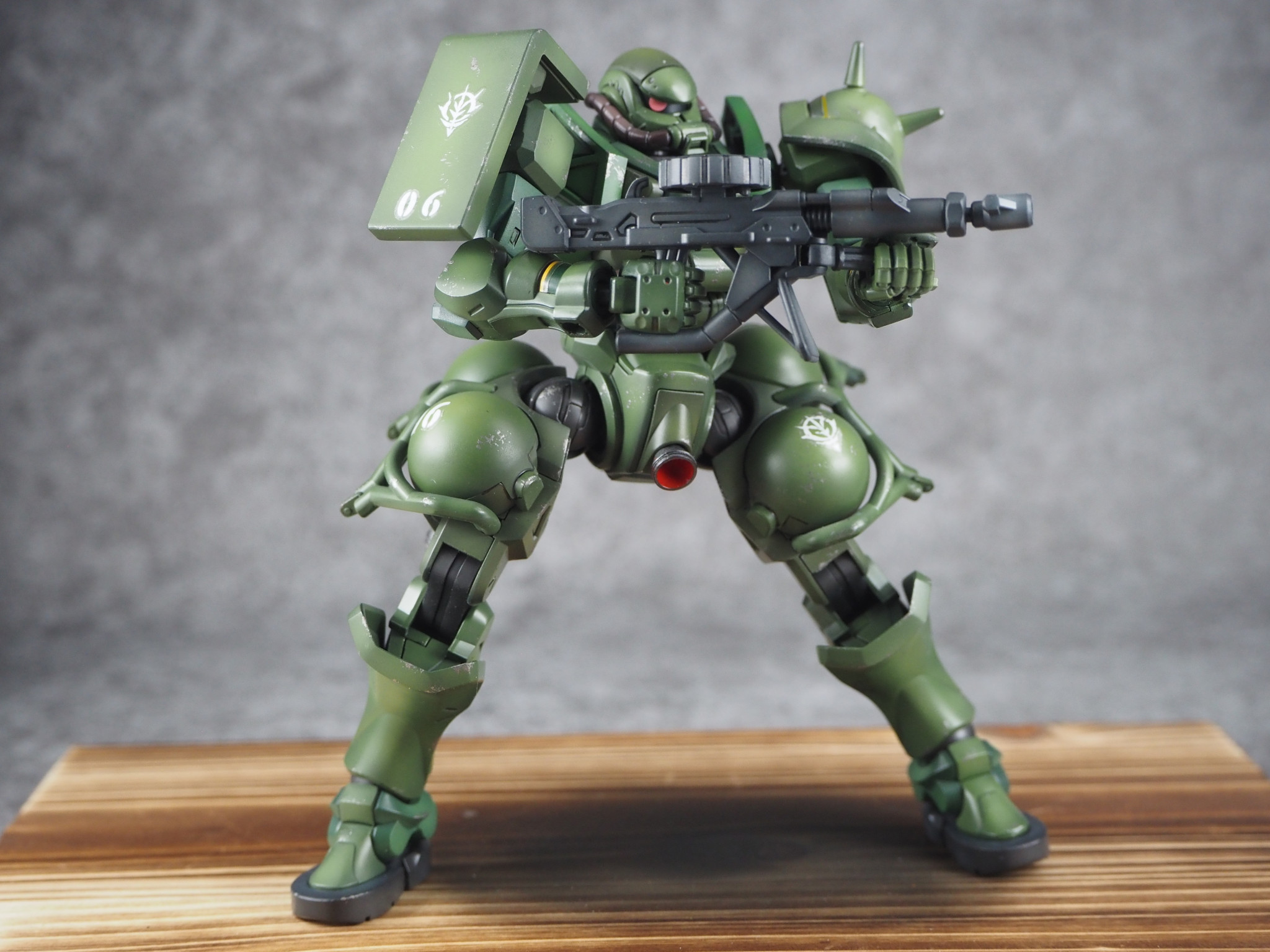 今回はザク、ジークアクス版となります。特徴的なシルエットですが、名前を問われればザクとしか答え様のない素晴らしいデザインですね。