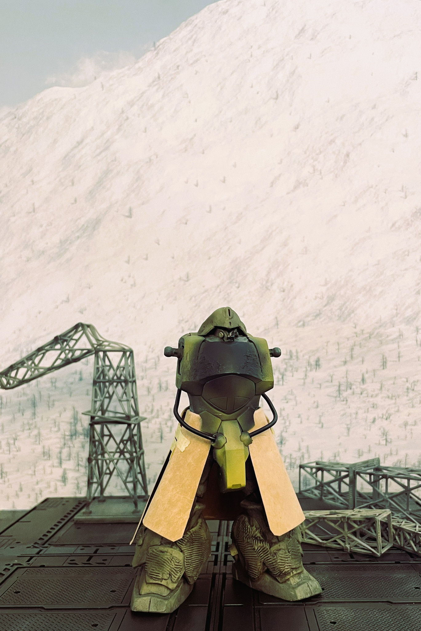 次回作は寒冷地仕様マラサイを予定しています。特徴的なオワン型スカート・アーマーの表現に注力する予定です。冬季迷彩を施し雪原で連邦軍を待ち受けるジオラマを構想中です。