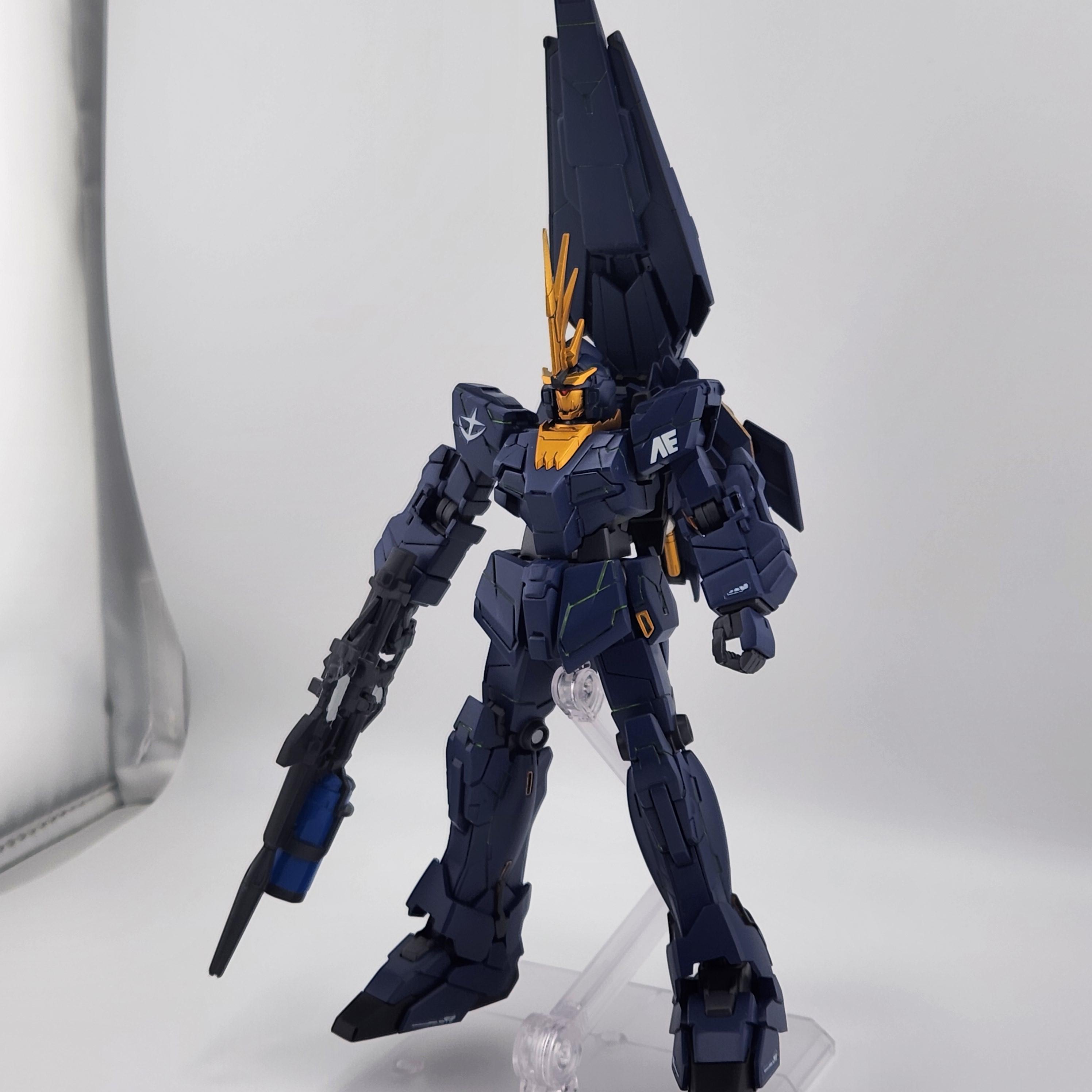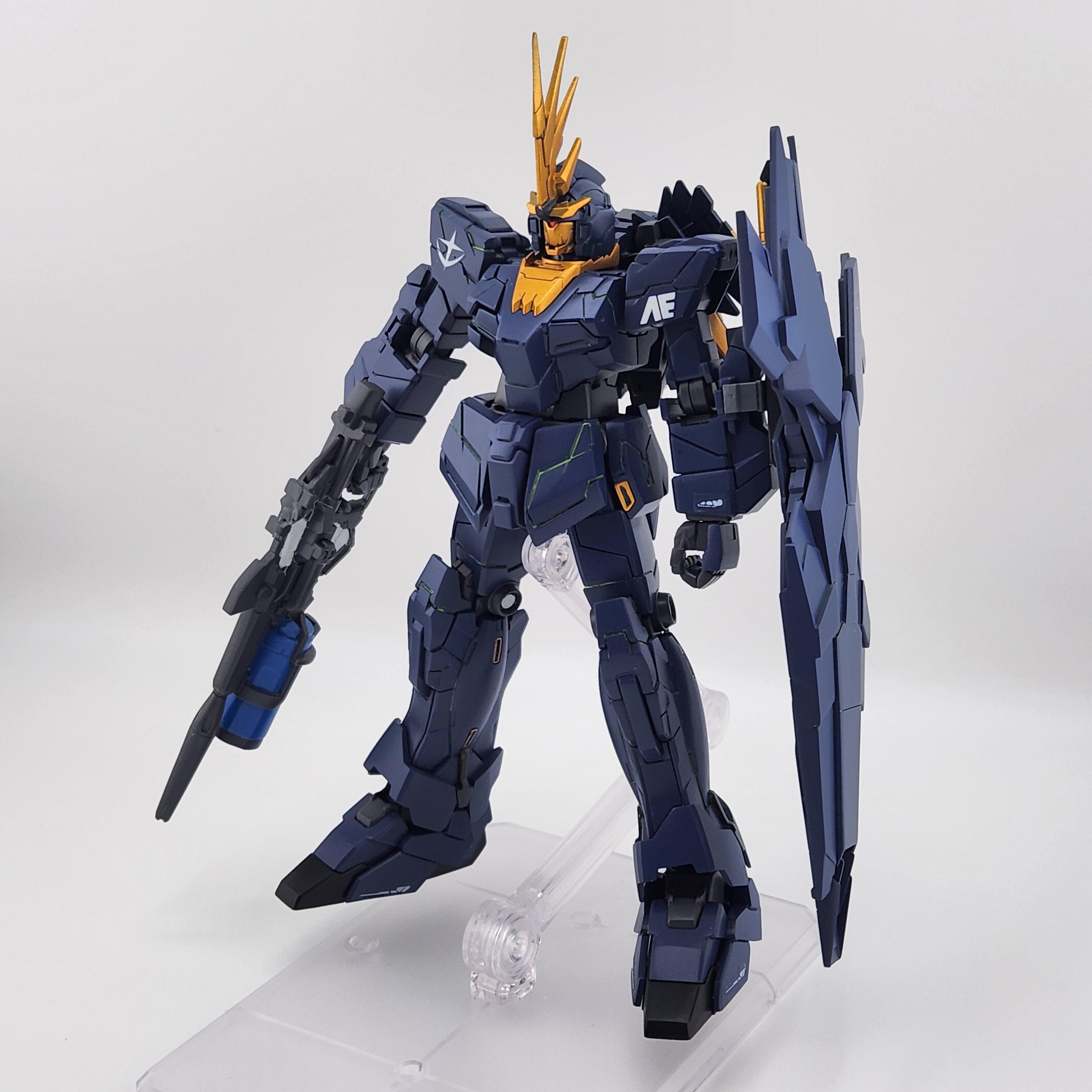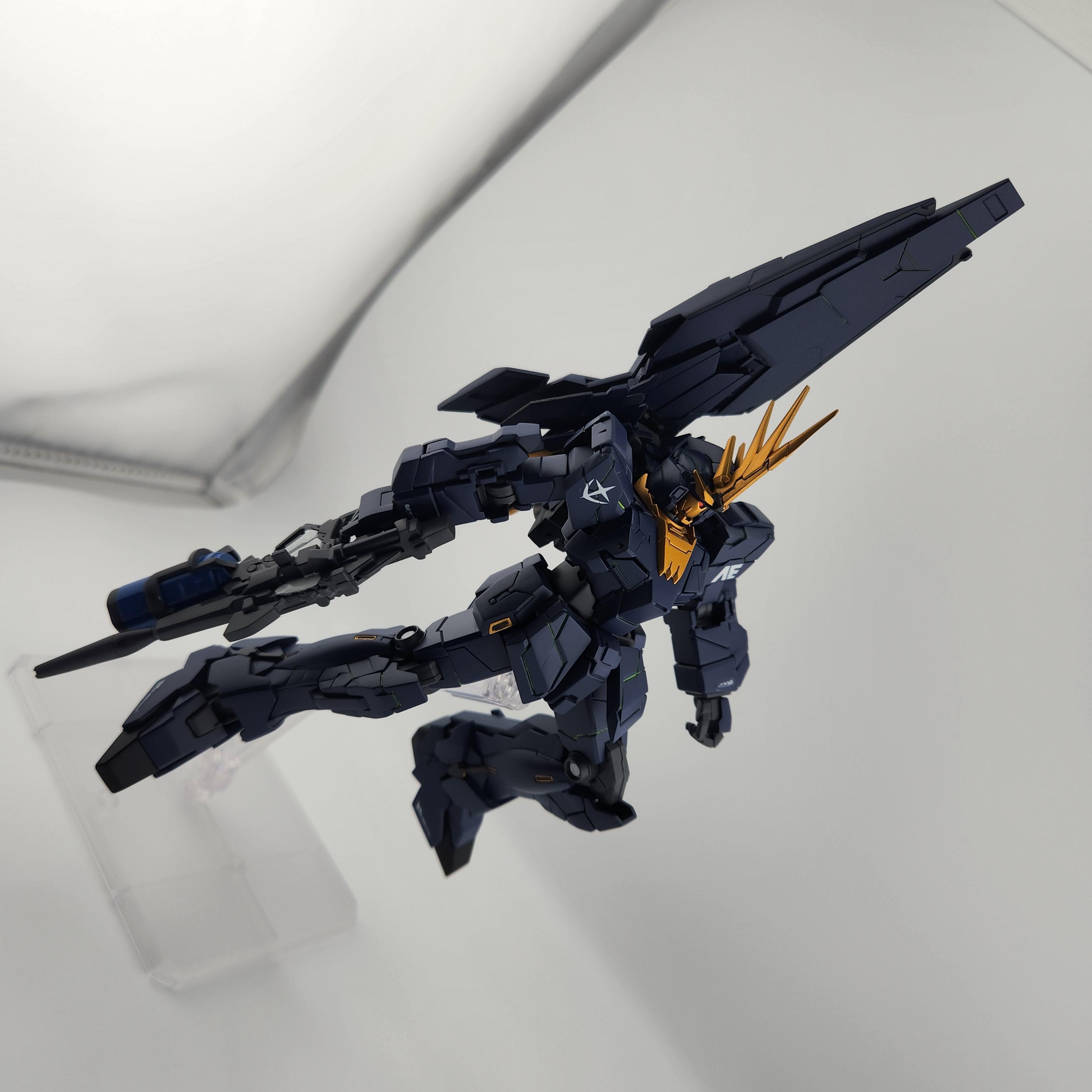 全体!カラーリングのベースは黒は違うなぁと思いティターンズブルーベースで塗っておりゴールドはスターブライトゴールドで塗っています!こっちのほうが撮影には合っていました!