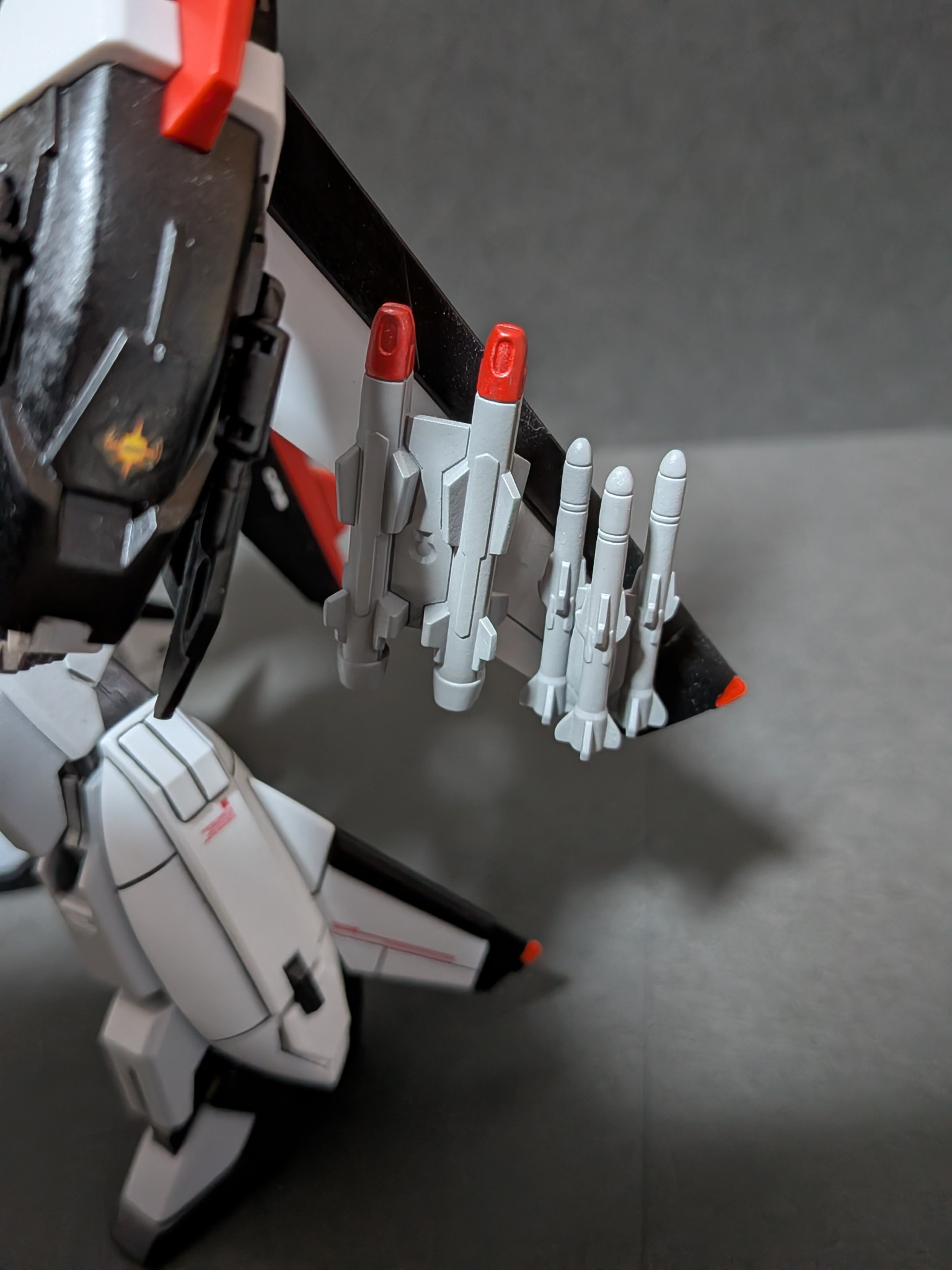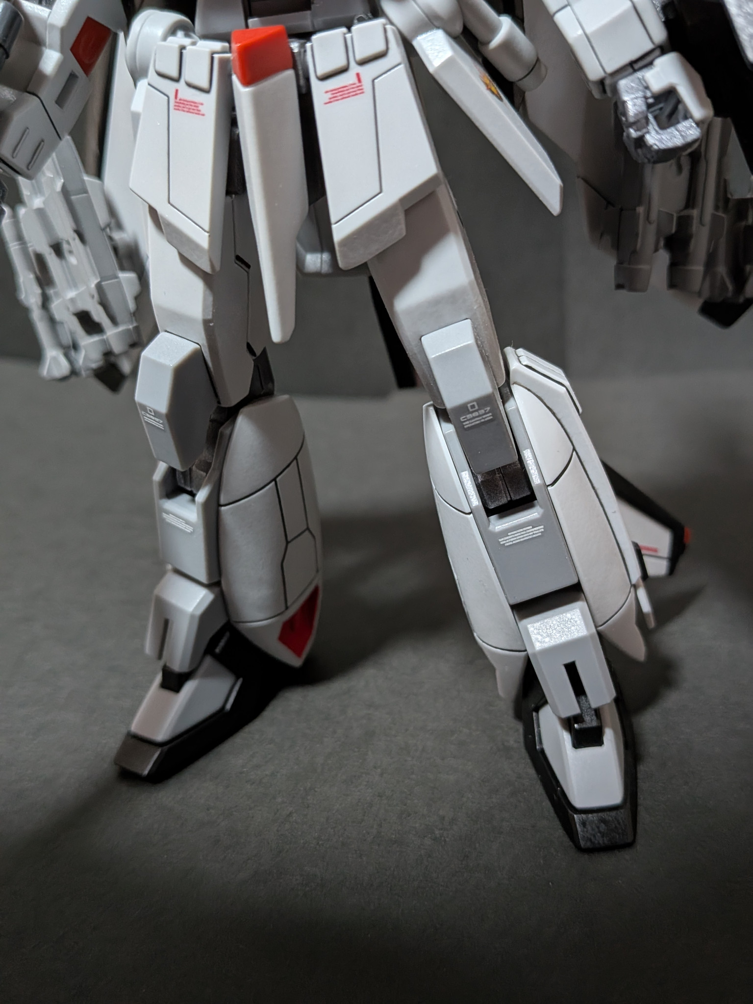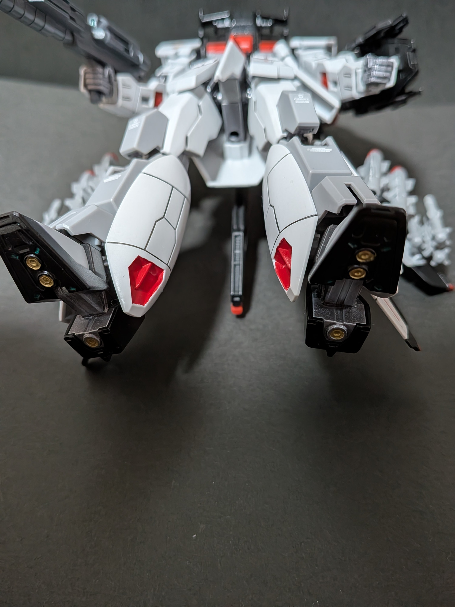 脚の内側のレッドも塗り分けし足裏見えなくなりますがフレームはライトガンメタル、バーニア内部はゴールド、バーニア周りの4つの窪みはメタリックグリーン塗装