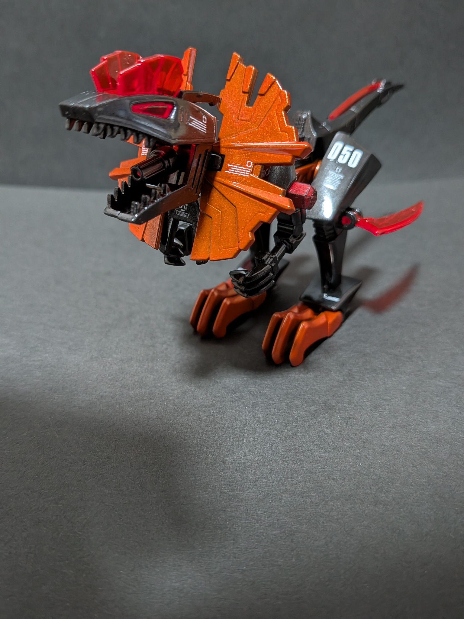 このゾイドもガイロス帝国最強部隊、鉄竜騎兵団所属(アイゼンドラグーン)後のネオ・ゼネバス帝国のSSゾイドでこのゾイド最高速度300kmで走行し更にデスザウラー、ジェノザウラーと同じように口腔内部に小型荷電粒子砲が搭載されて襟巻き状パーツにはEシールド備え両足側面にレーザーソード、尻尾にテールソード備えており遠近両方対応可能でバランスの取れたゾイドです。