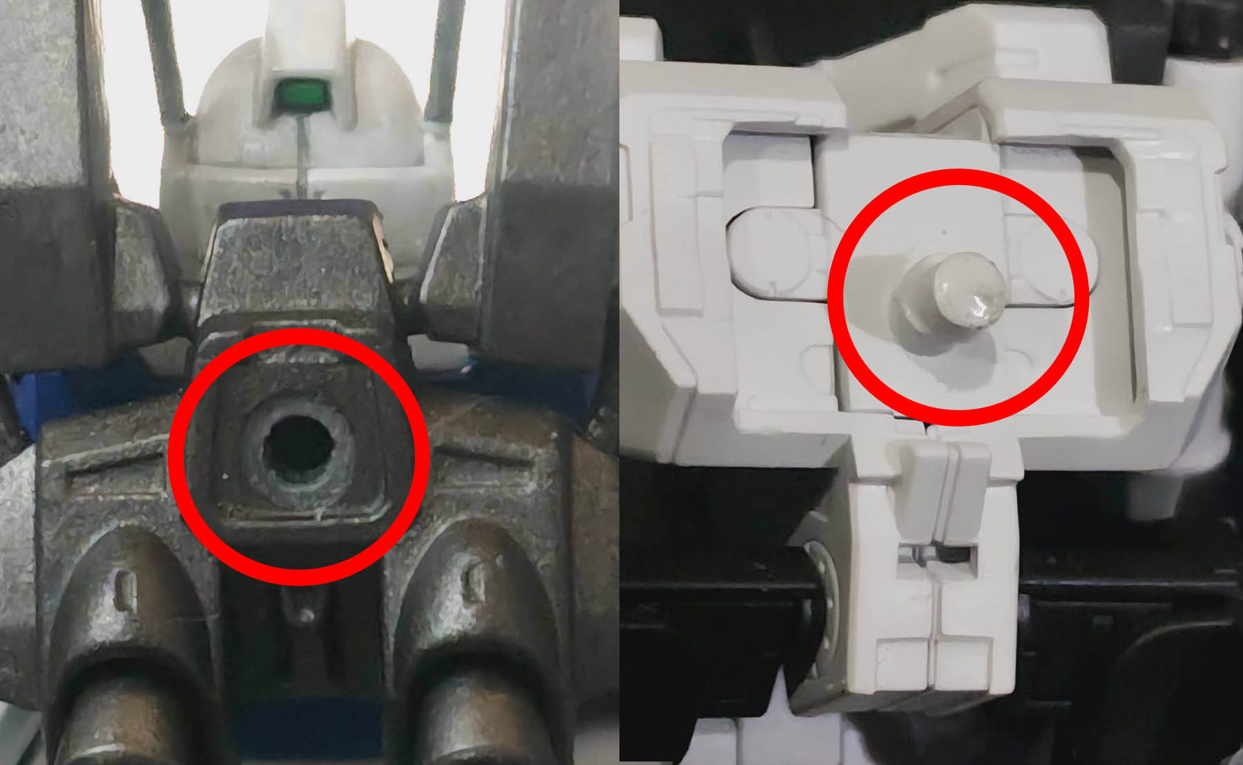 スーパーガンダムのバックパックのピン穴とグラスフェザーのピンが都合良くハマります。