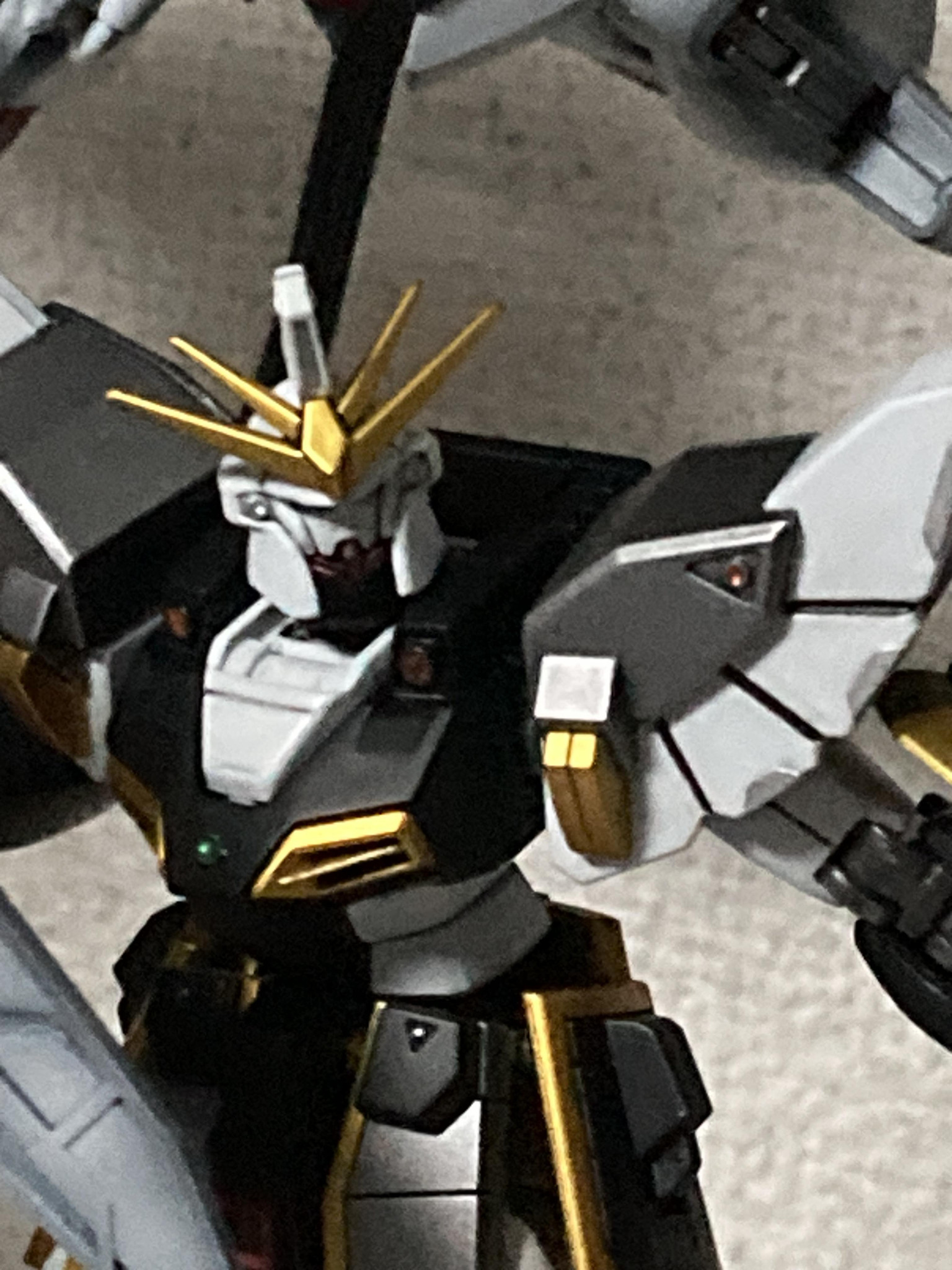 アルトロンはホワイト部をつや消しの黒立ち上げ、その他を光沢にしてみました。クリスタルカラーのターコイズグリーンがピッタリでした。黒立ち上げのために0.2mm口径のハンドピースを導入したためウイングゼロよりグラデーションが細かい(はず)