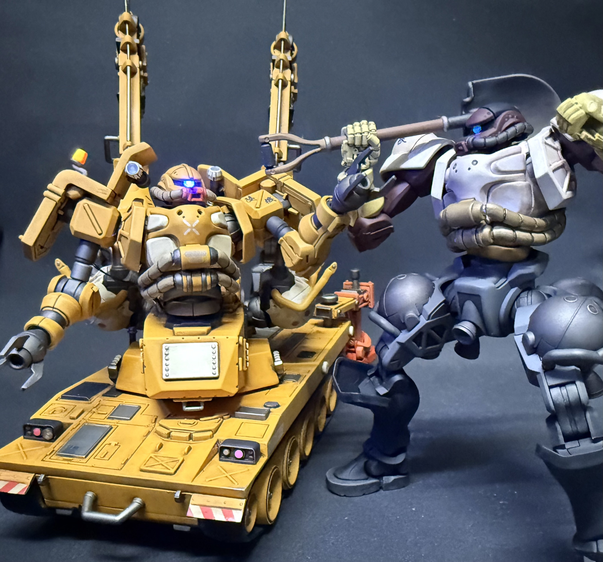 GQザクタンク用パーツ取りの余r…ゲフンゲフンッ、両肩パッド仕様にした軍警ザクでM.A.V.土建術の相方?…つーか土方?んー、貫禄的に親方?な機体を作ってみました。