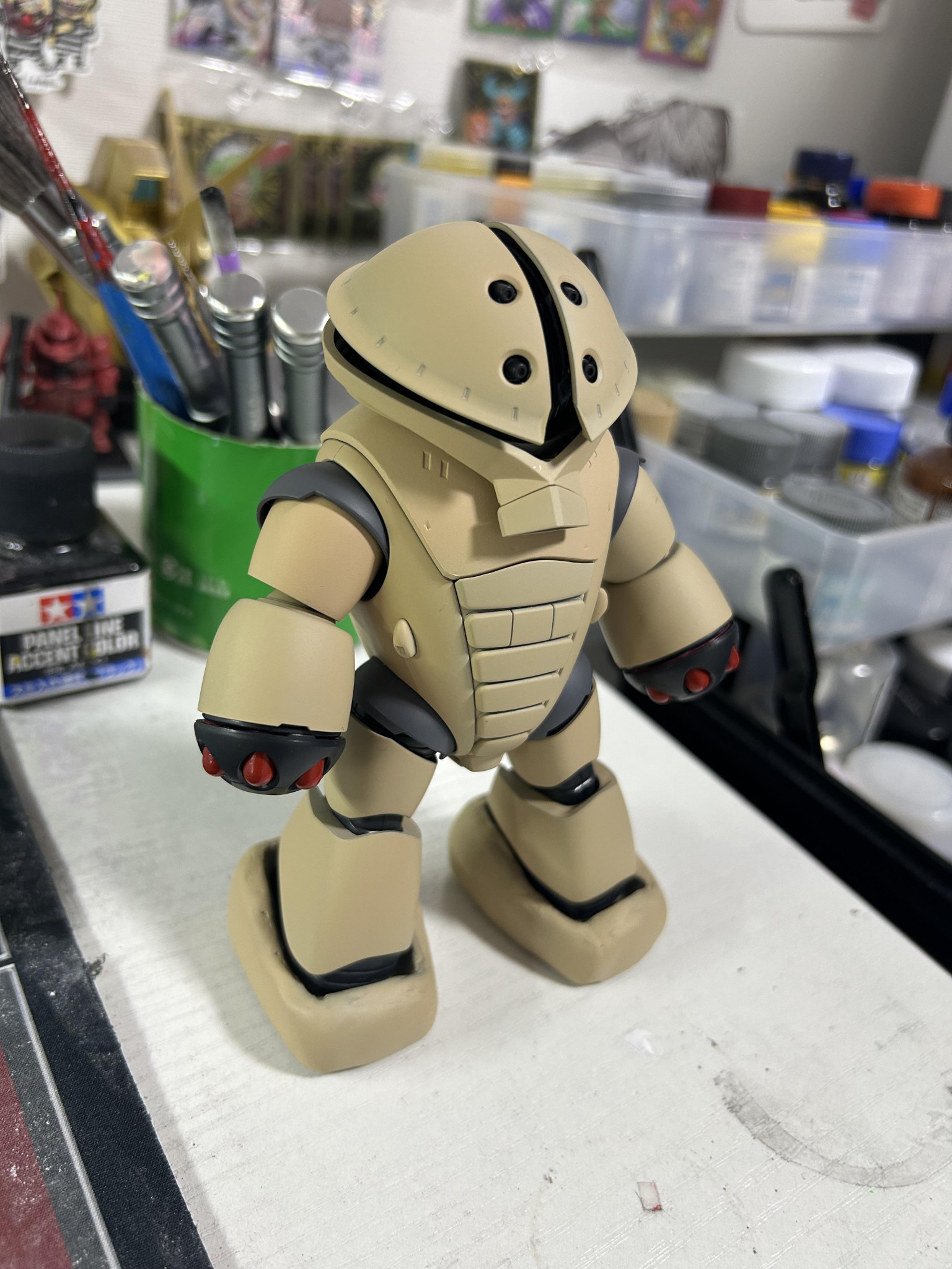 下地塗装をしてデザートカラーで塗装した状態です。この上からカーキグリーンと赤褐色で迷彩塗装しました。それにしてもデザートカラー単色状態も可愛いですね笑