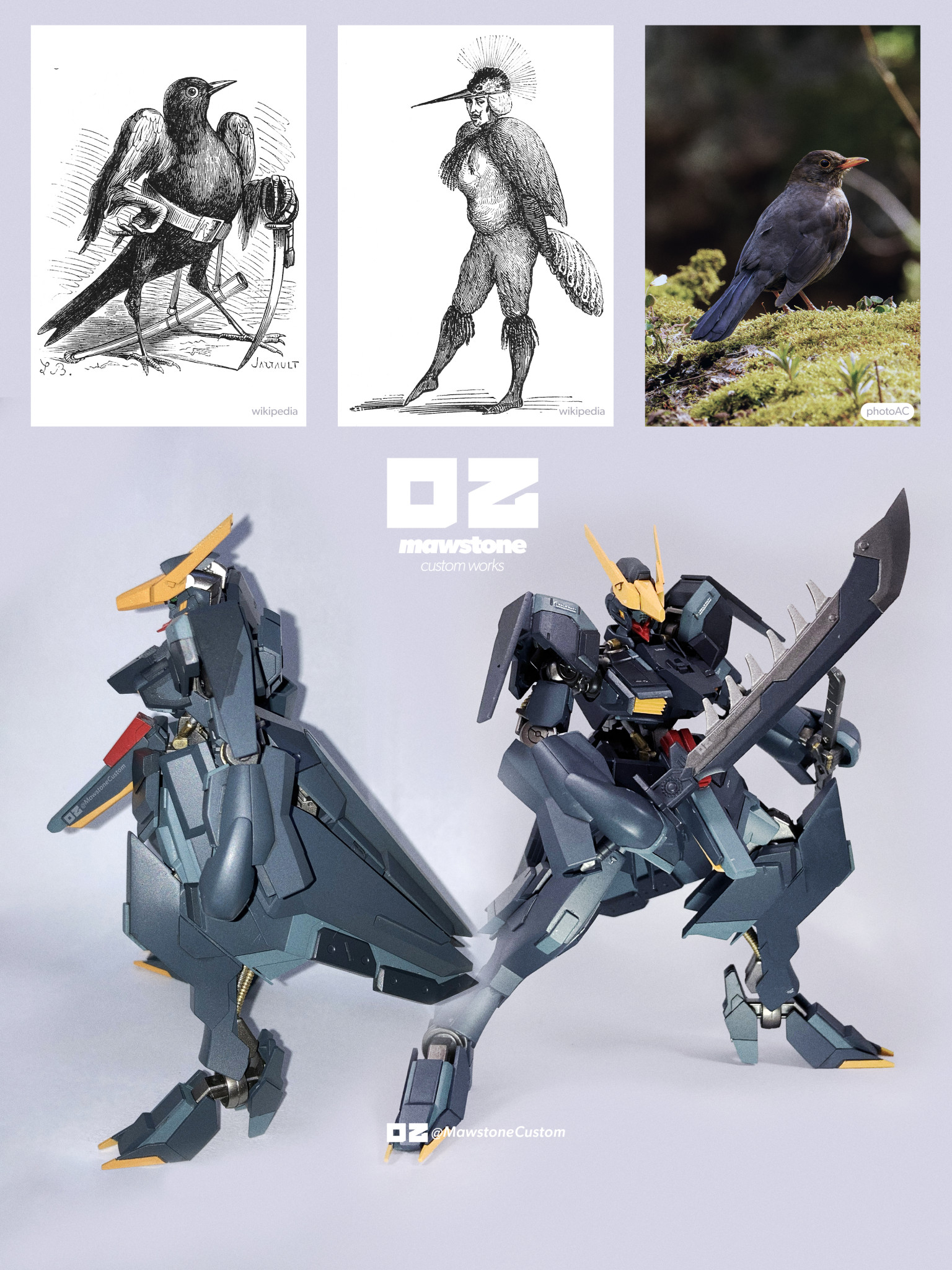 カラーリングはクロウタドリを参考にしたもので、全体的なスタイルは二つのイラストから着想を得ています。