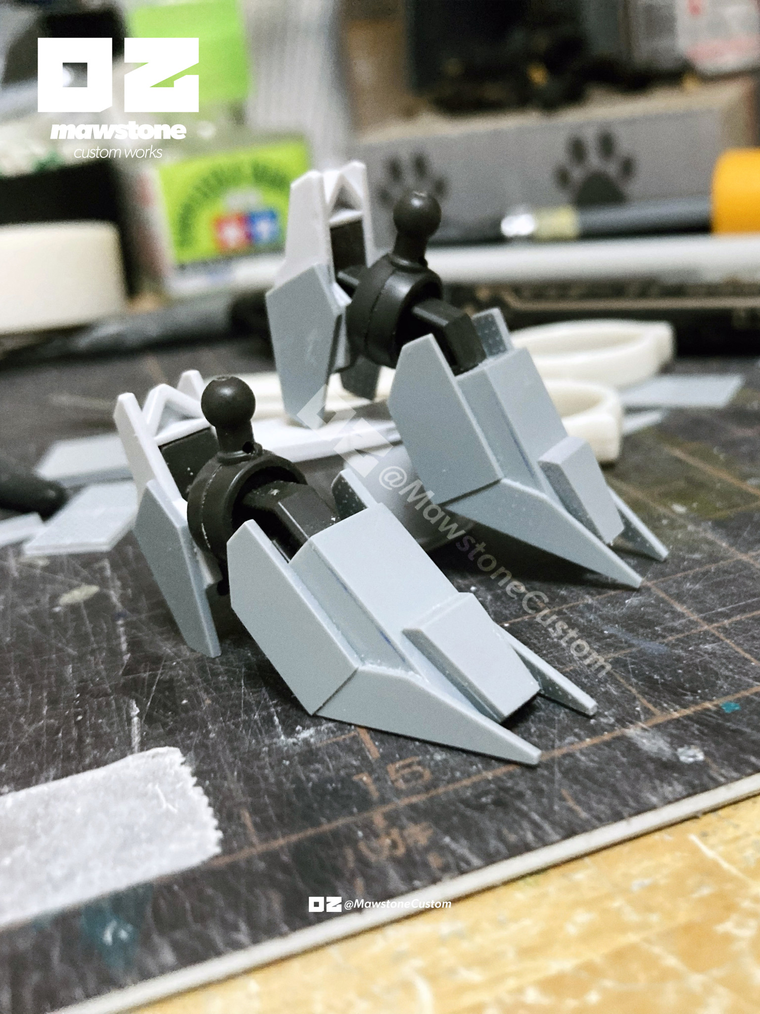 グレイズのパーツを流用しており、肩は形を変えて使い、二の腕には手首、前腕には脛、ナックルガードには頭をそれぞれ使用しています。
