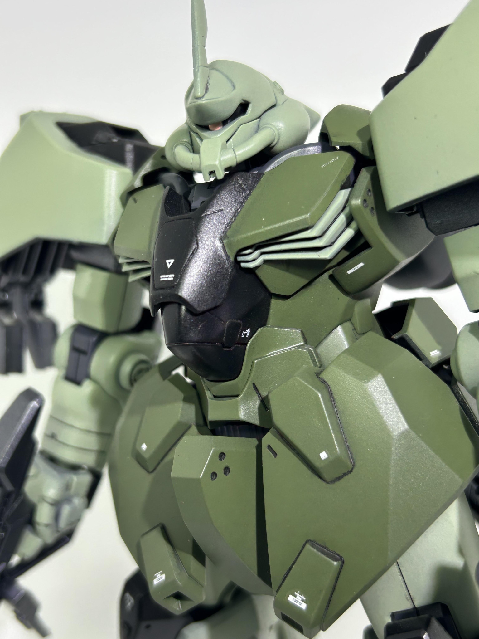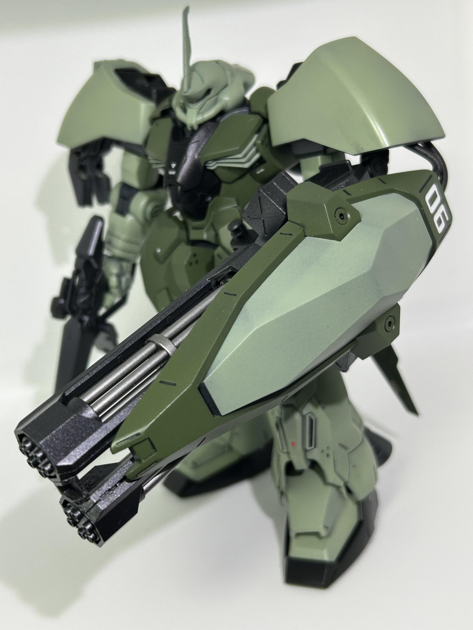 ザク・ギラドーガ系譜のMSなら、AE社の初期案にはもっとザクに寄せたバージョンもあったのでは?元ジオニックのエンジニアもいるだろうし。ならば形式番号は06だ。などと思いを馳せながらちまちまいじってみました。