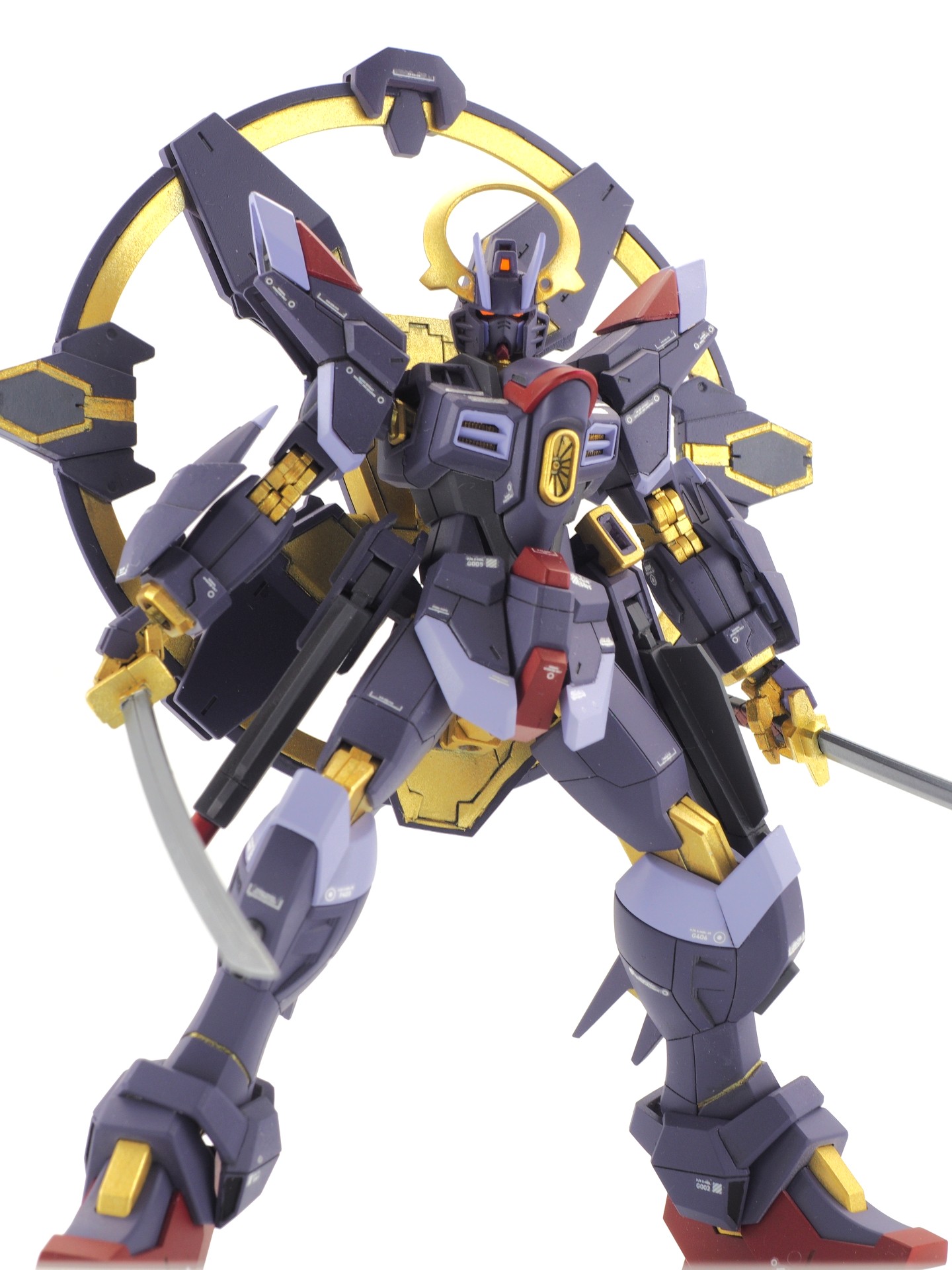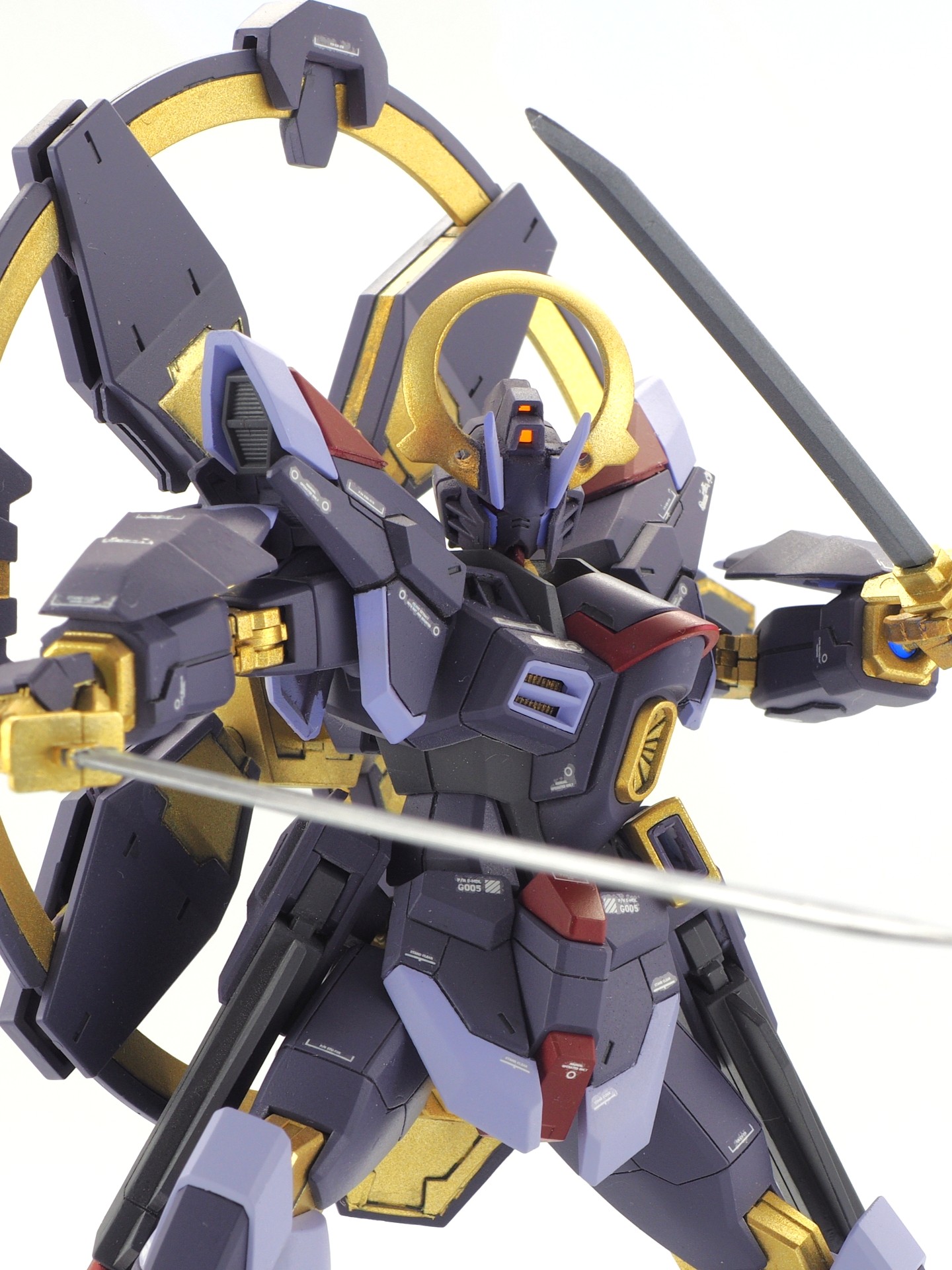 HGCEマイティストライクフリーダムをベースに、実体剣二刀流を主体とした近接戦機体として製作しました