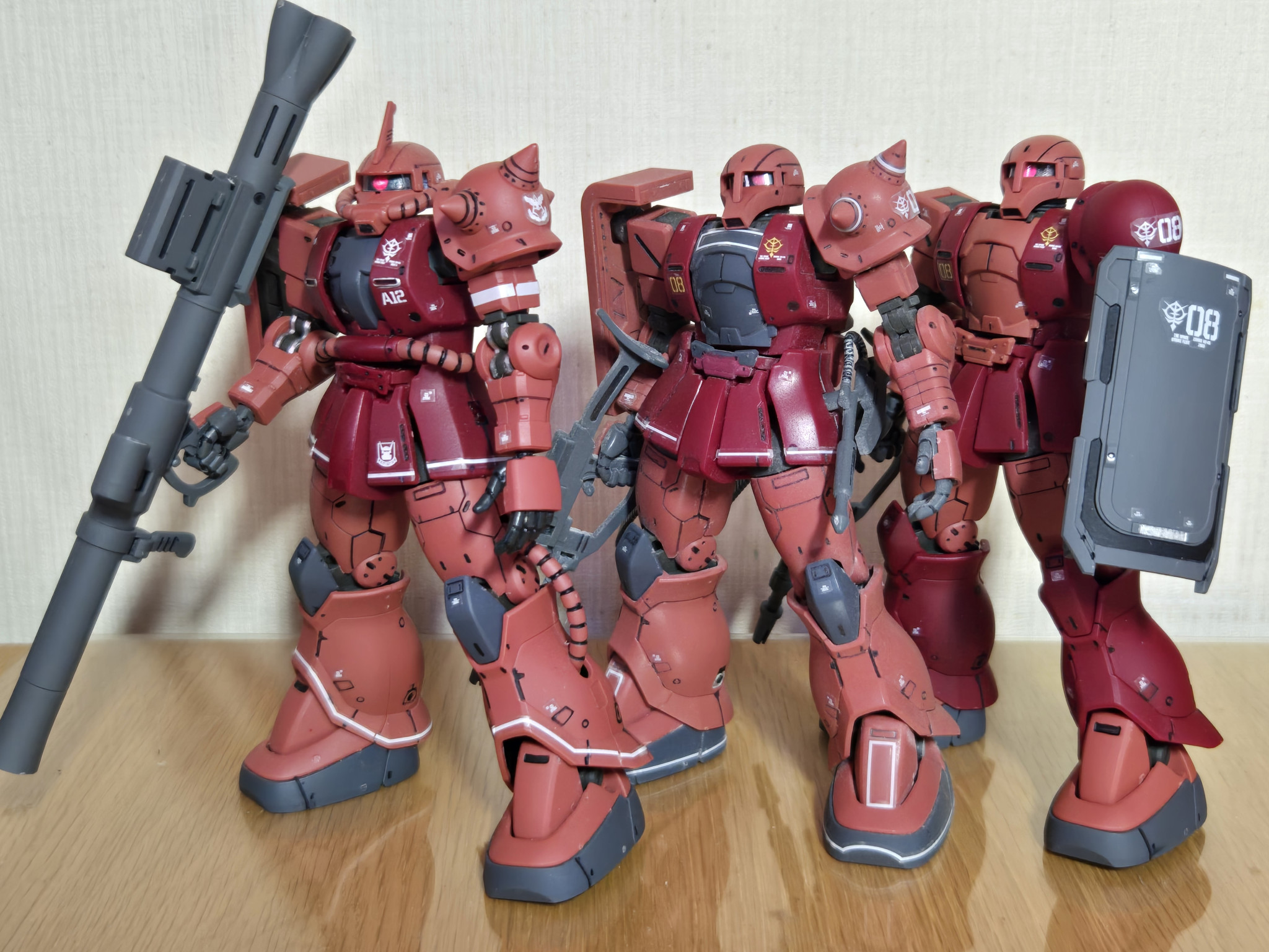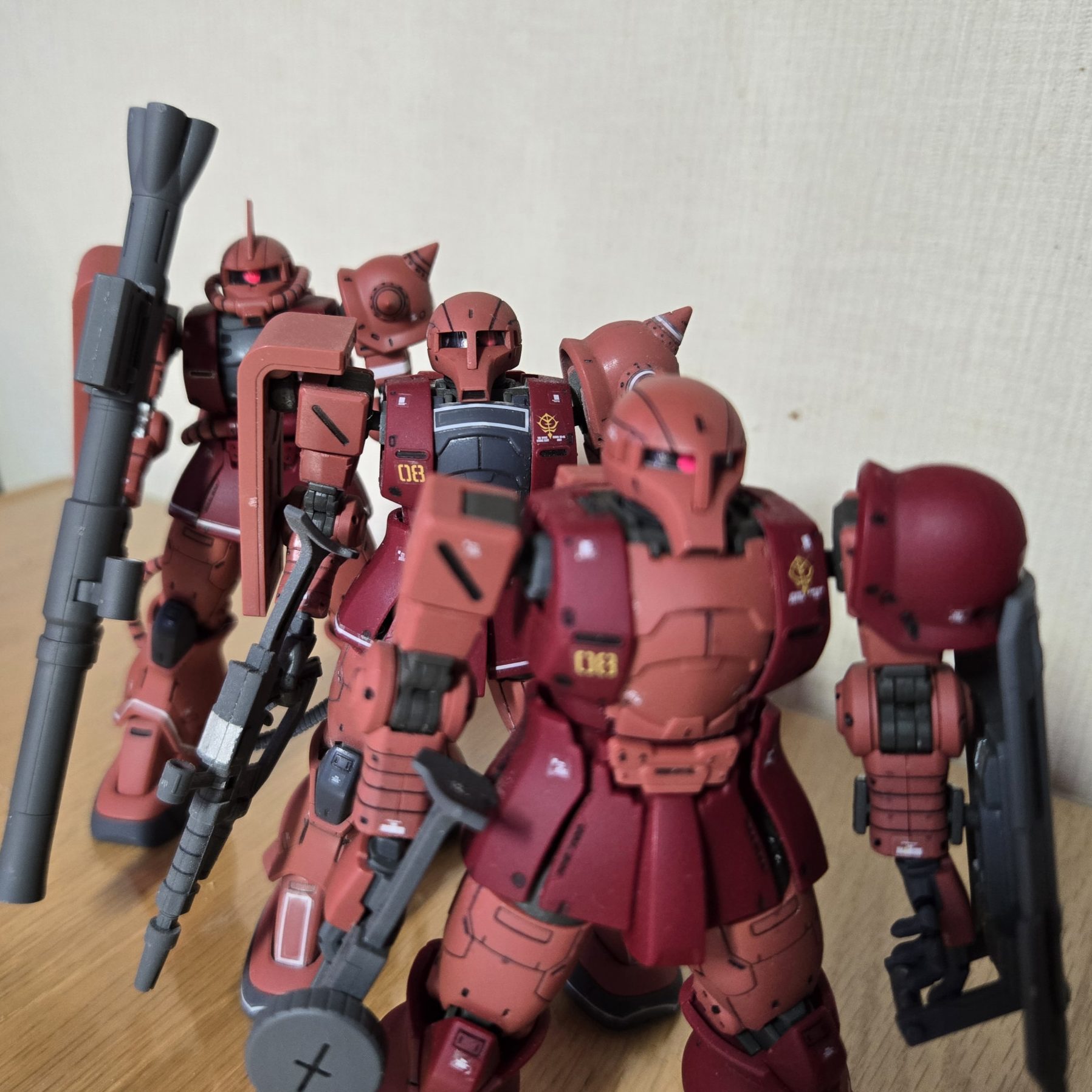 number16 HG 2025.11/22更新 オリジン版シャア専用ザク揃い踏み! 184 41 いいねしたモデラー(41) 0 0 作品を共有 シャアが搭乗するザクの進化を揃えました!個別には既に投稿しましたけれど、改めて三機並べると良いものですね。 やはり、馴染みがあるのは最も左の機体ですよね✨️武器もフル装備で持たせてみました。やはり、MSと言えばザクです!オリジン版モデルは全体のバランスが好印象ですよね。三兄弟みたいですね!リアビュー。逆サイドから。武器やシールドの様子が分かります。オリジン版で最終ア・バオア・クー戦まで見てみたいですwパッケージ オリジン ザク コメント コメントをして応援しよう コメントにはログインが必要です number16 40年ぶりにガンフラ作成を復活しました。ファーストガンダム世代の私なので、その頃のMSが中心の作品になると思います。当時を思い出して、楽しみながら作っていますので、どうぞよろしくお願いします。 5 ジム ガンダムの量産機と言われたMSですね!簡素化して、性能ダウン… 5 MS-05S シャア専用ザクI シャア専用ザクIのモデルチェンジ版です。ザクIIに近づいてい… 6 MS-05 ザクI オリジンのシャア専用ザクIの初期タイプです。シャアもMSをス… 6 リックドム HGUC ドムかリックドムを選択して作れるキットです。今回はスカートと… number16さんのページ この作品をお薦め作品に設定する Please login to update your profile! Please login to update your profile! Please login to update your profile! Please login to update your profile!