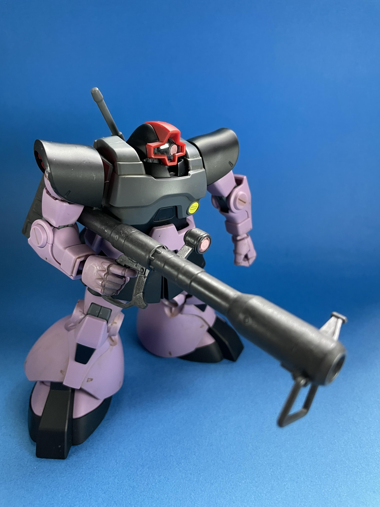 7年前(!)に素組みしたまま箱に仕舞い込んでいた黒い三連星セットのドムがとても良い成形色だったので、成形色+ウェザリングマーカーによる汚し+スーパースムースクリア艶消しコート仕上げ✨