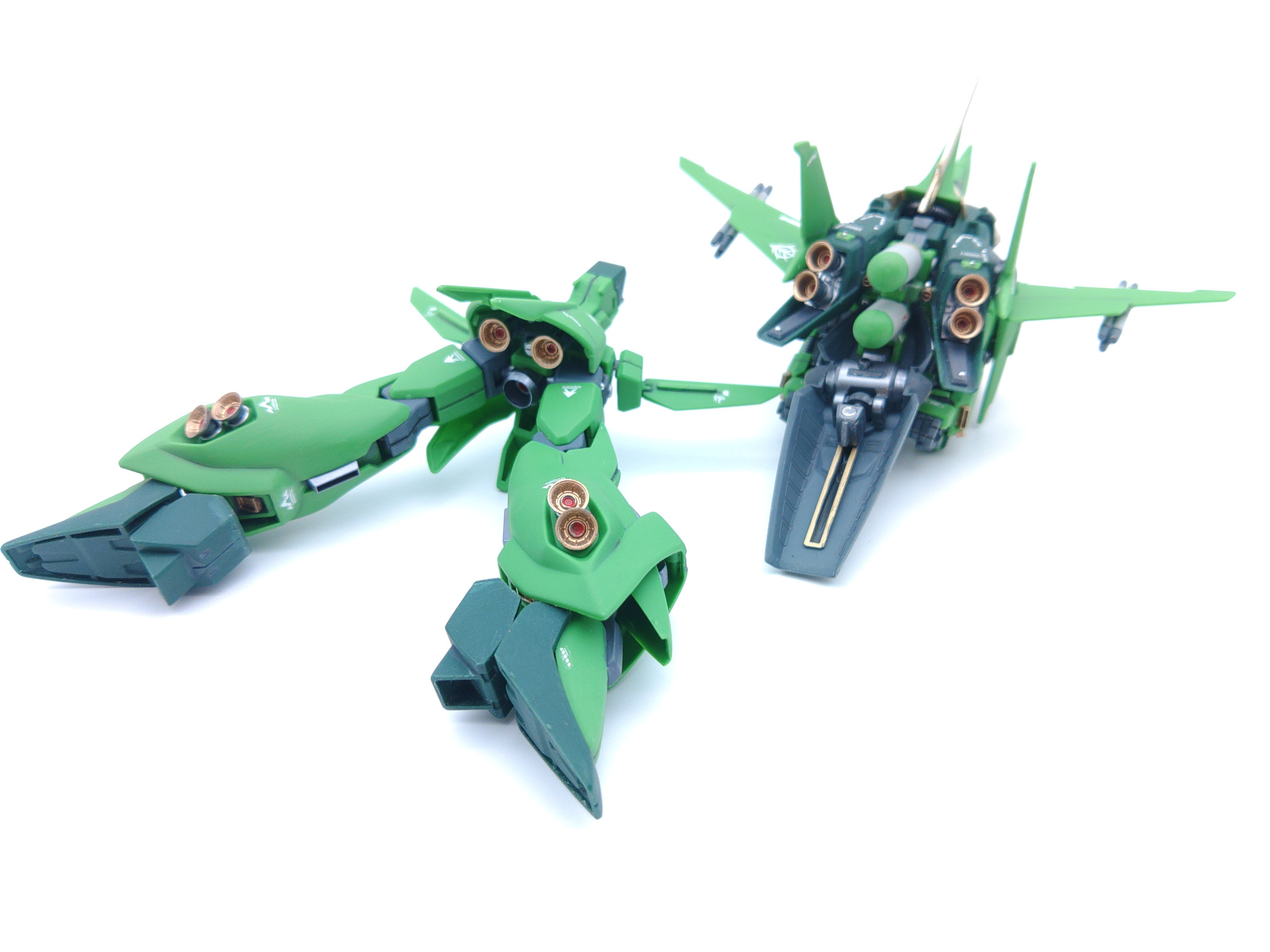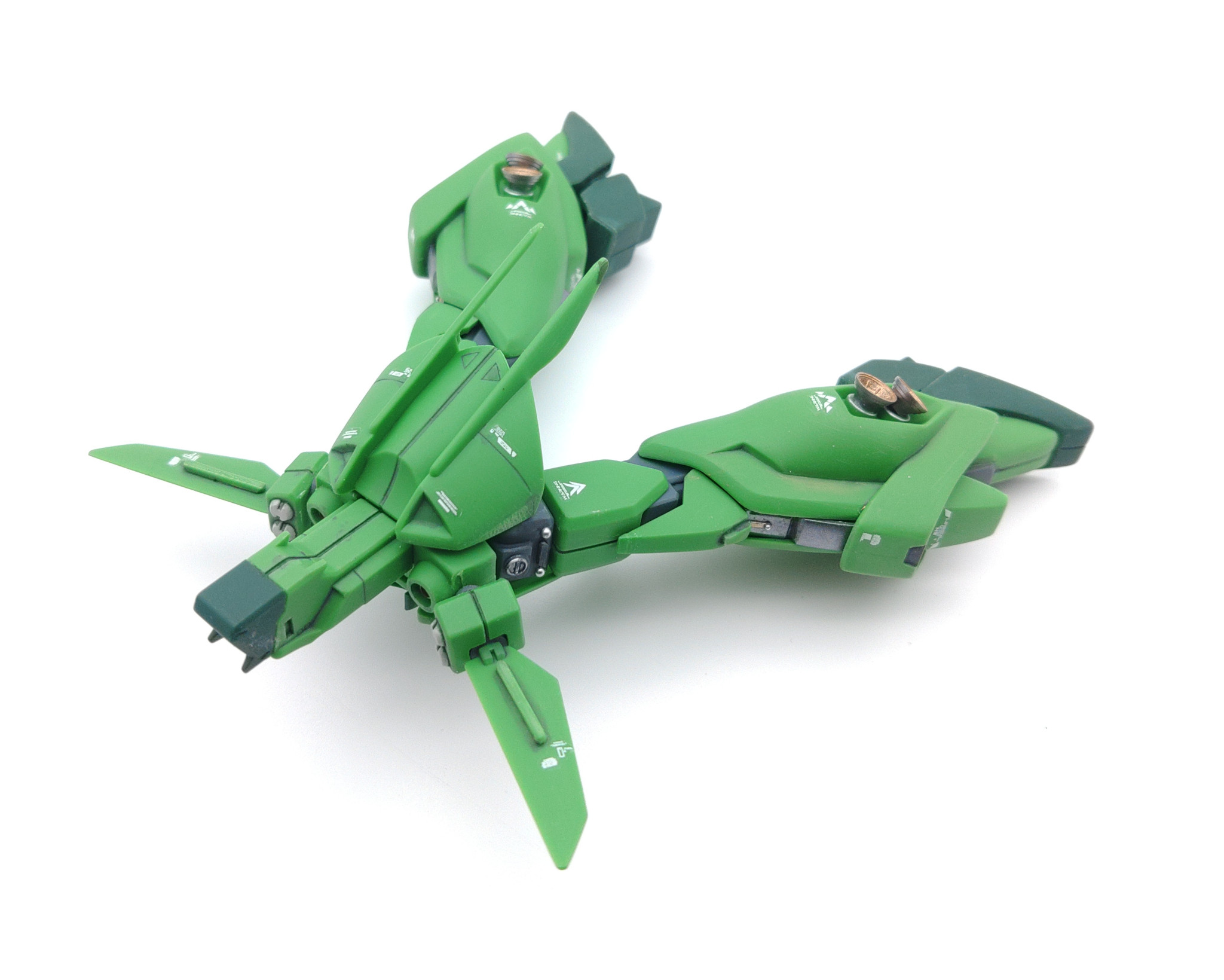 そんなに分離変形して遊ぶわけではないのですが、塗膜の強度をあまり気にせず分離できるのが成型色仕上げの強みだなと思いつつグレミー機も作ってみたいところですが、入手がなかなか困難です。
