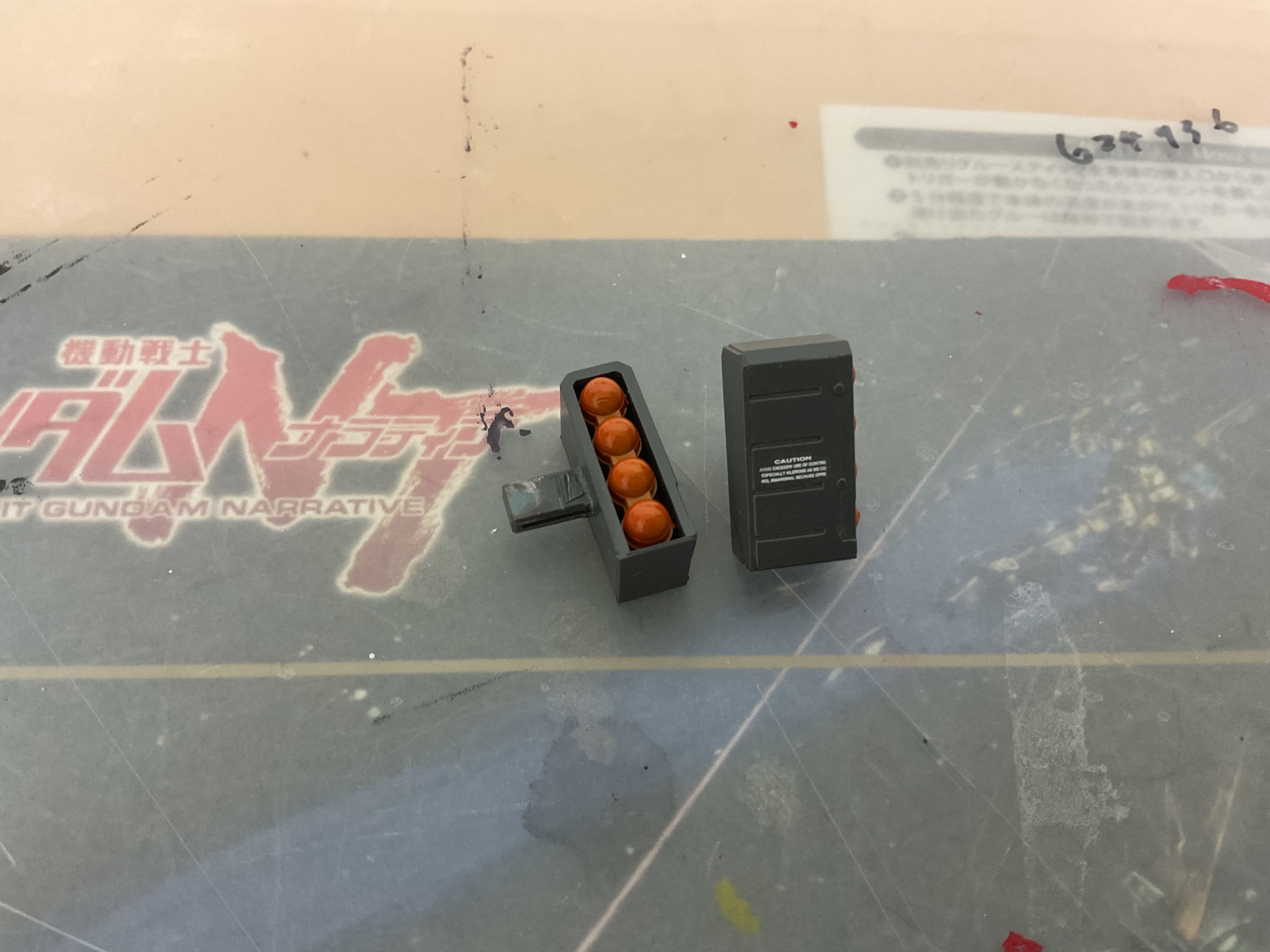 この機体足と腕を逆に配置しててマニュピレーターがないんですよねなのでその代わり武器腕にしました。左腕はダブルマシンガン 敵がファンネルに気を取られているときに予想外のところから打って撃墜って感じもアリ⁉︎