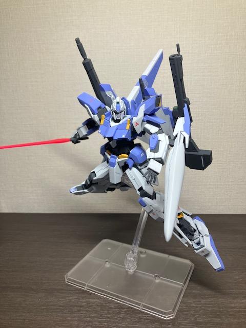 今回チョイスしたきっかけでもあるのですが、ウェイブライダー形態に変形するMSの中で変形後のシルエットが一番好きなのがデルタプラスなんです。塗装剥げも怖いので、基本的にはこの形態で飾っておくつもりです。