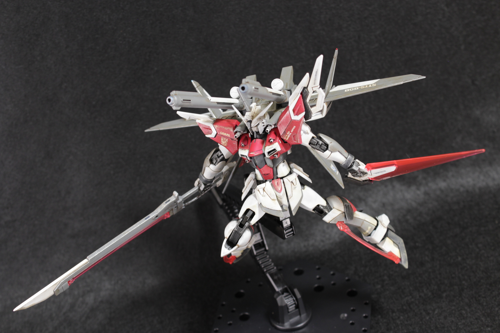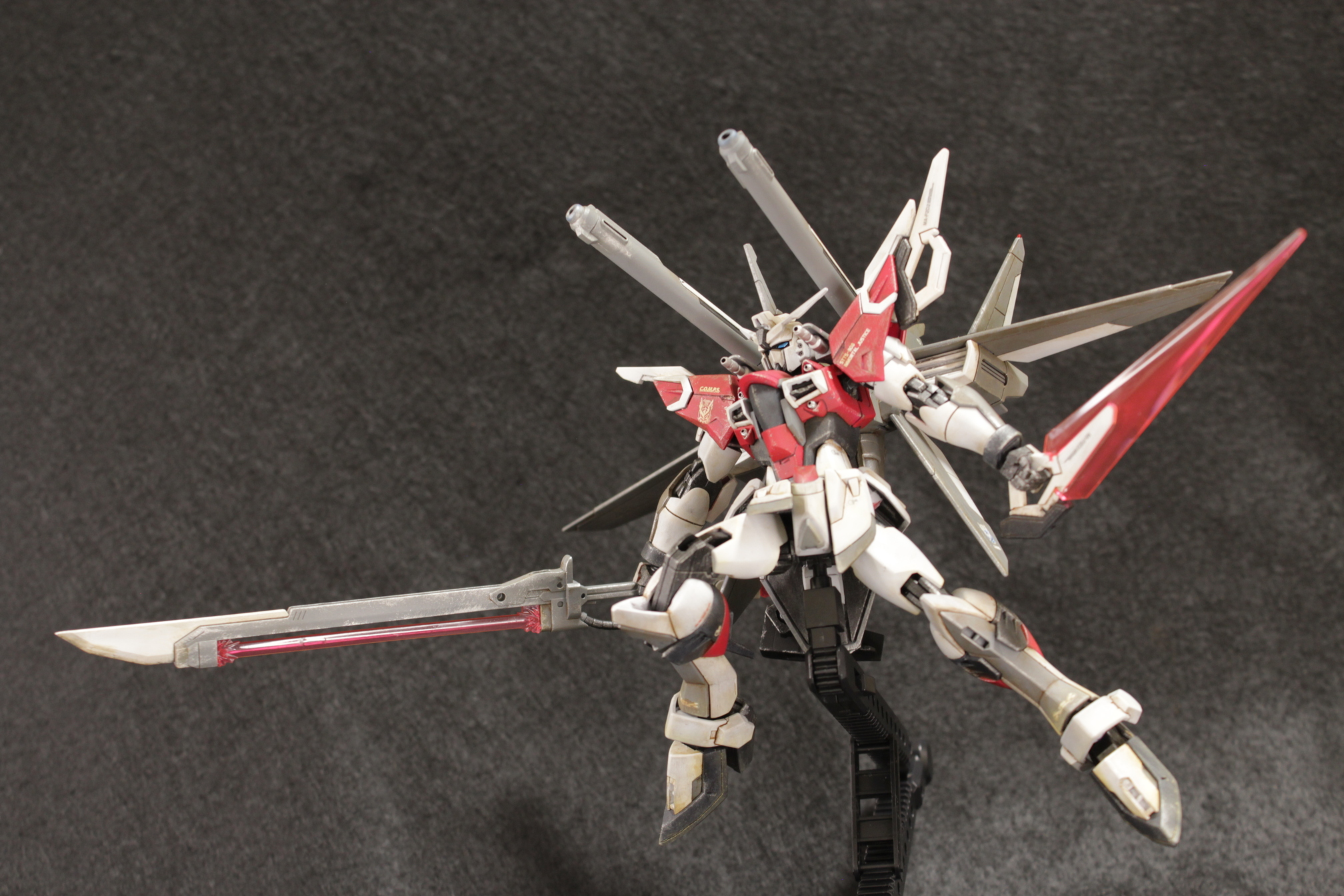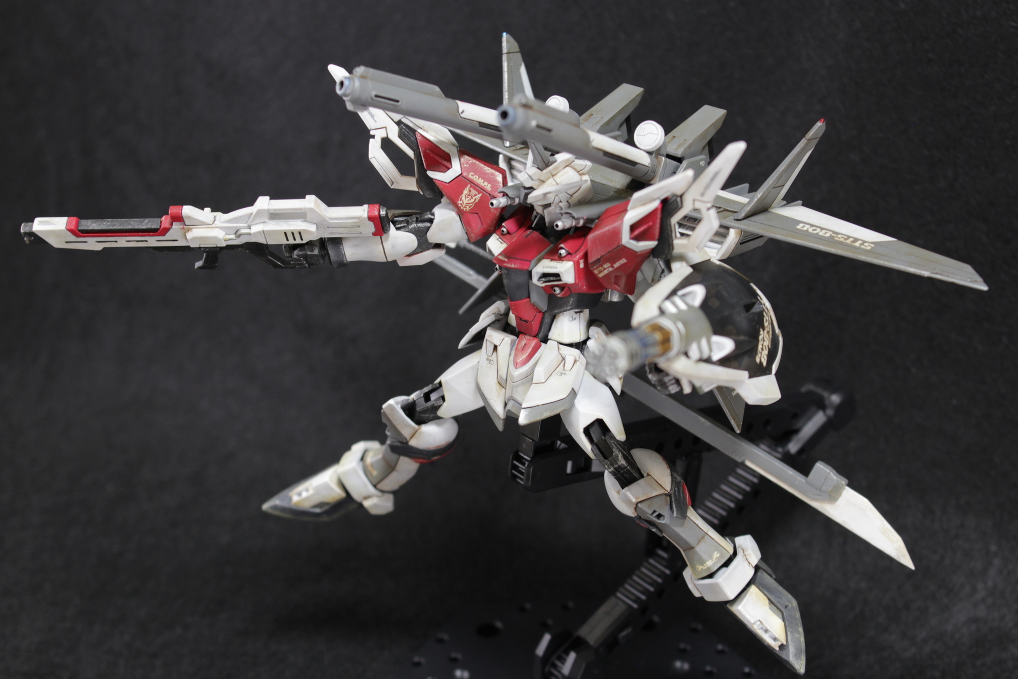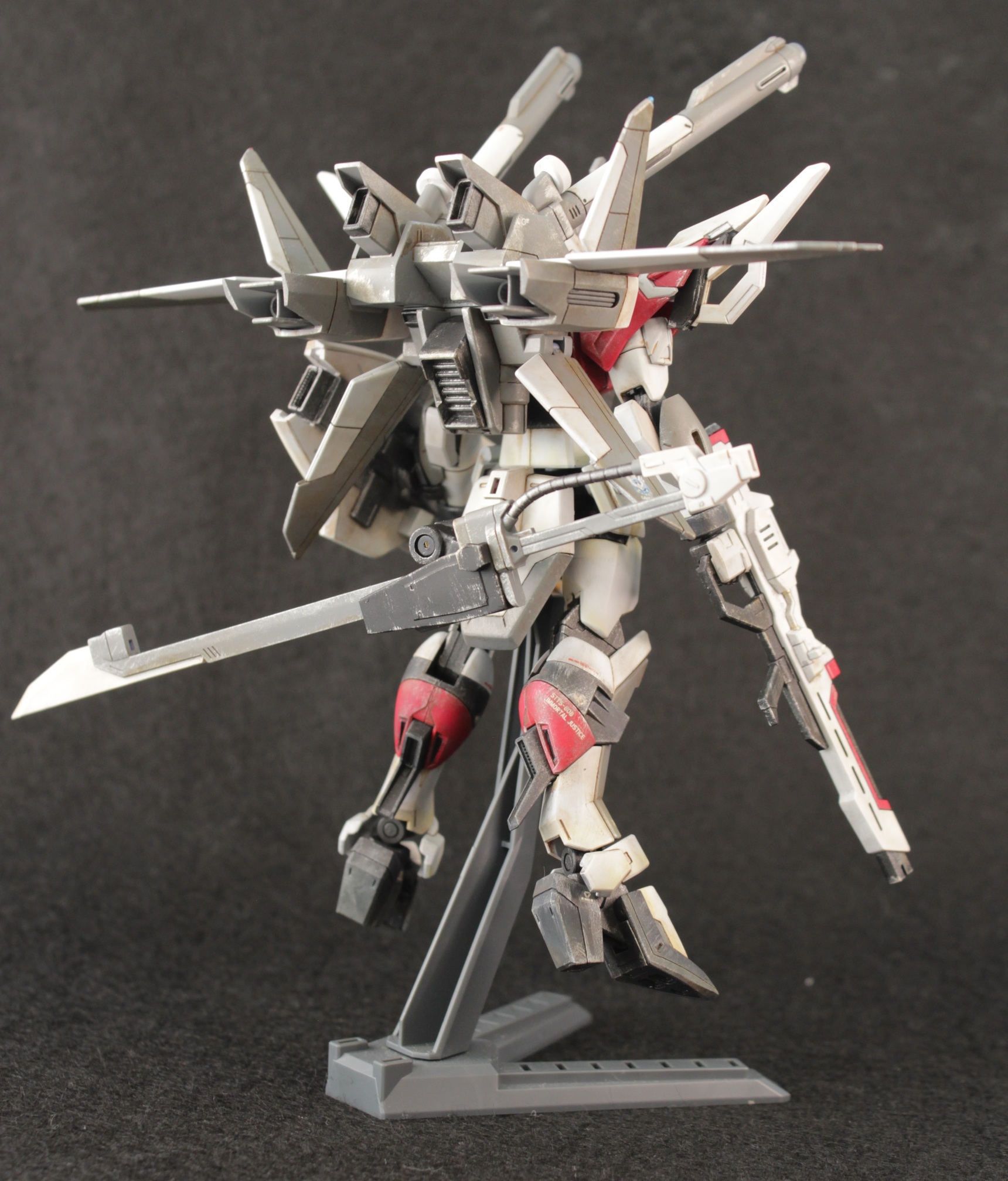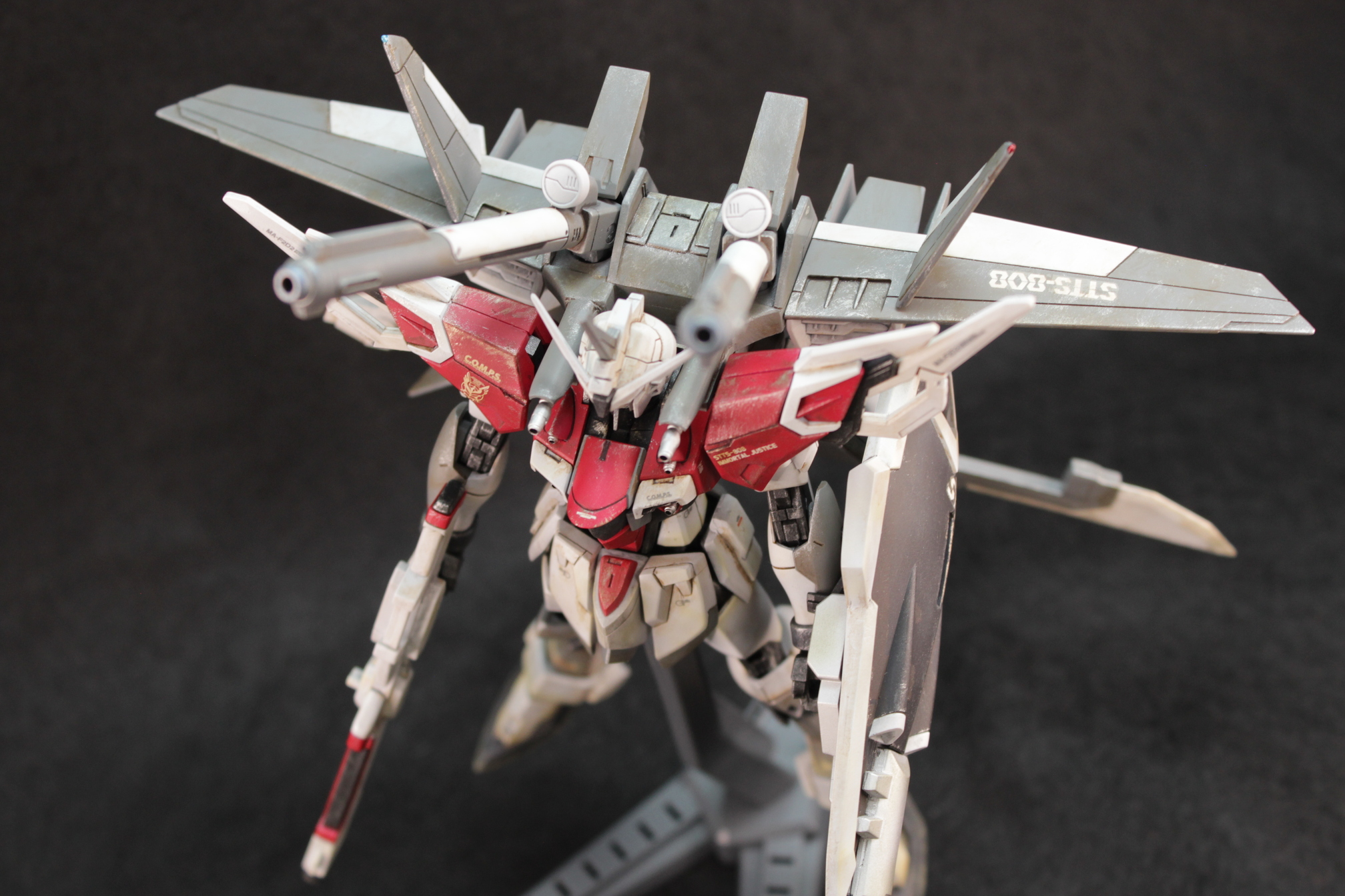 ソードインパルス風にしたくて,諸先輩方の作品を参考にしながら赤と白を基調に塗装しました。ウェザリングするかは最後まで悩みましたが,後で見た時の面白味が欲しくて汚しを入れることにしました。