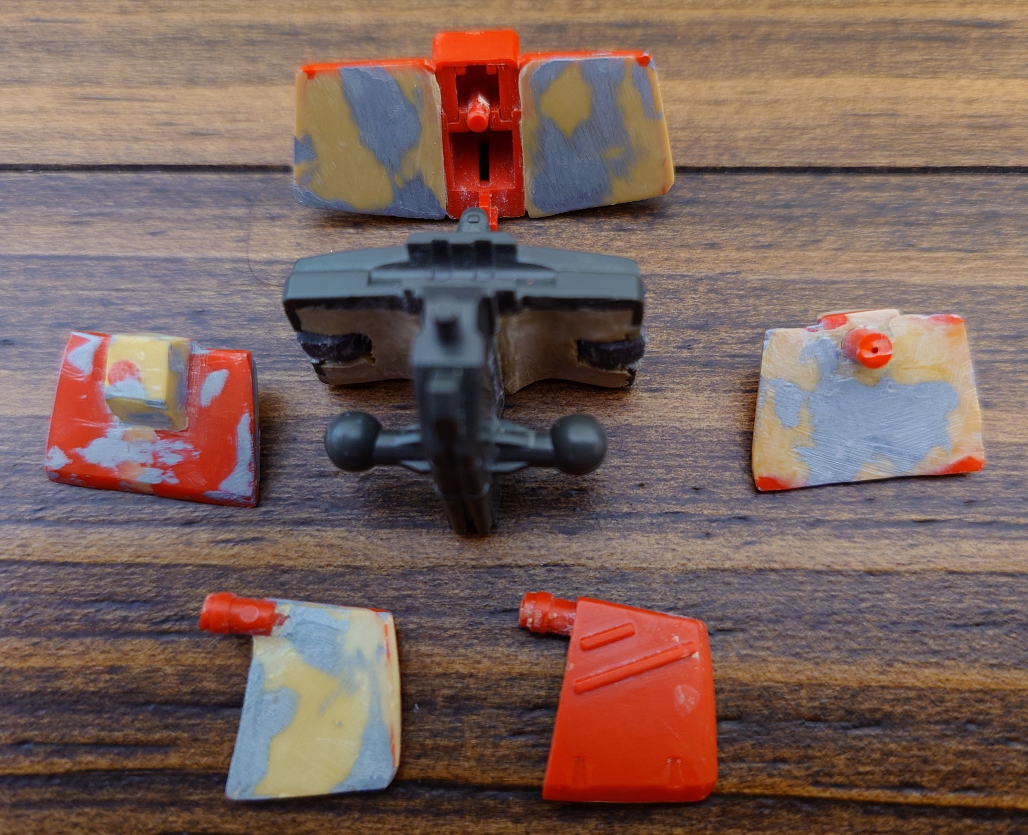 スカートが後ろと正面との2分割だったために、4分割に改修して裏をパテ埋めしました。
