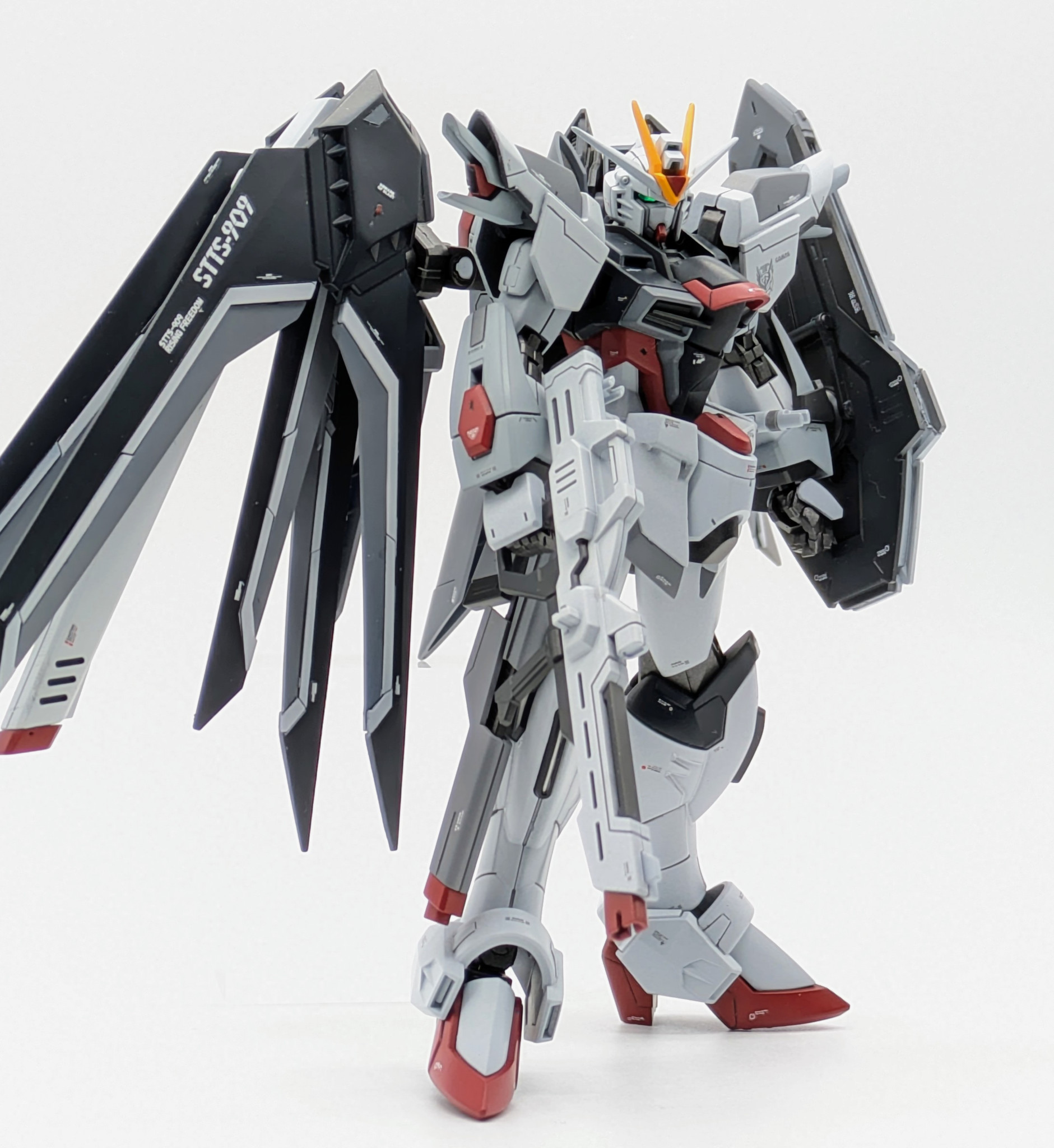 ライジングフリーダムを自分の中での主人公機カラーに置き換えて作成してみました。去年から積んでいたキットですがようやく作成することができました。よかったら見ていってください。