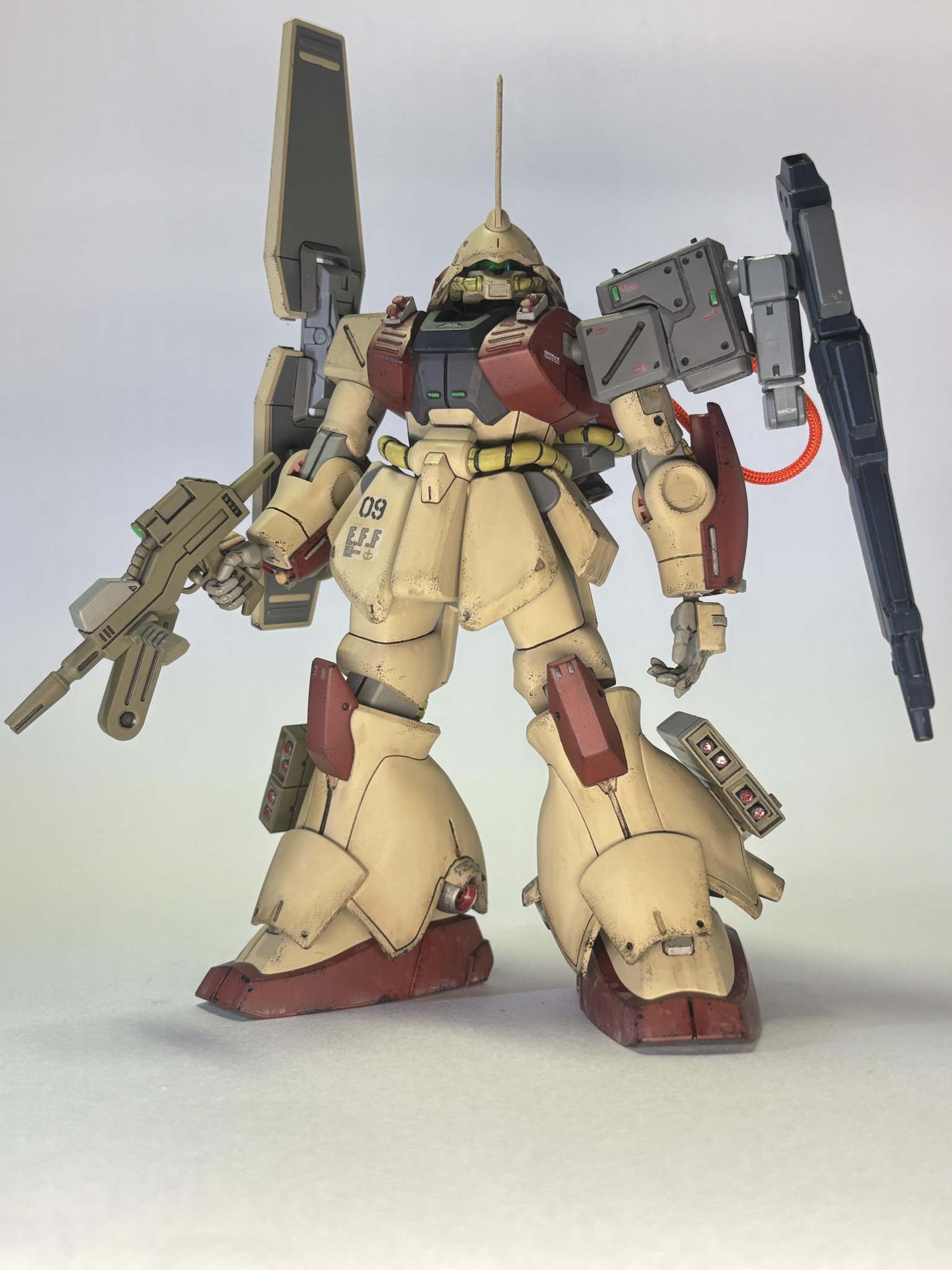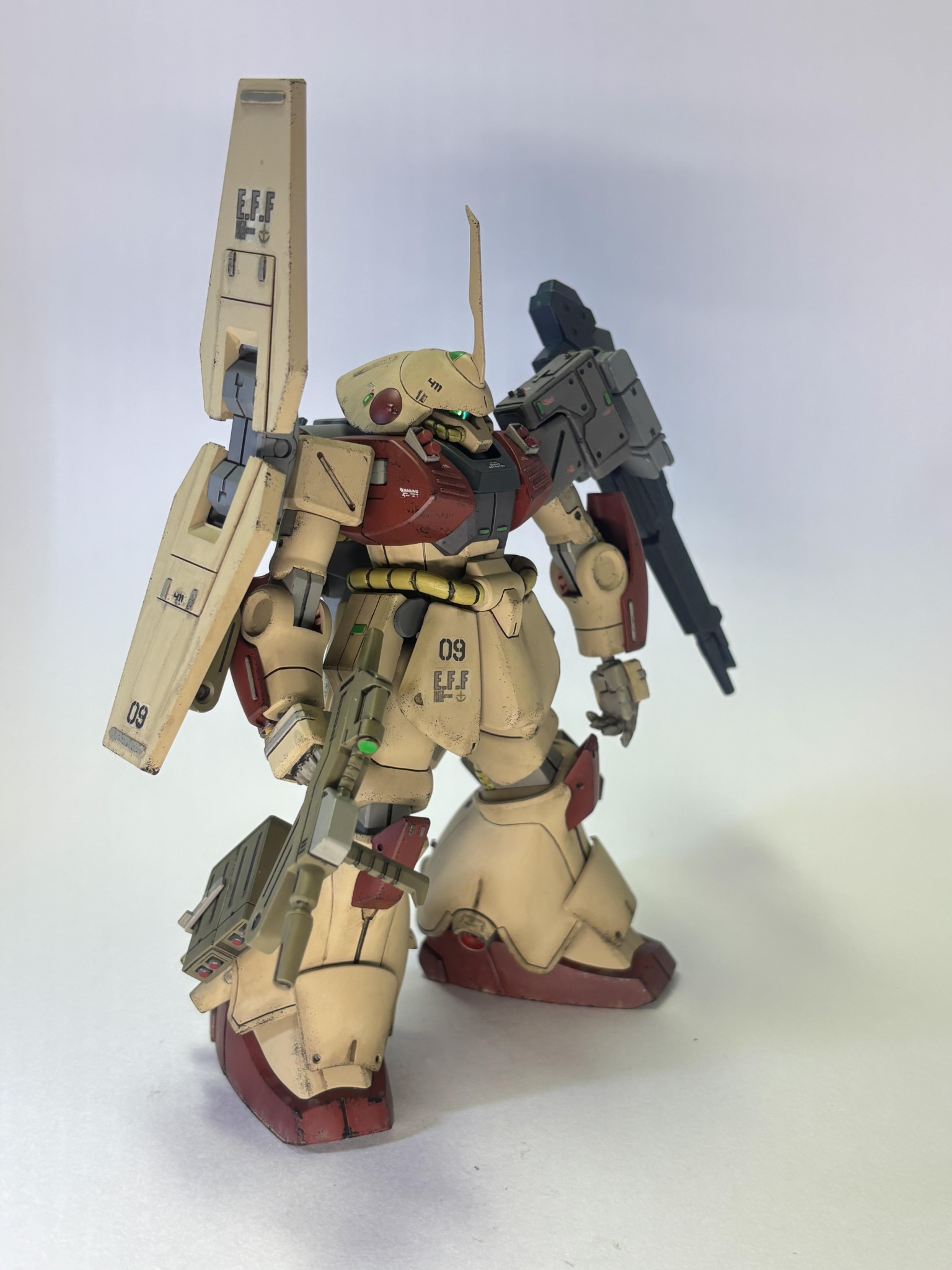 カラーは陸戦型ジムを参考にして幾分か汚しを入れています。初めてスポンジでポンポンしてみましたがこれは面白いです。今後もやってみます。