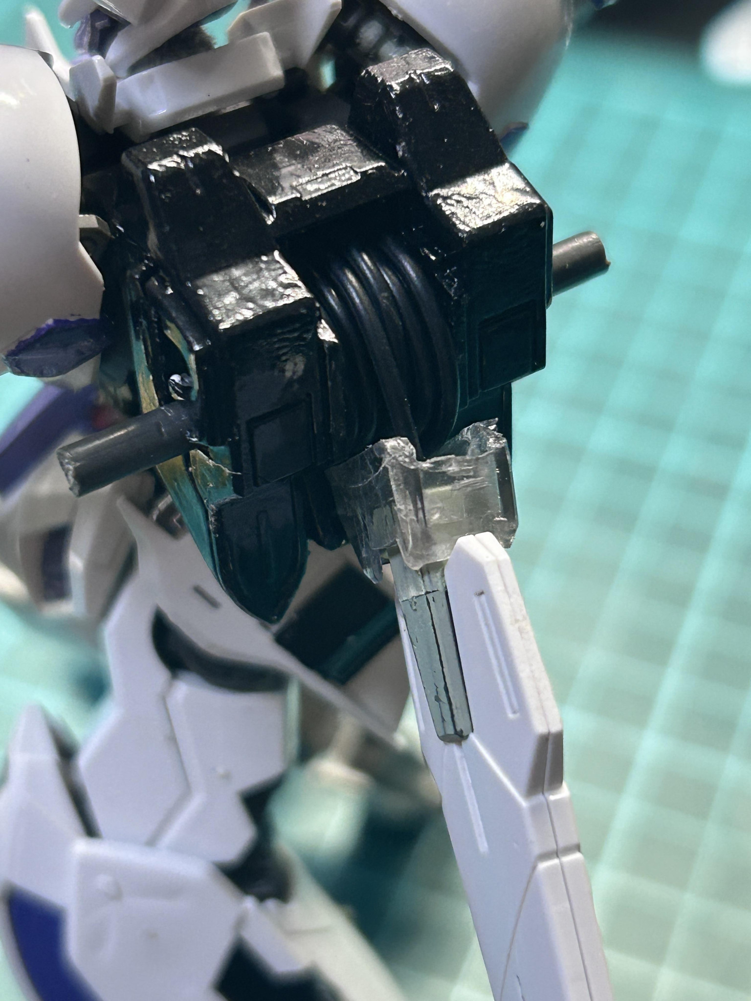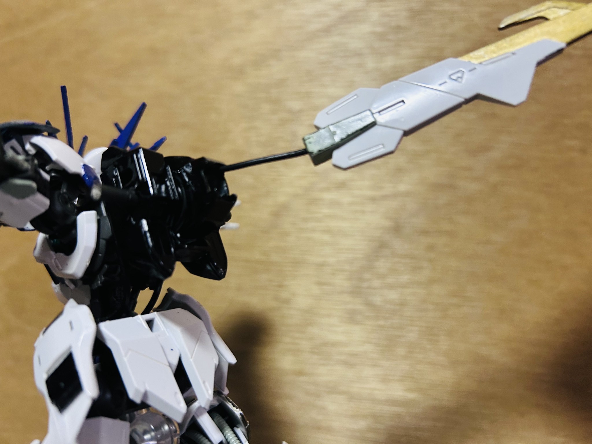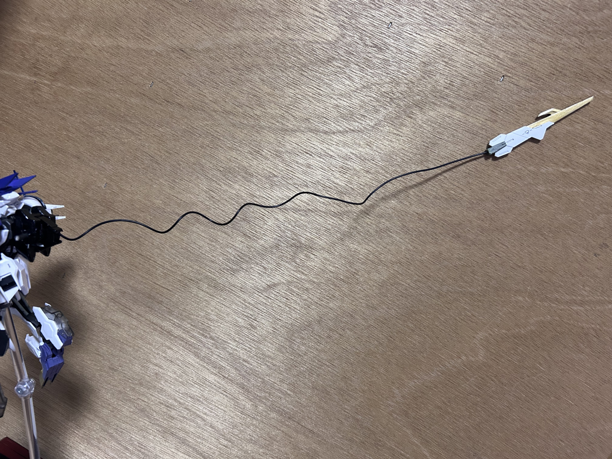 なんと!ワイヤーの伸縮ギミックを1/144で完全再現!※画像で浮いてるように見えますが、実は指で押さえていて、自立固定はできません