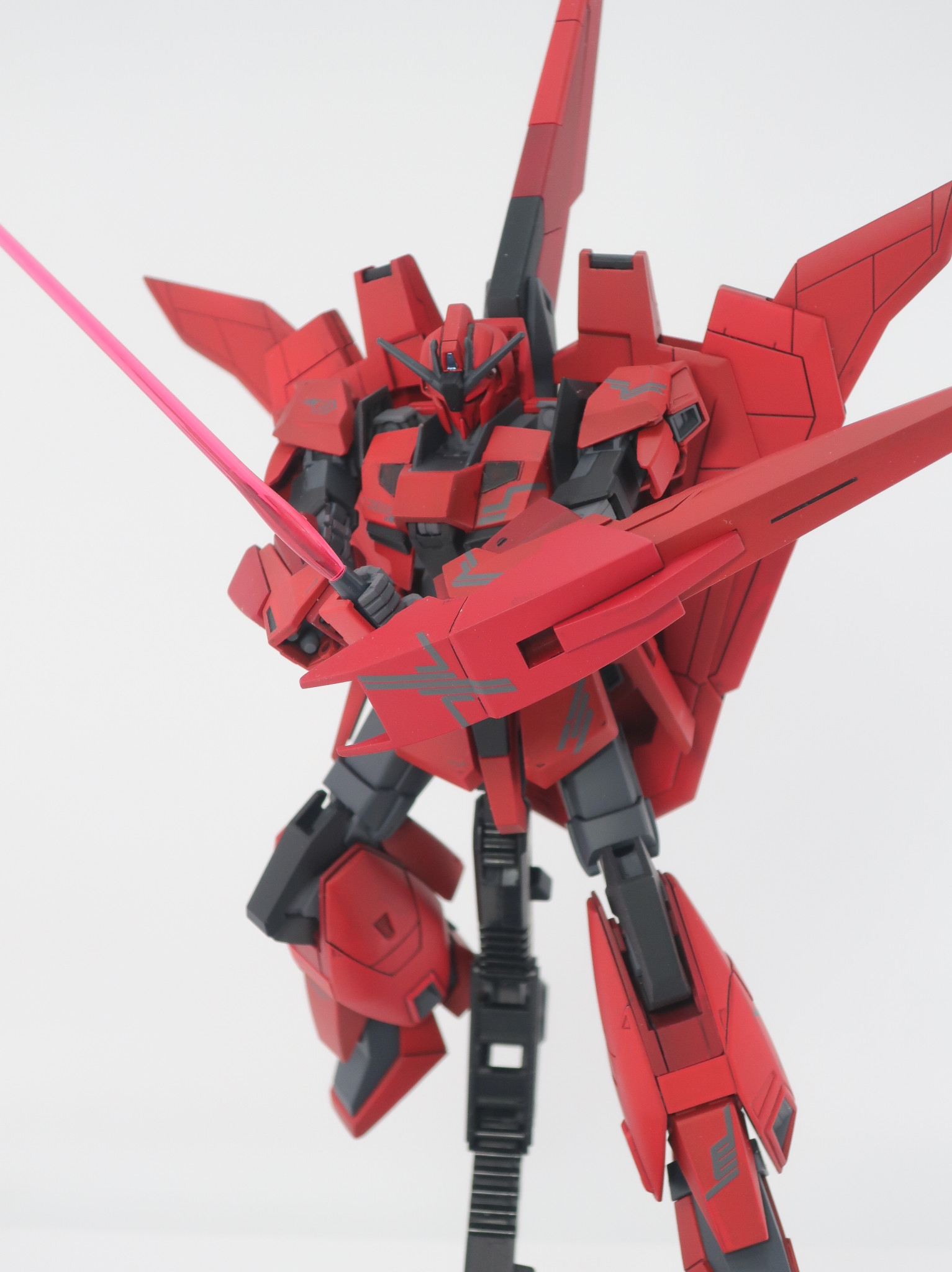 レッド・ゼータを参考に赤系統で全塗装+足延長で作成しました