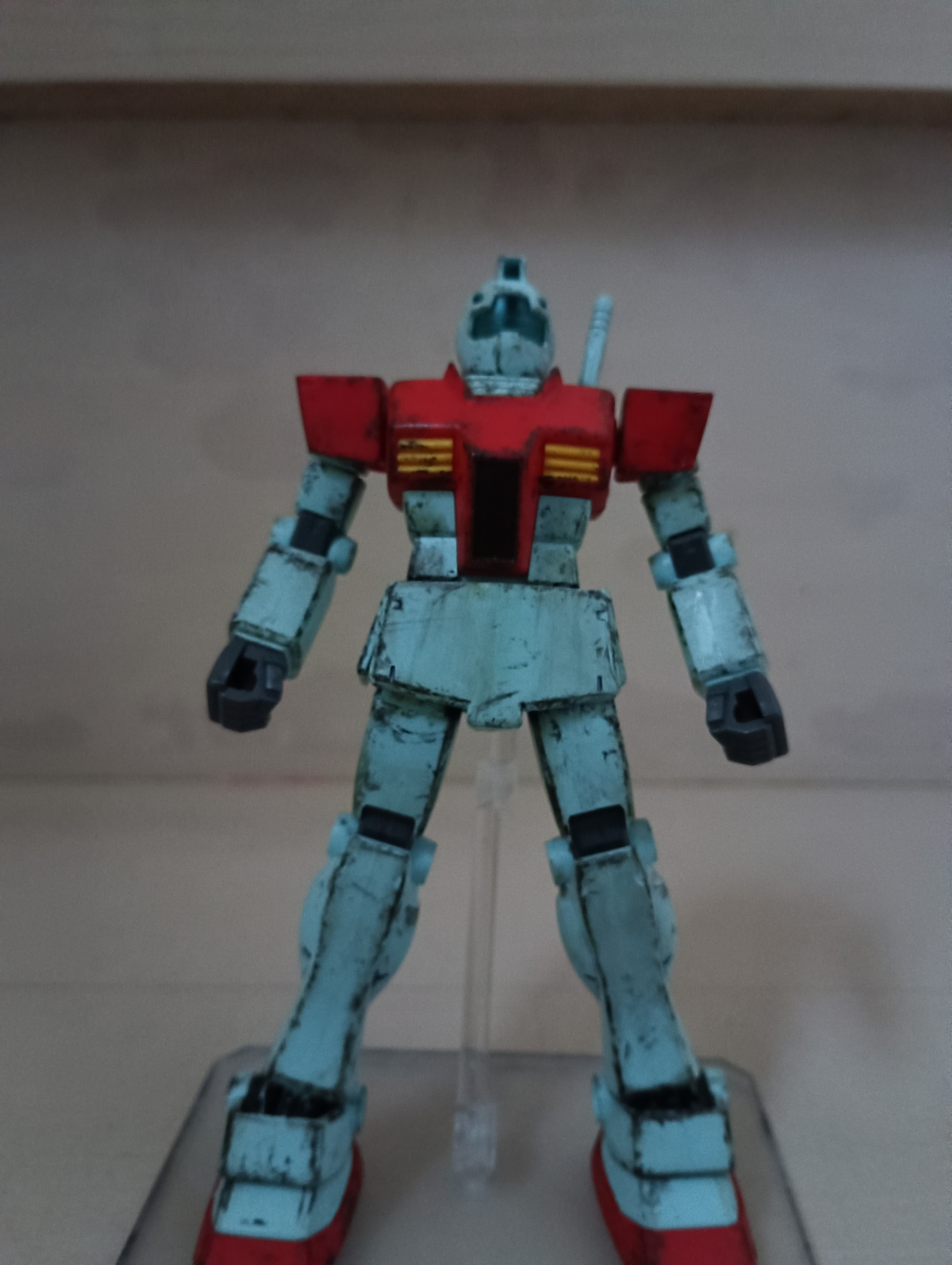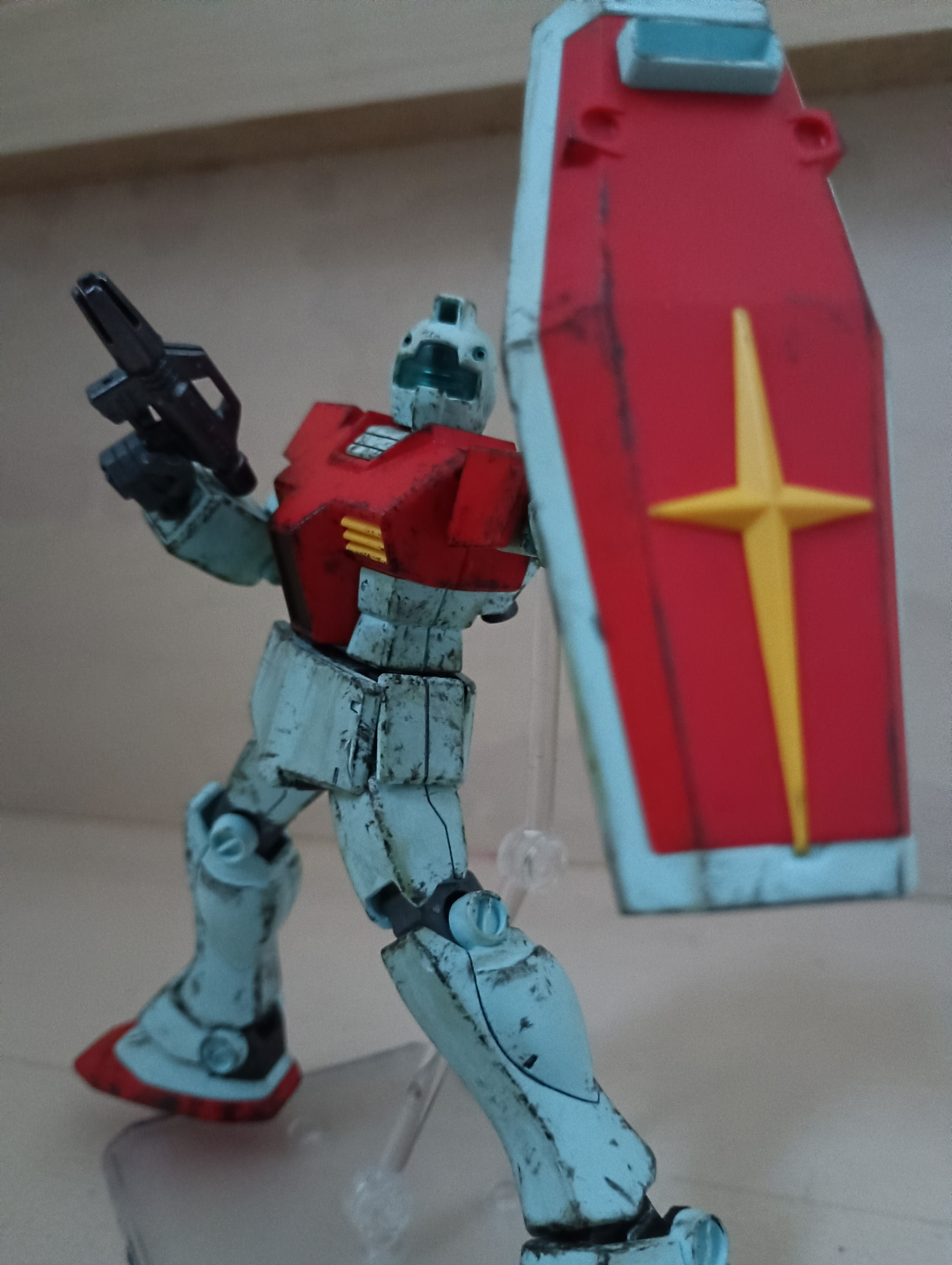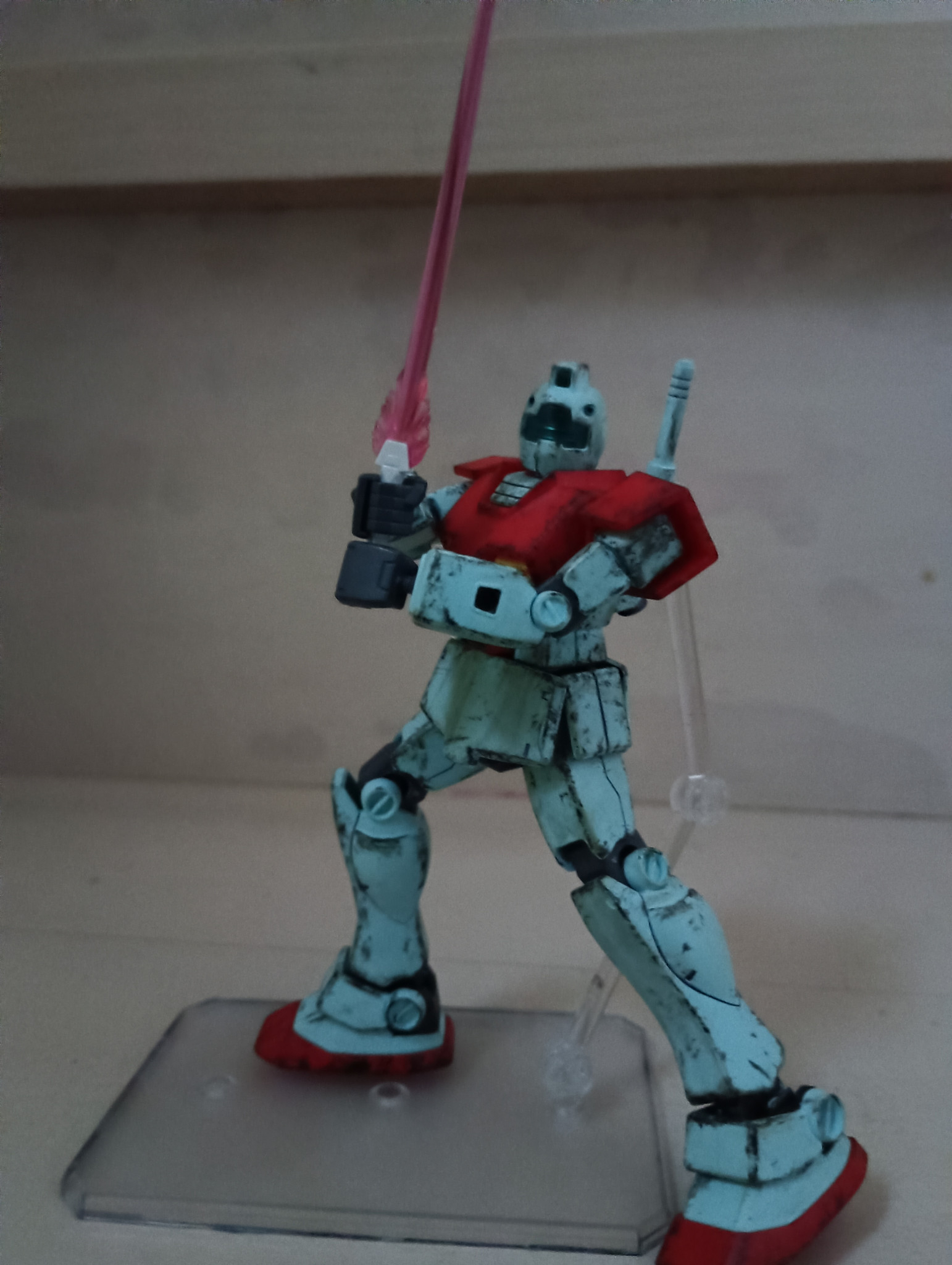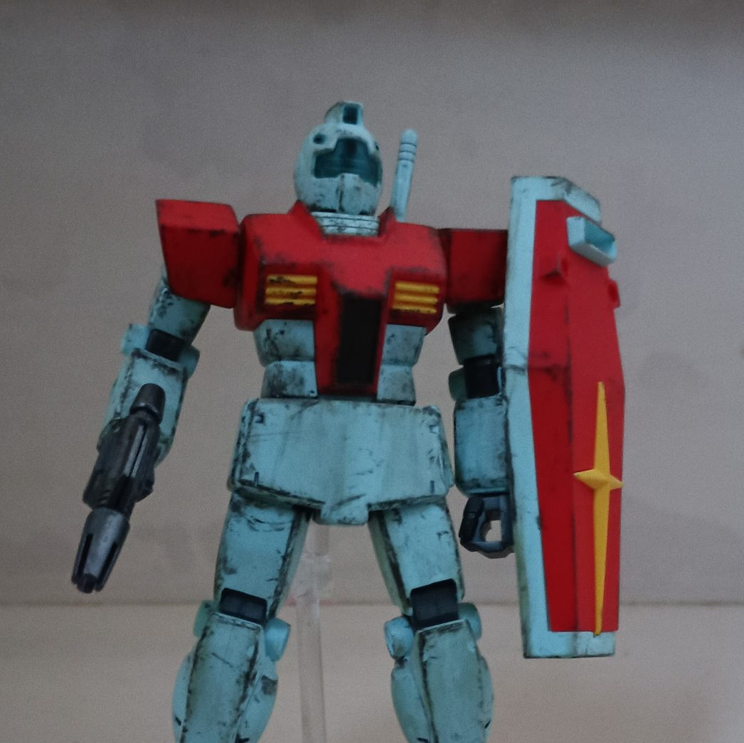 さて、前置きが長くなりましたが、今回作成したガンプラは、HGUCのジムです!ほぼ無塗装、(消えてませんがw)合わせ目消し、ウェザリングをして仕上げました!