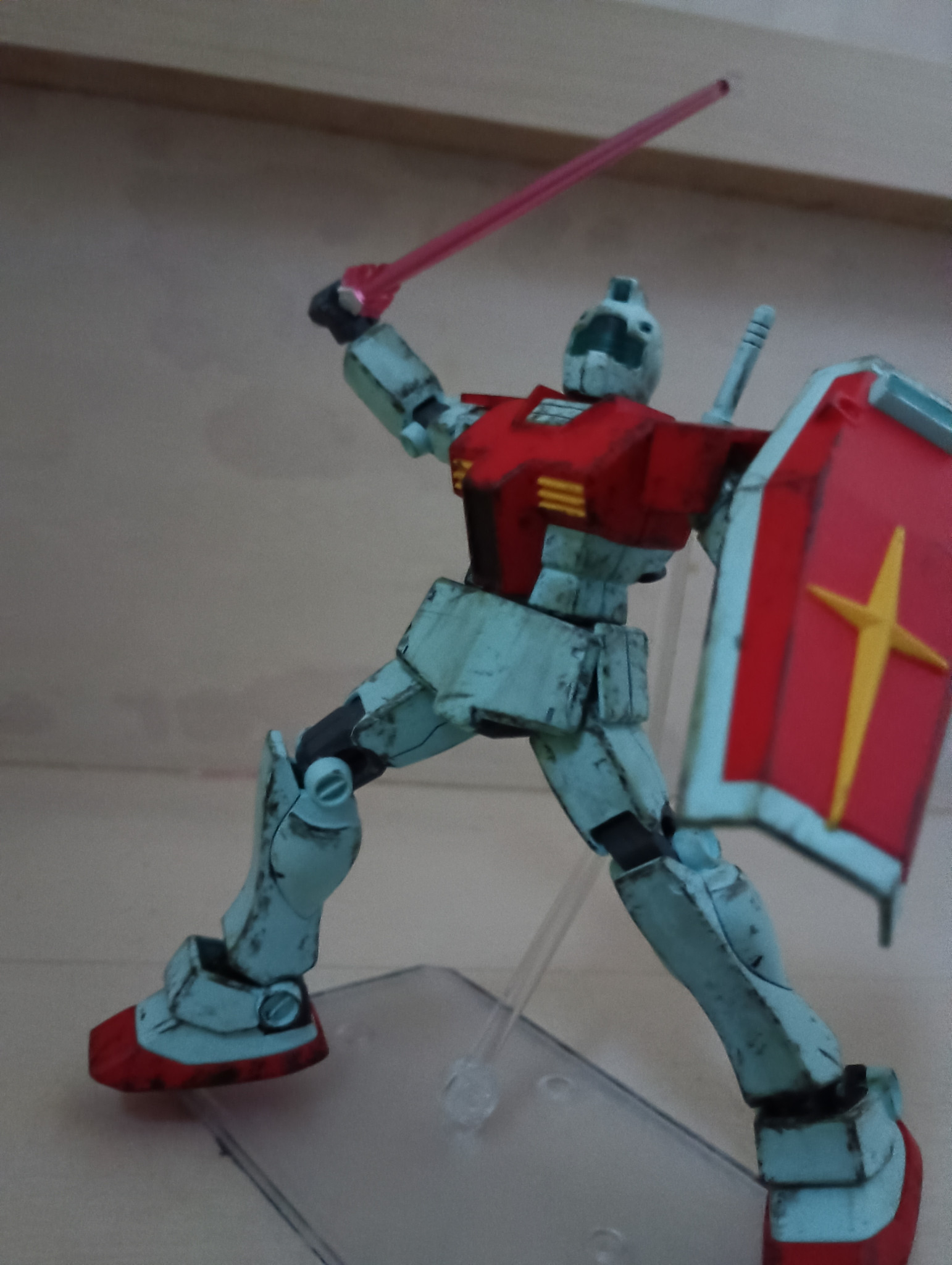 無くしてしまったのでジムのではないですが、ビームサーベルも持たせてみました!(背中のサーベルグリップは、接着してしまったので、取れません…)