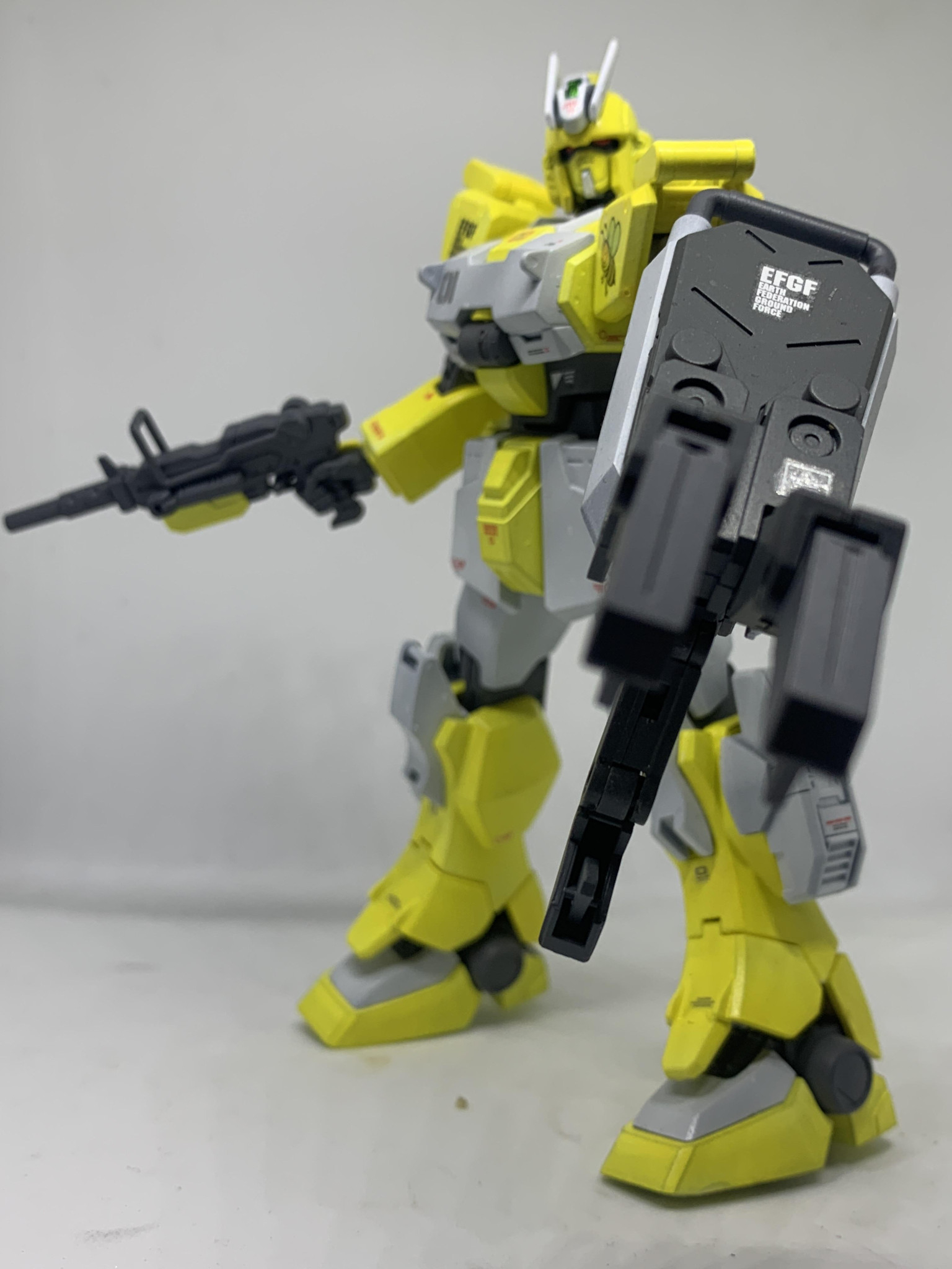 1号機作成中に腕を急遽ブルーディスティニー3号機にお取替えした事によって余剰となった両腕にEz-8、Ez-SR、ペイルライダーのジャンク品、システムウェポンのミキシングビルド作品になります。