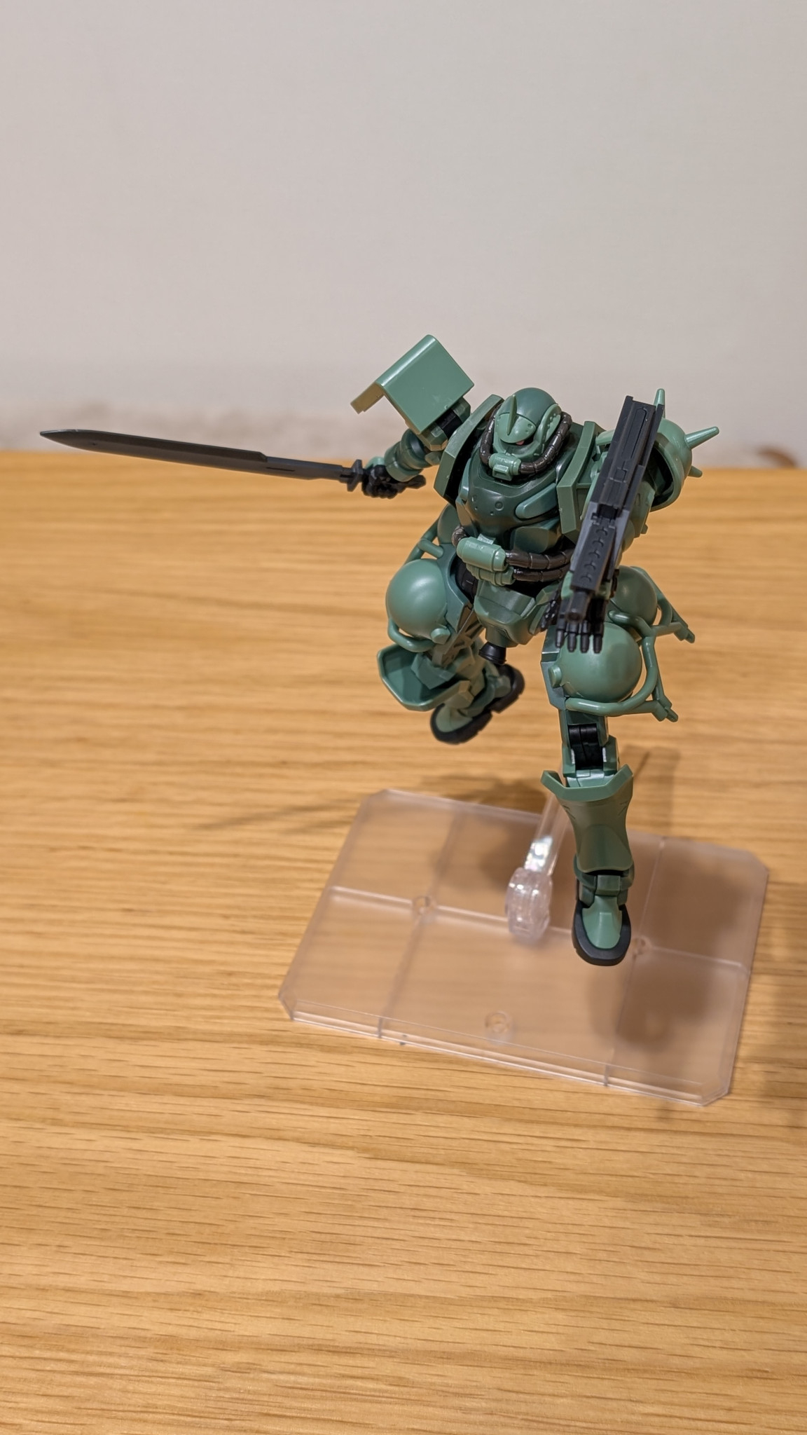 昨日投稿したザクGQの素組みに、最近手に入れた境界戦機のウェポンセットを持たせてみました。