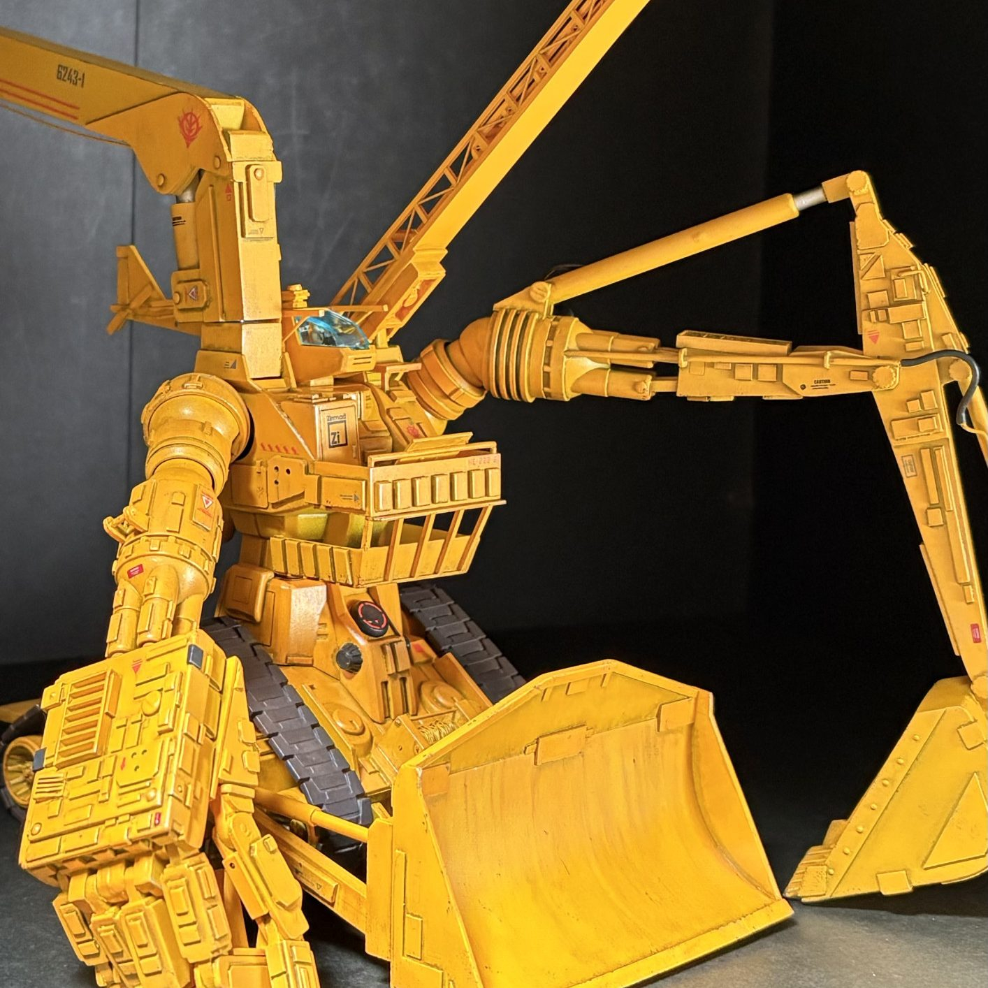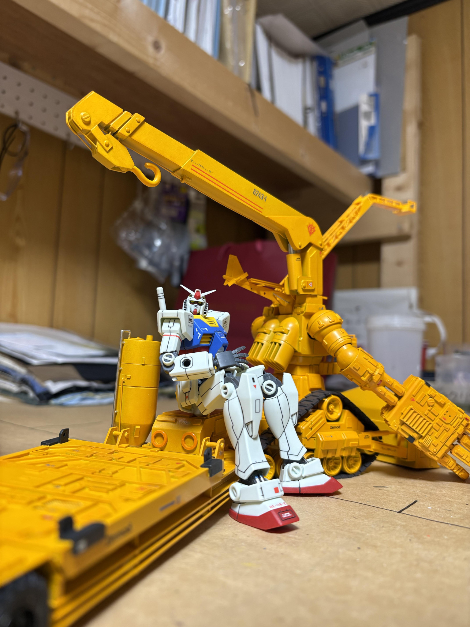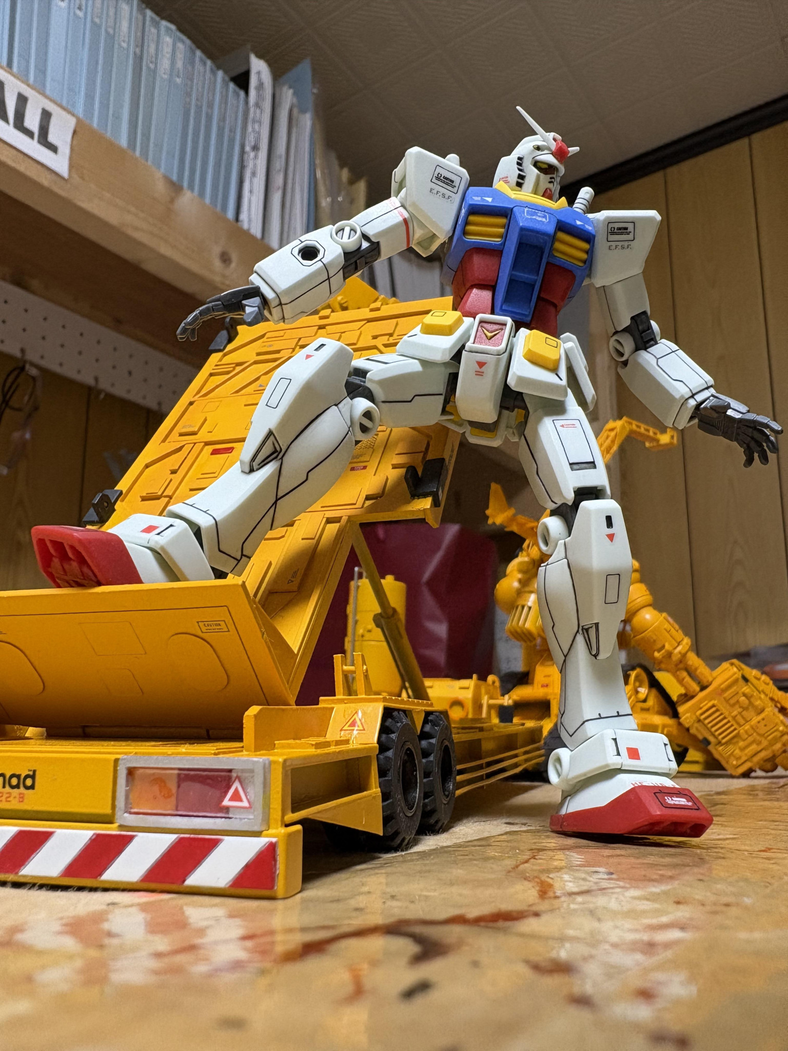 トレーラーいいですねぇ(zaku-kao2)働くmsカラーも素晴らしい。何よりこれ動作が細かく作られてるのが本当にすごい(zaku-kao5)重機モリモリは考えたことなかったなぁ、流石の発想力!