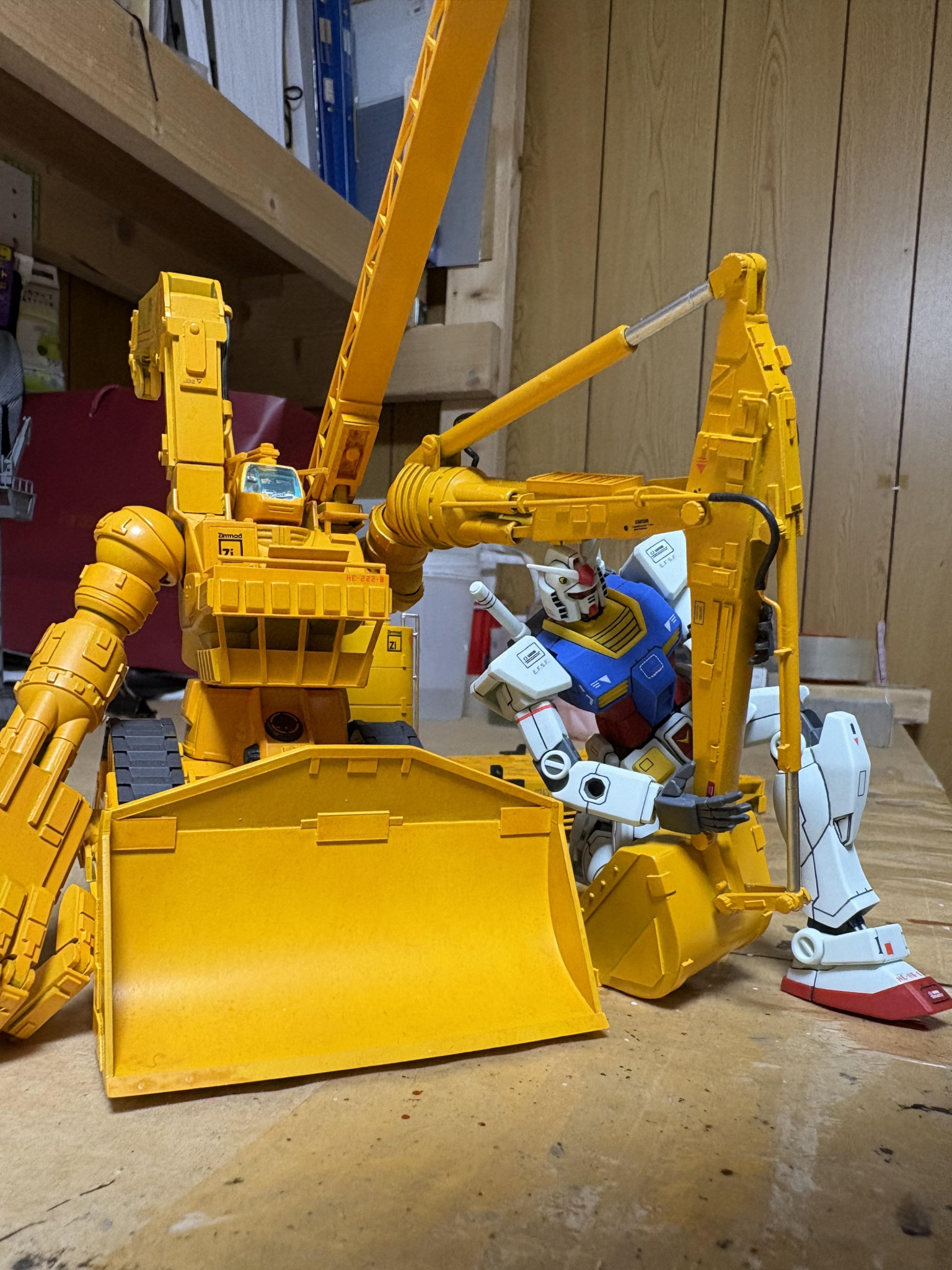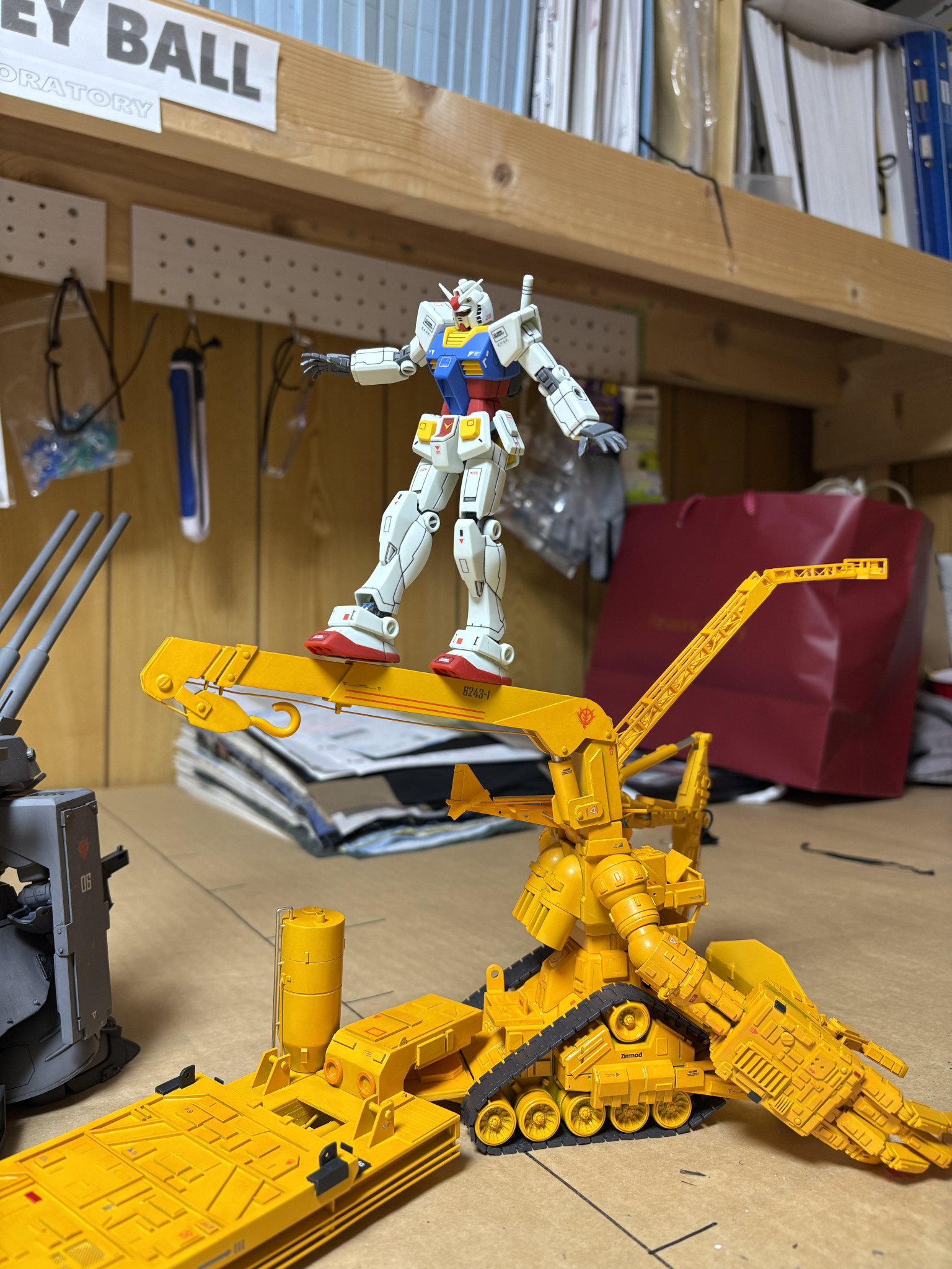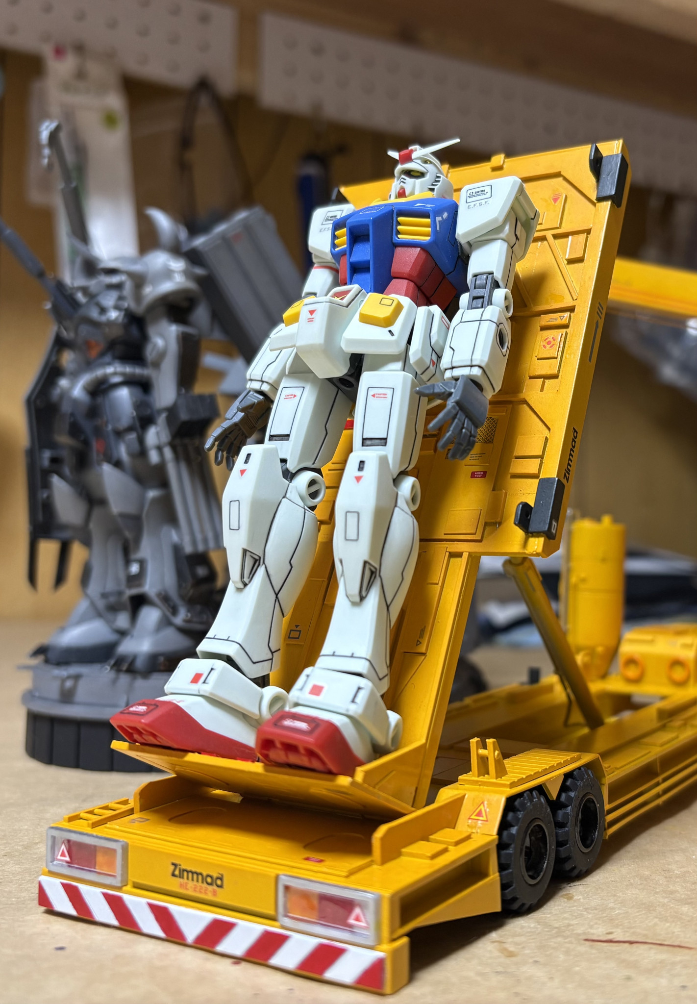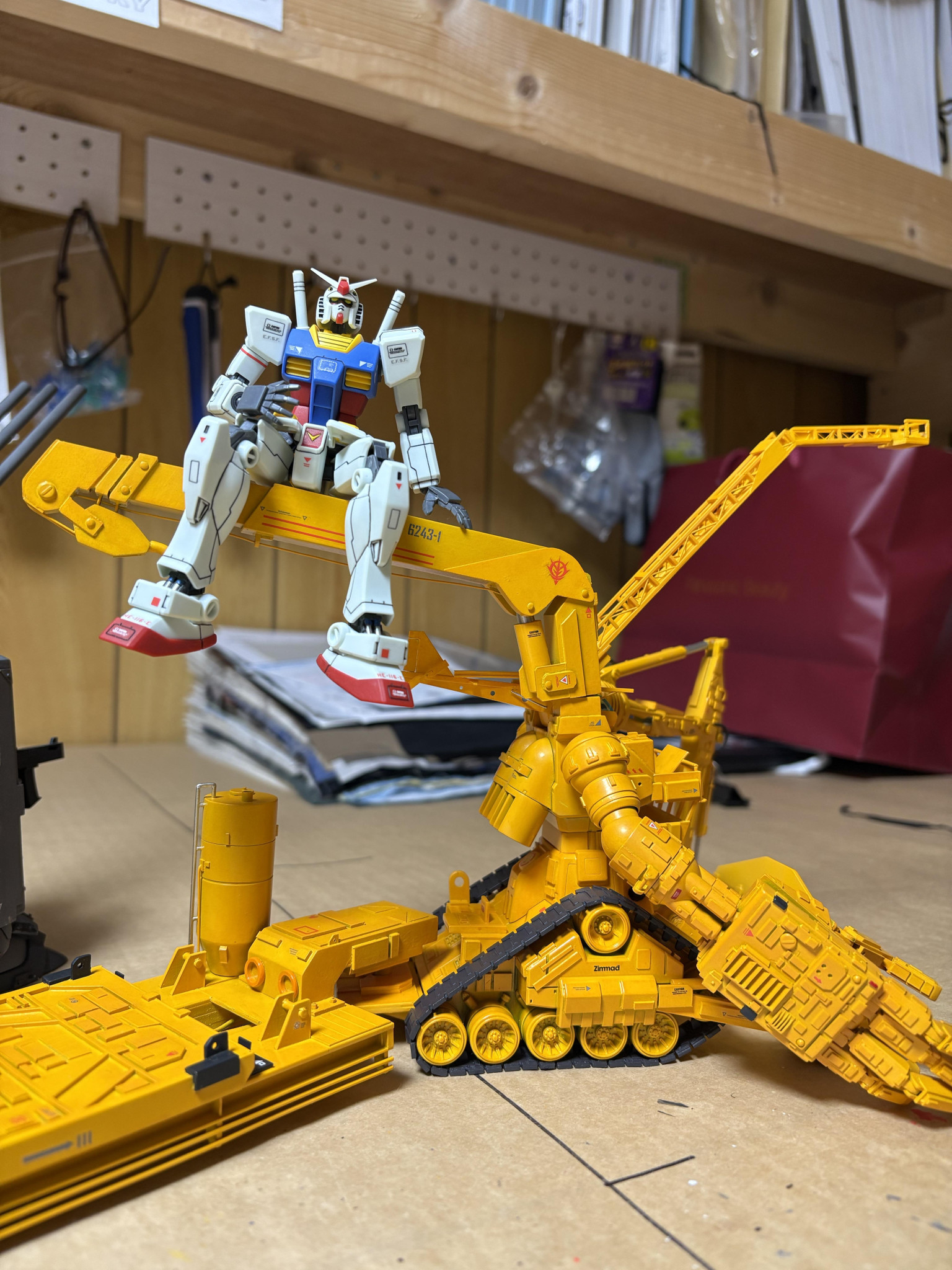 トレーラーいいですねぇ(zaku-kao2)働くmsカラーも素晴らしい。何よりこれ動作が細かく作られてるのが本当にすごい(zaku-kao5)重機モリモリは考えたことなかったなぁ、流石の発想力!