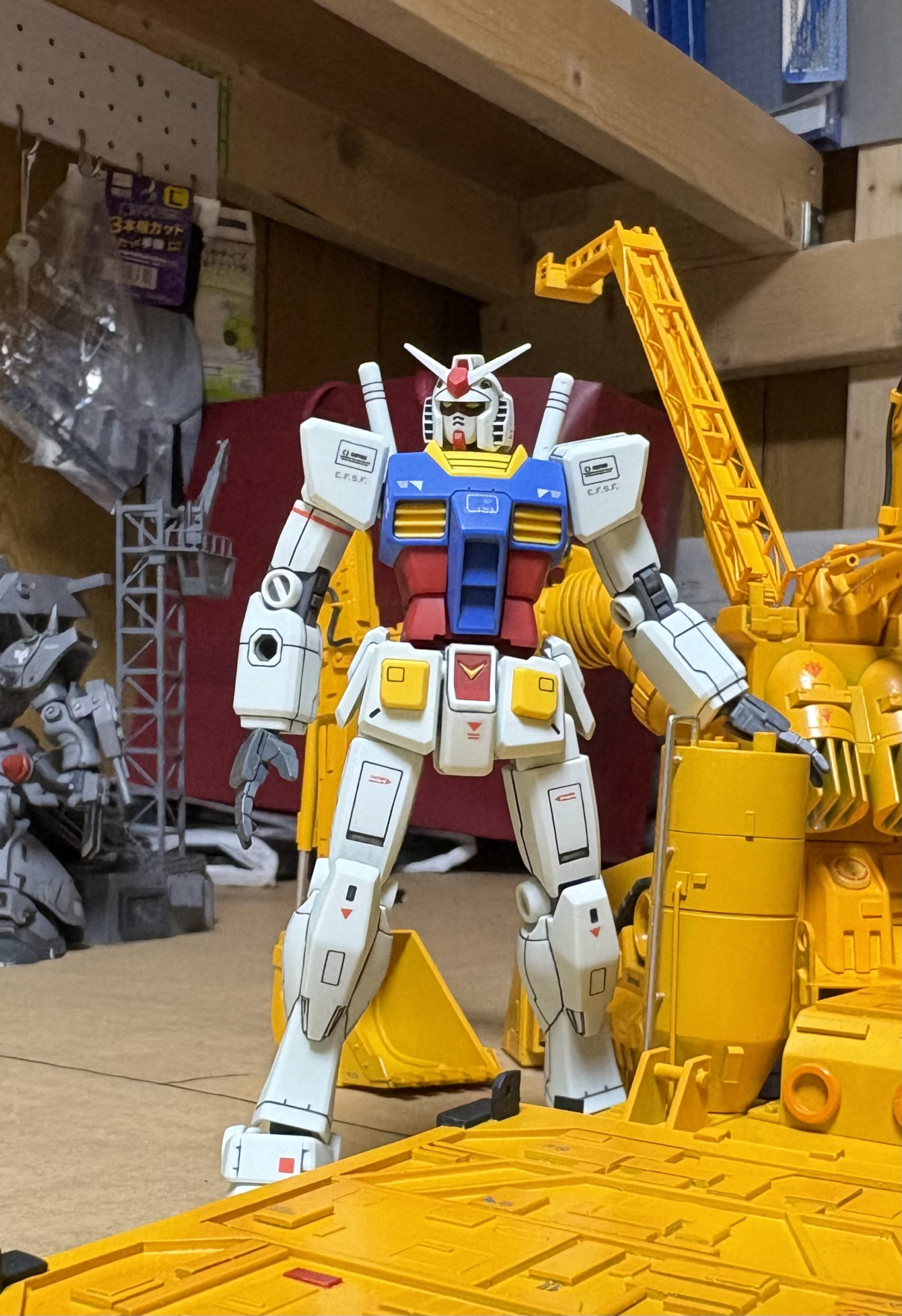 整備のガンダムも渋いですし、アームに乗ってるとこも可愛らしいですね(gundam-kao6)