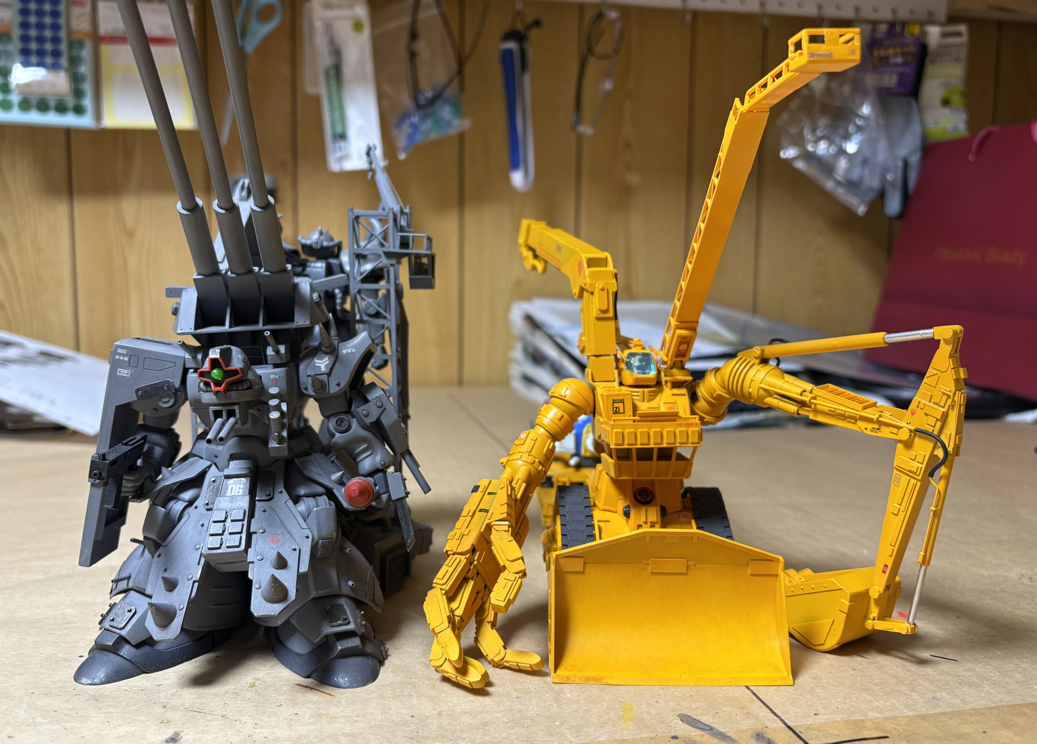 紛争や災害の復旧に役立つガンタンクを目指して、高所作業、ショベル、マニュピレーター、ブルドーザー、ユニックを作りました(zaku-kao8)