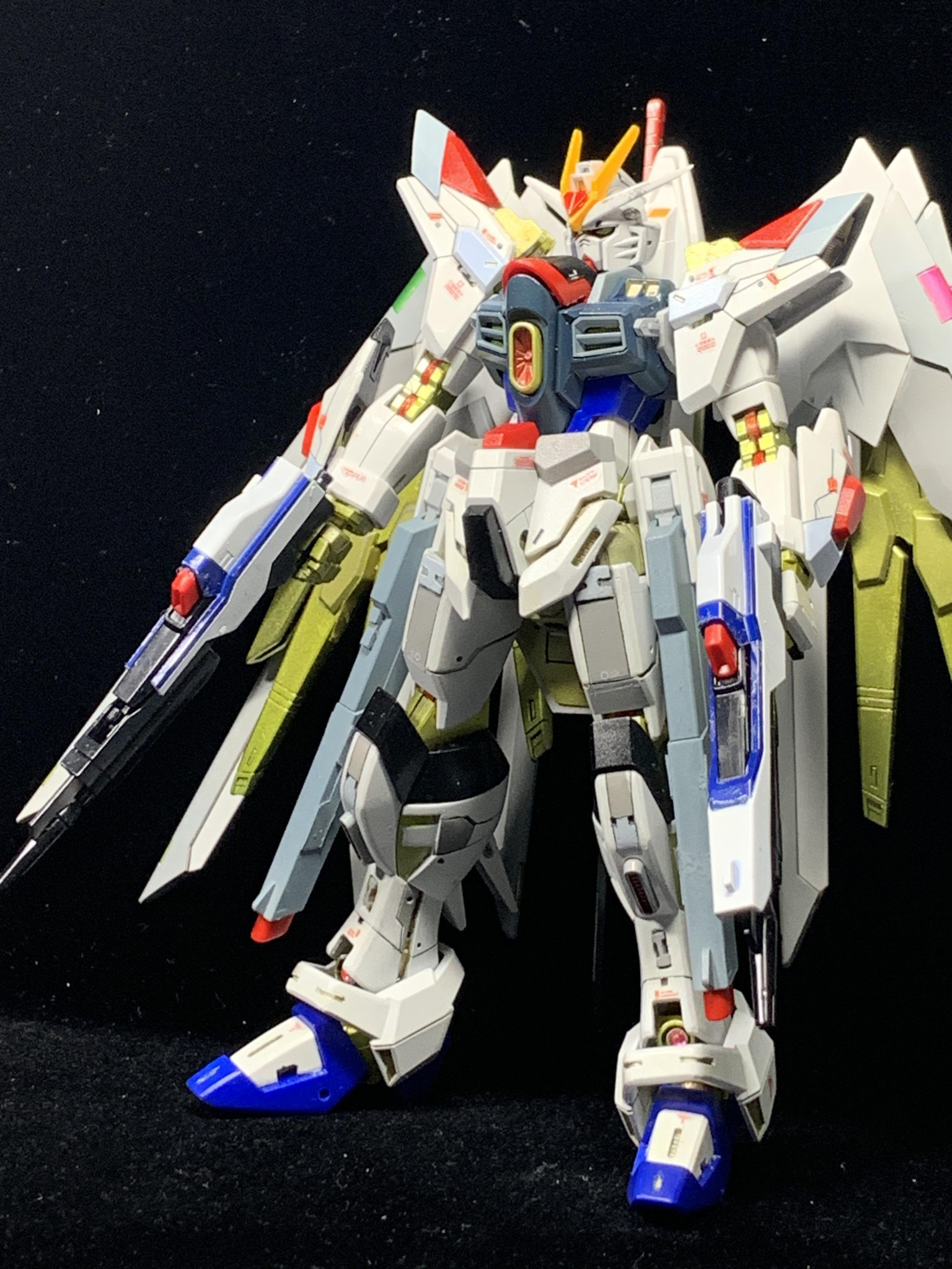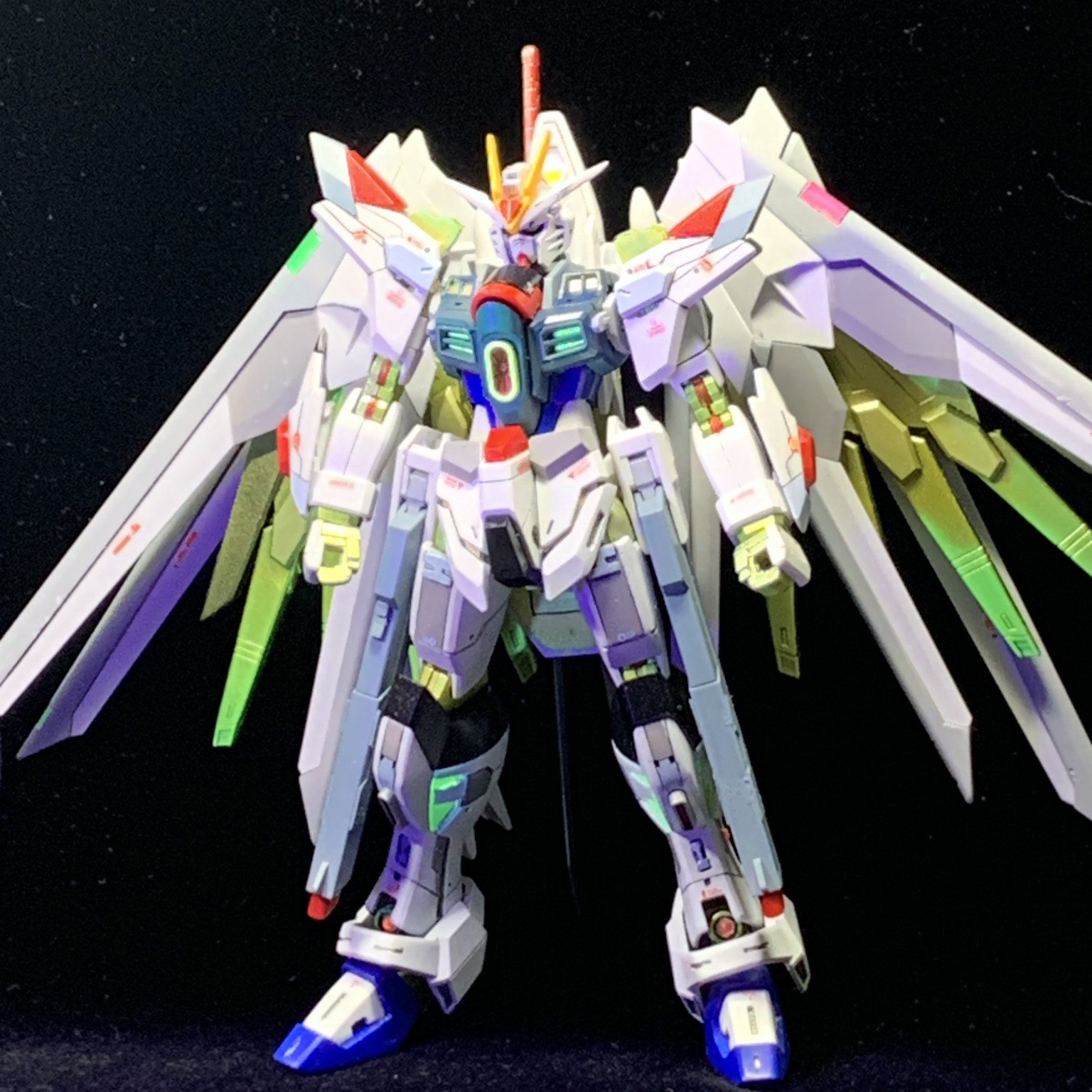 羽根を広げると正に天使のごとき神々しさ。やはりマイティーストライクフリーダムガンダムはカッコイイ‼️