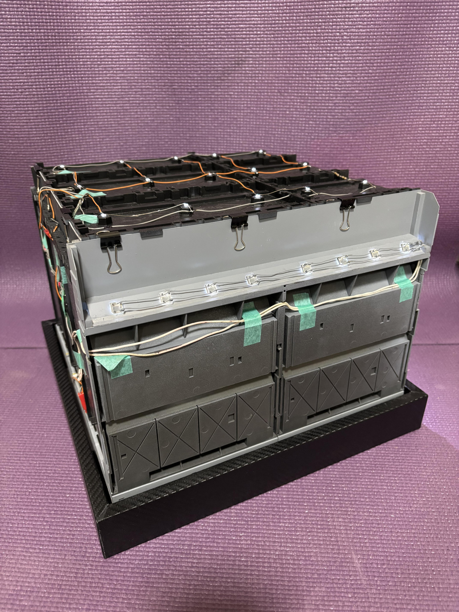 ベースの大きさは30cmX30cmX30cmで、自作のディスプレイケースに納めました。天井と側面にはLED照明を埋め込んで配線も隠し、スイッチで点灯させ2面から明るく眺めることができます。