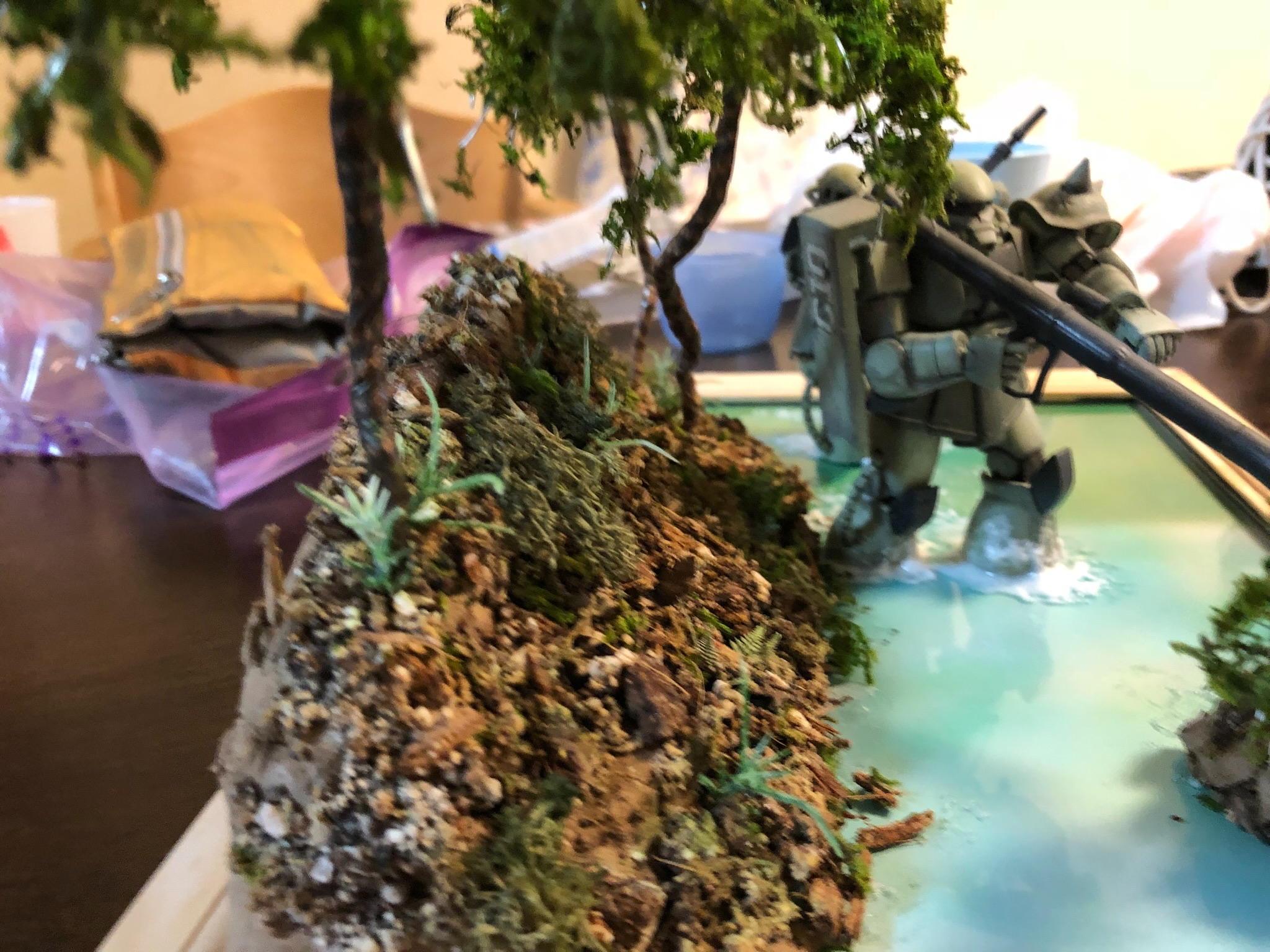 水面キレイに作りすぎました。もっと水濁ってるよね。水面はアクリル板。裏はDAISOで買った色紙です。